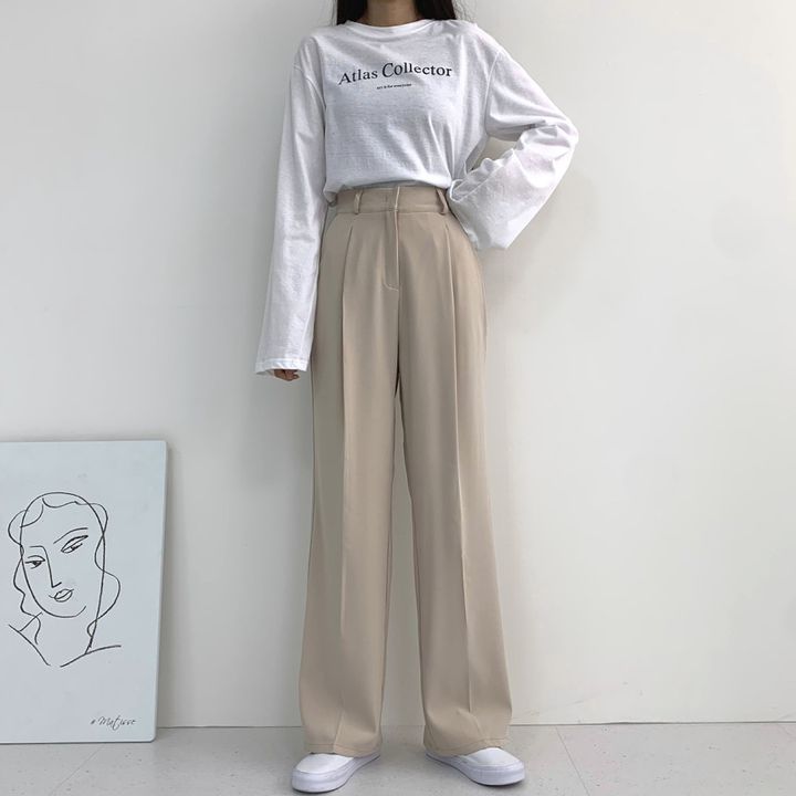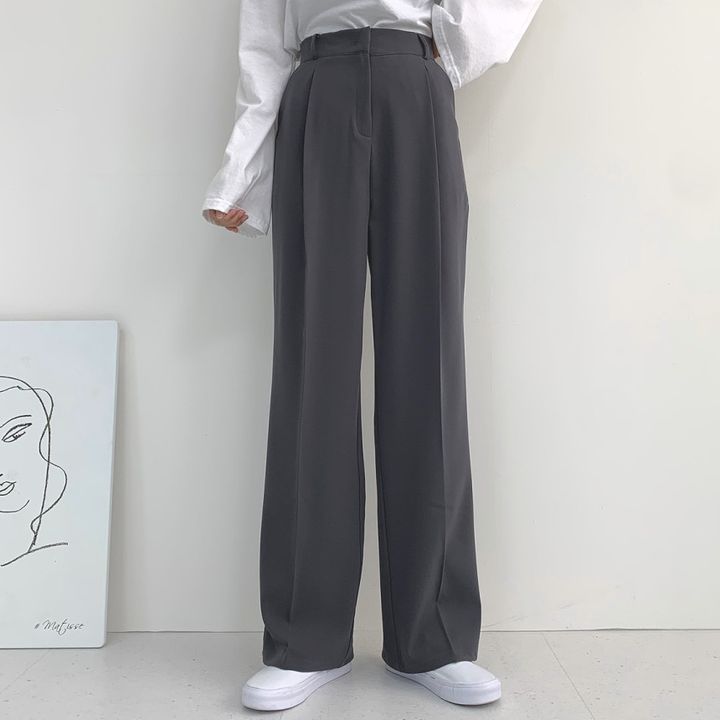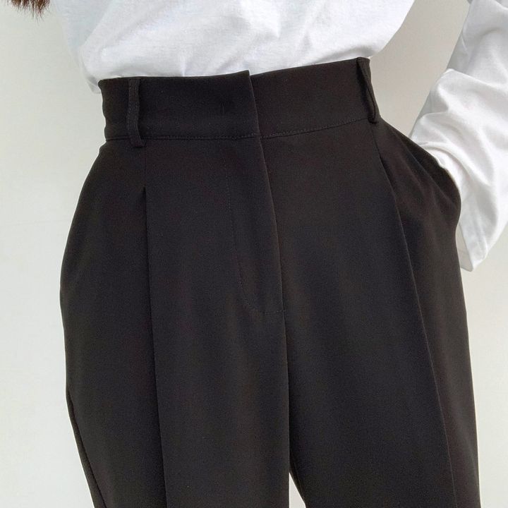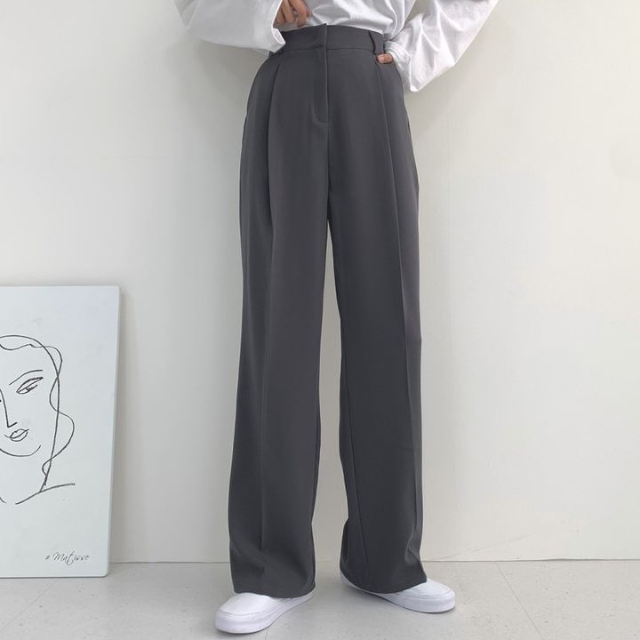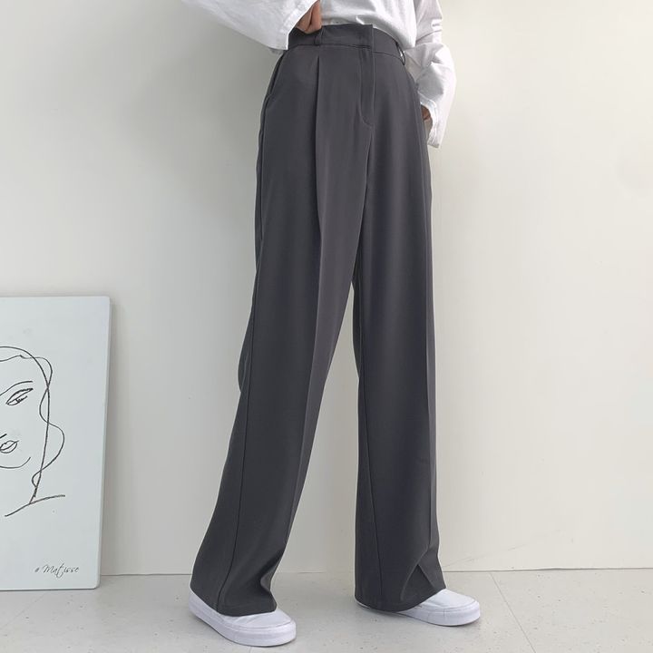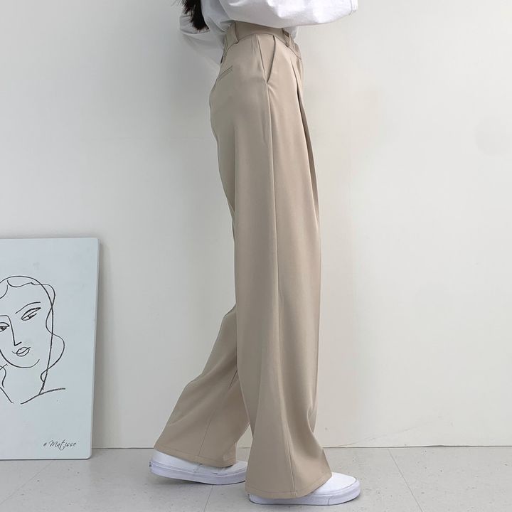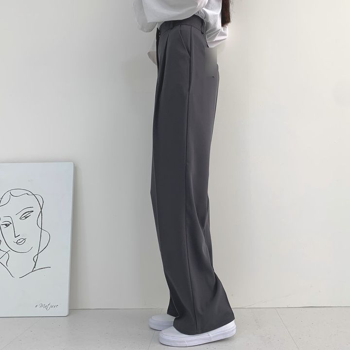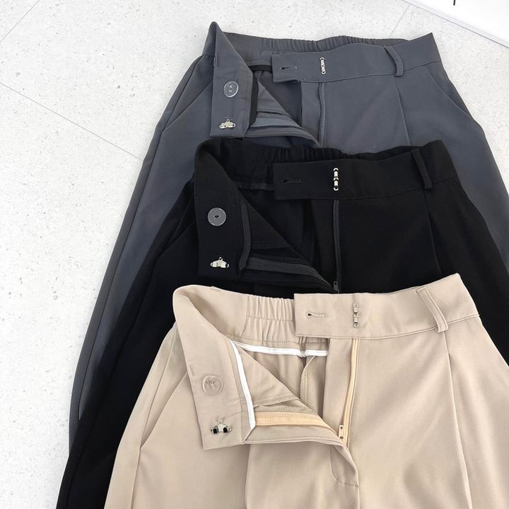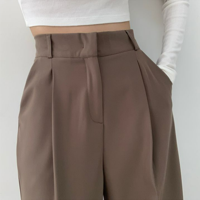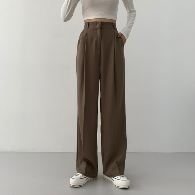 SPS6538 2XL뒷밴딩 안단추 클립 찰랑 핀턱 와이드 슬랙스팬츠