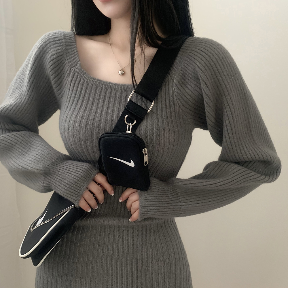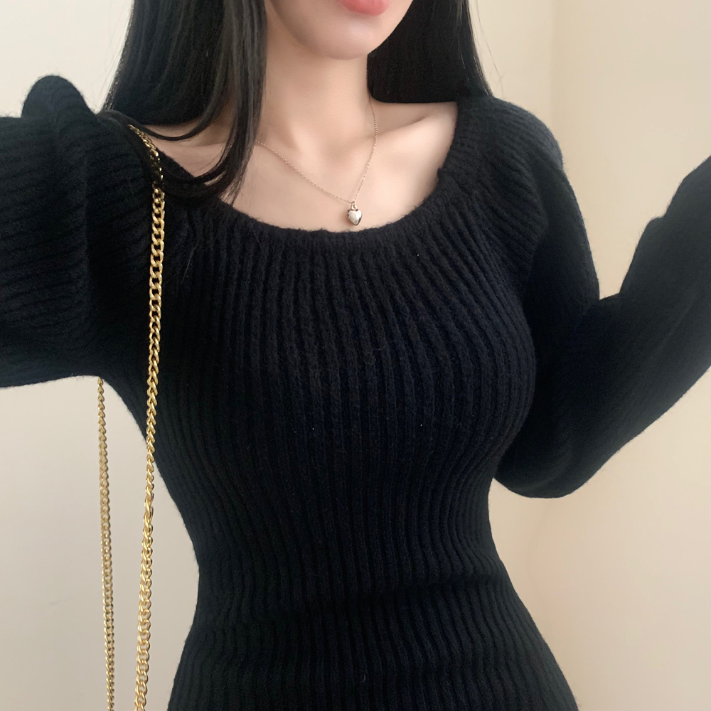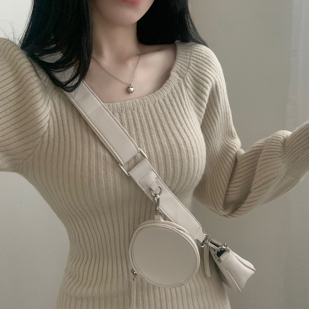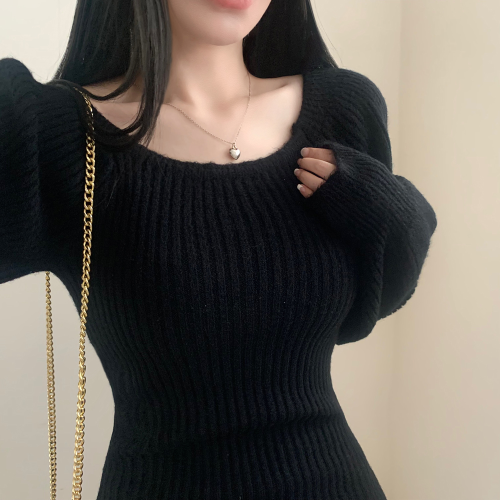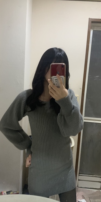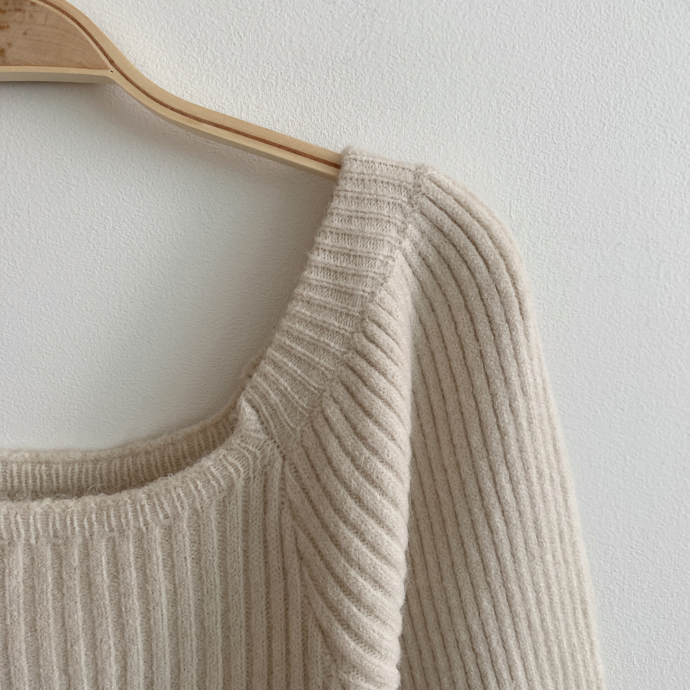SOP127204 남심저격 스퀘어넥 퍼프 골지 긴팔 미니 원피스