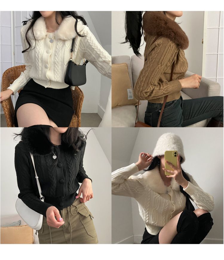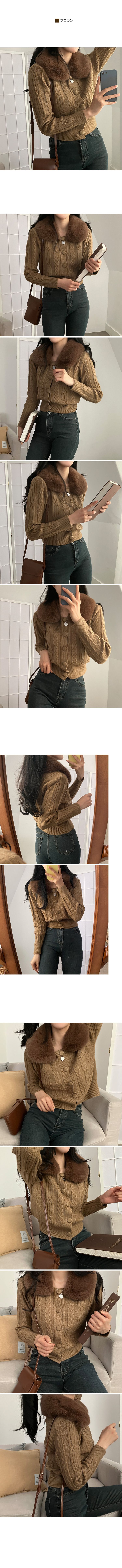SGD12422 워녕이 밍크퍼 카라 꽈배기 니트 가디건