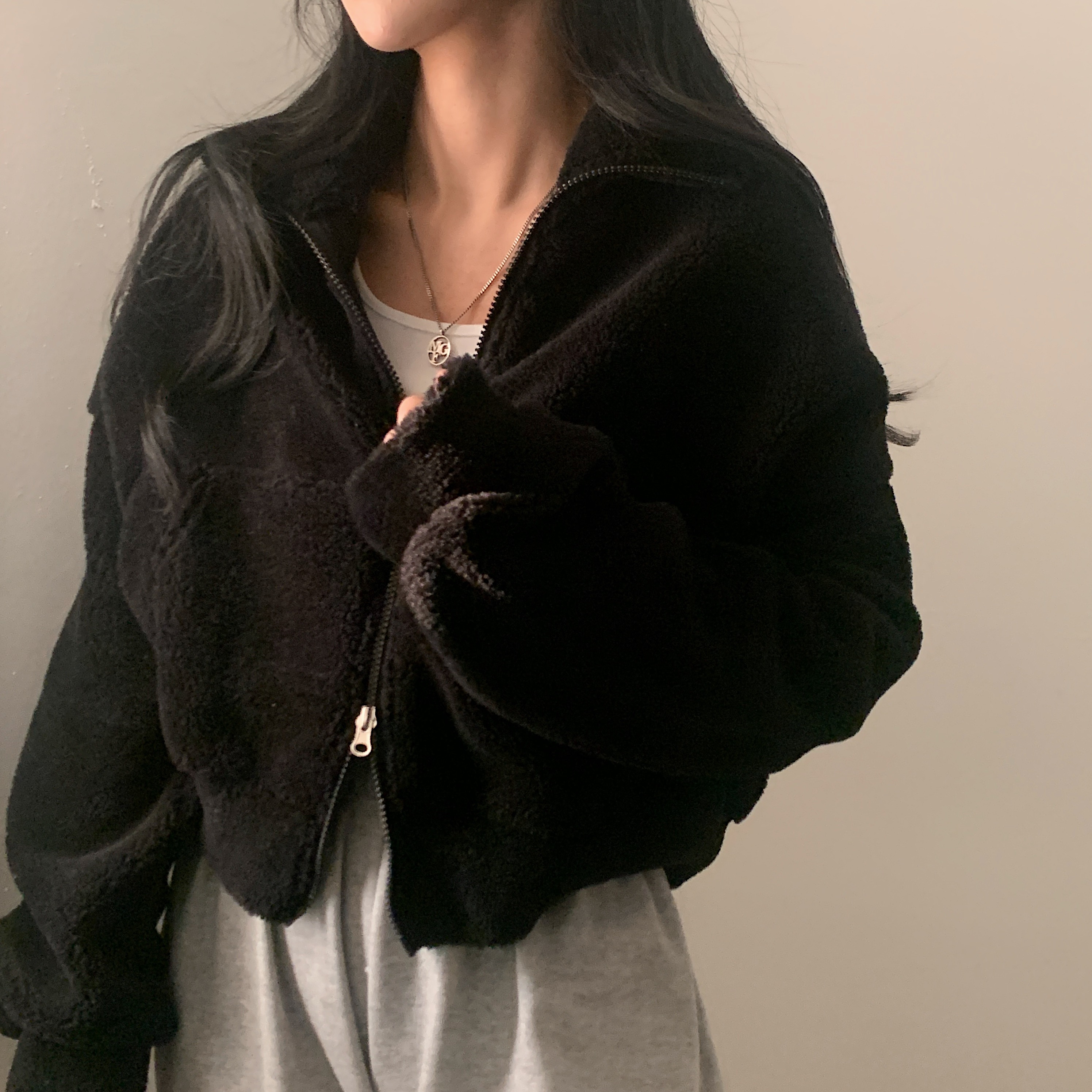 SJP4238 핫팩 양털 투웨이 후리스 밍크집업점퍼 4color