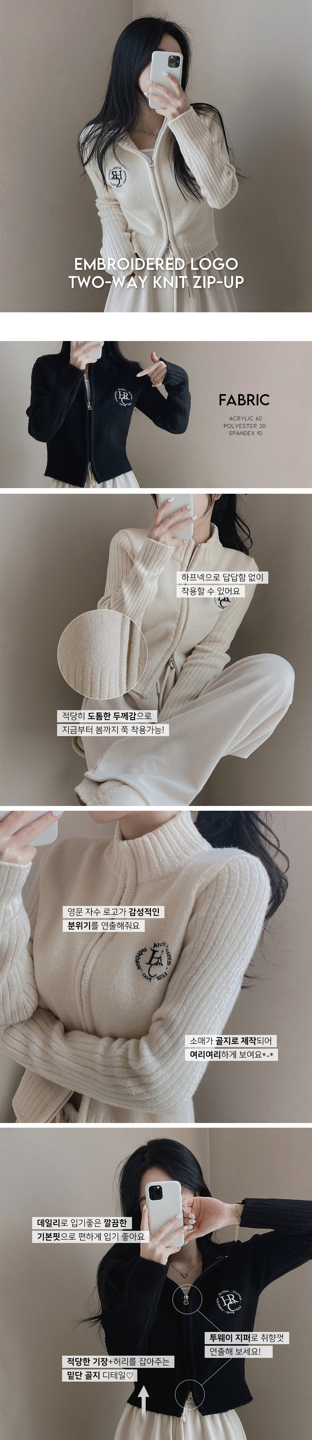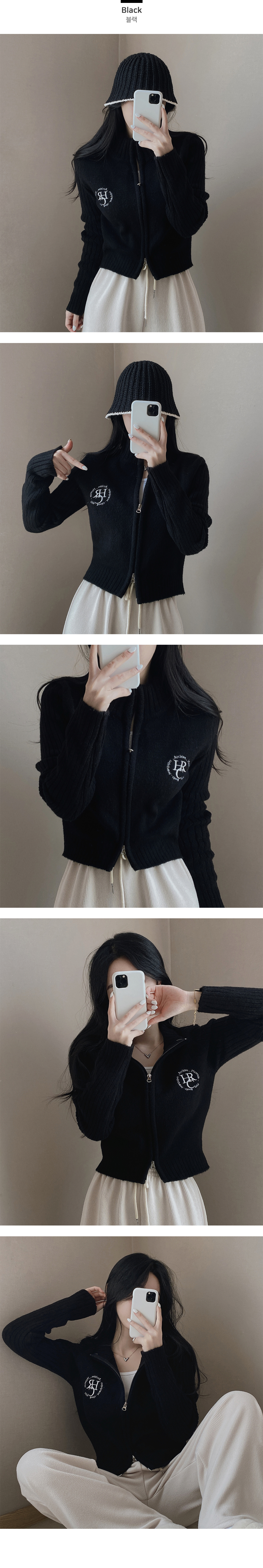 SJP5372 자수 로고 투웨이 니트 집업 3color