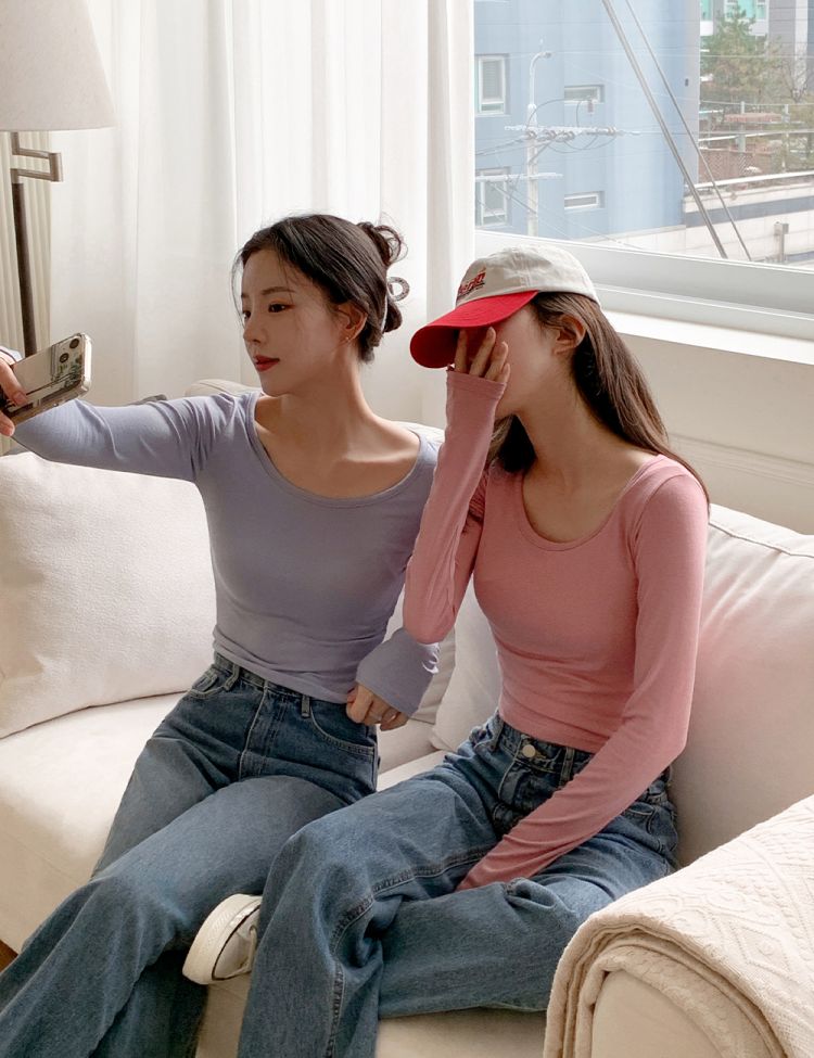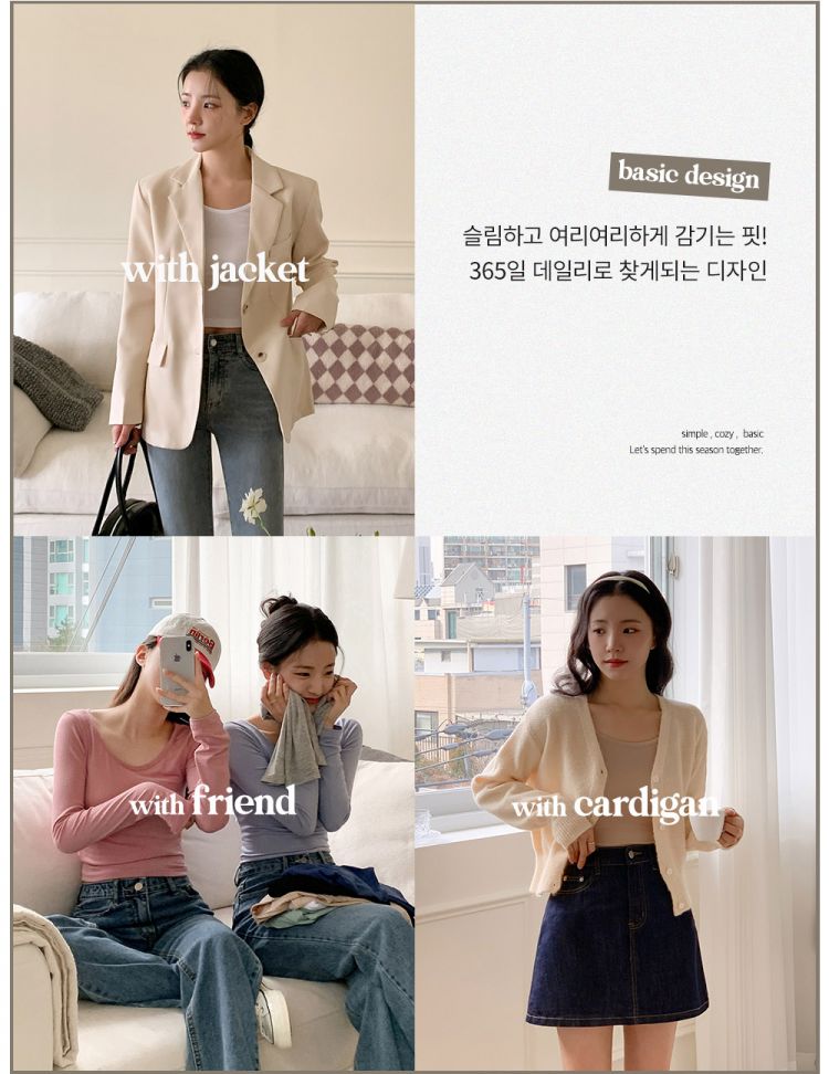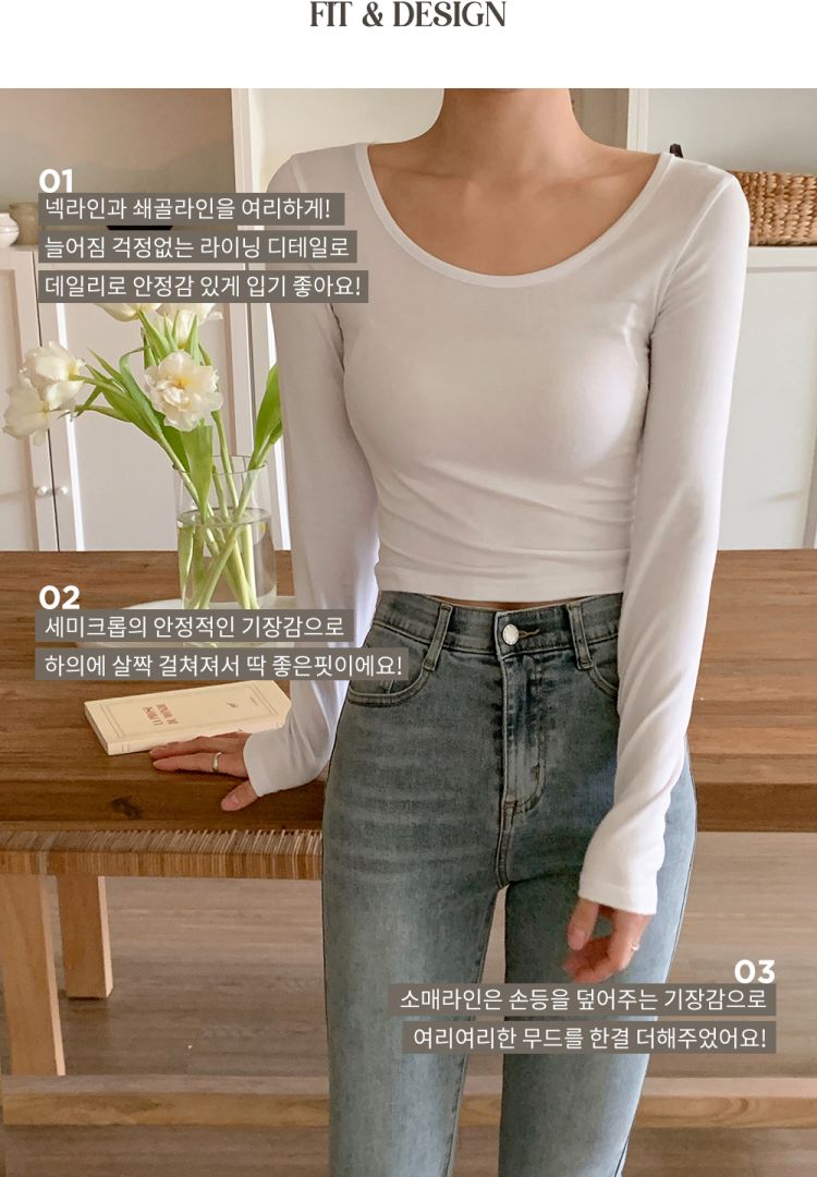 STS28009 [1+1/기획] 쫀쫀 여리핏 유넥 크롭 티셔츠