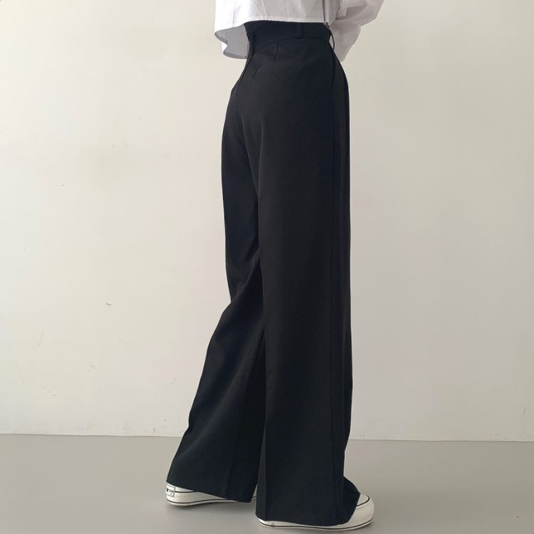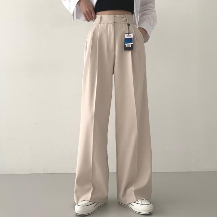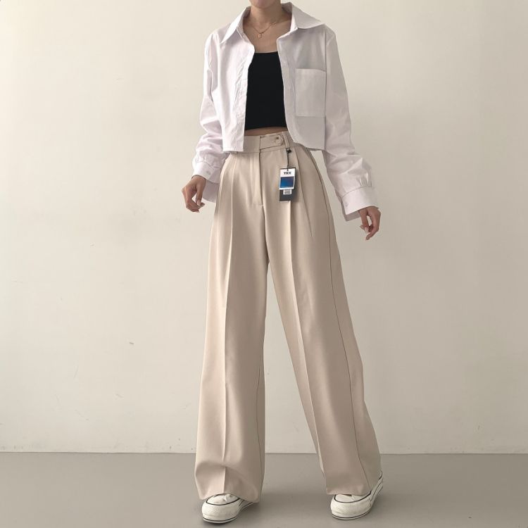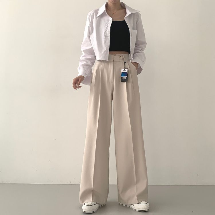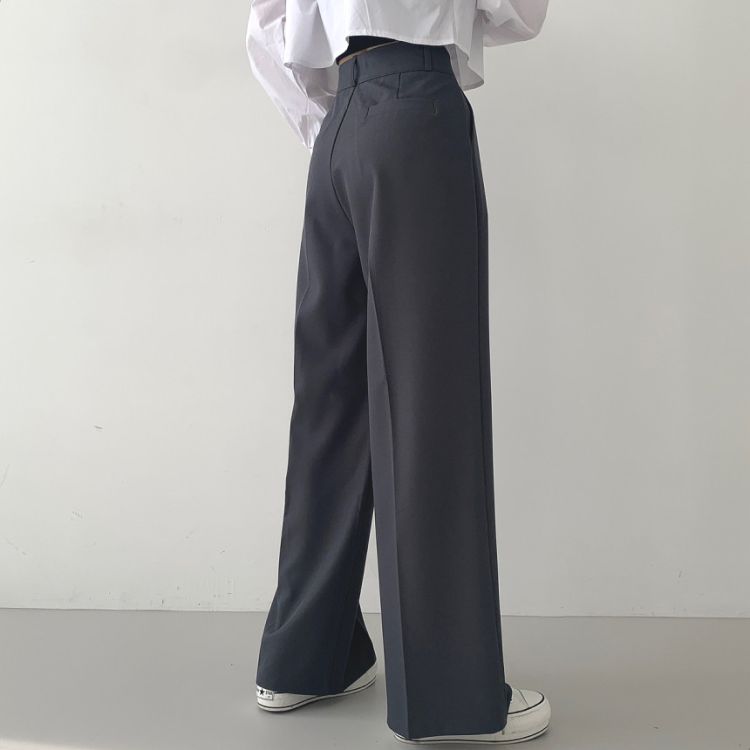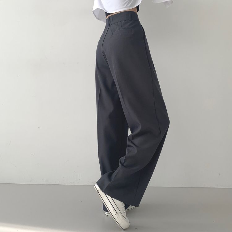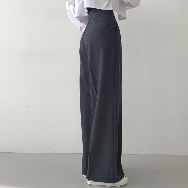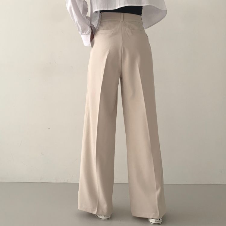 SPS16561 가로버튼 안단추 핀턱 롱와이드 슬랙스팬츠