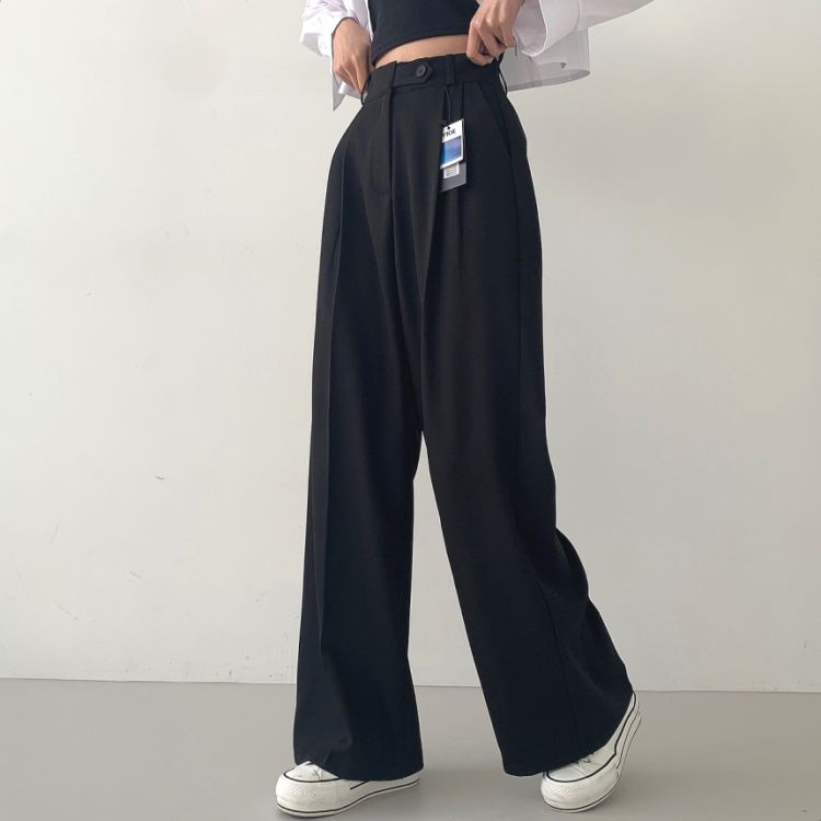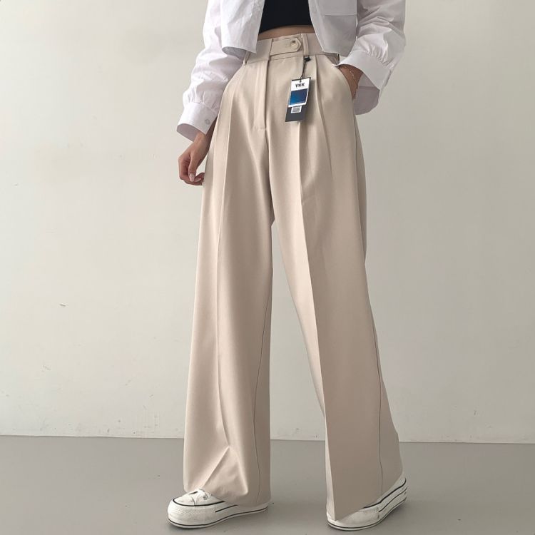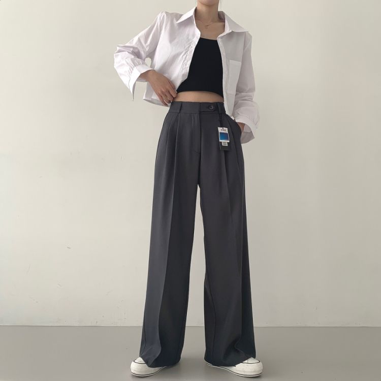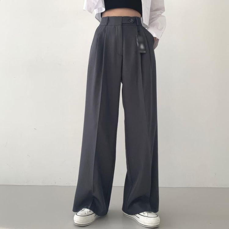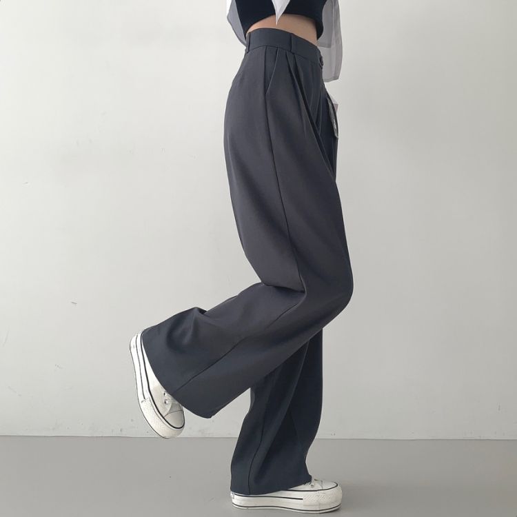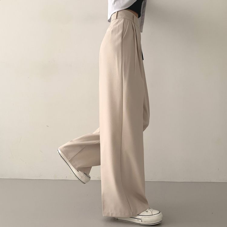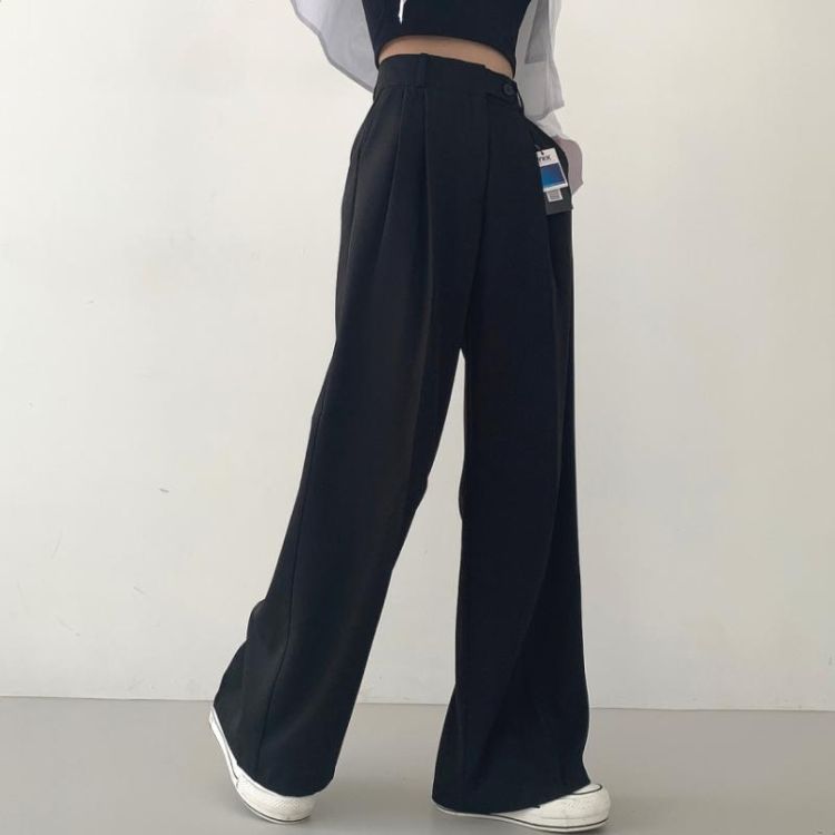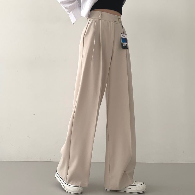 SPS16561 가로버튼 안단추 핀턱 롱와이드 슬랙스팬츠