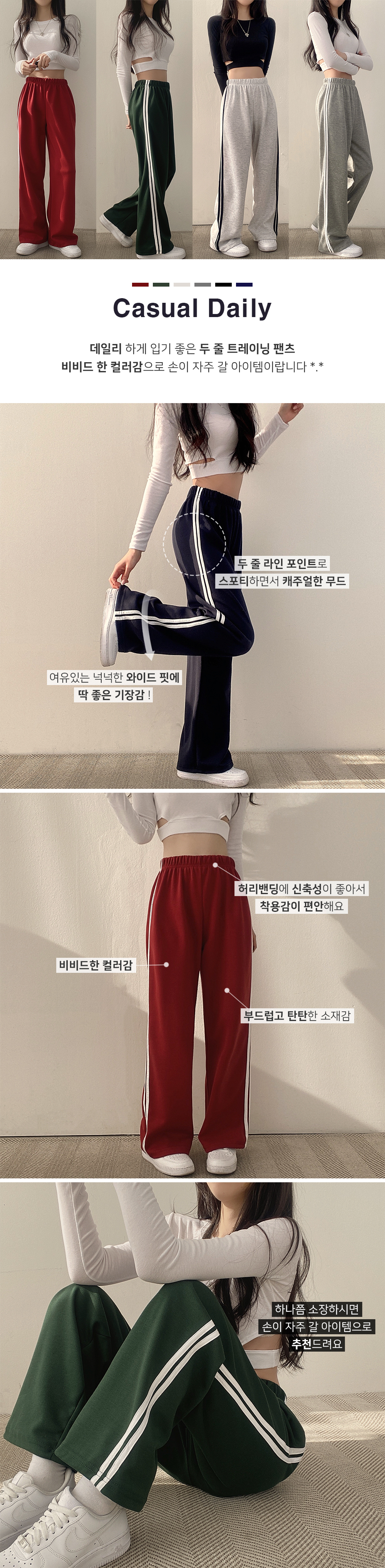 SPS16819 두줄 와이드 트레이닝 팬츠 6color