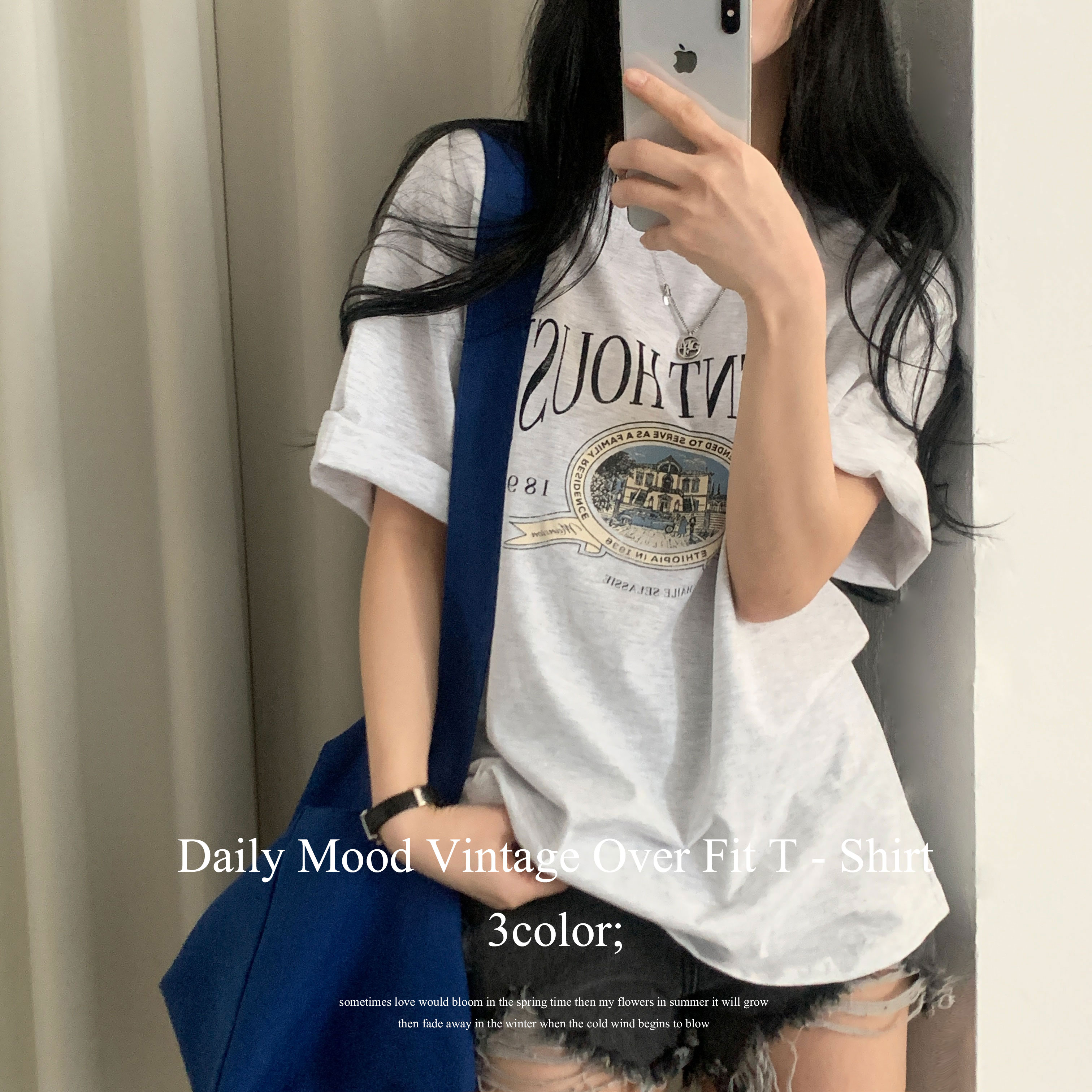 STS30060 빈티지한매력 오버핏 레터링 박스 반팔티셔츠 3color