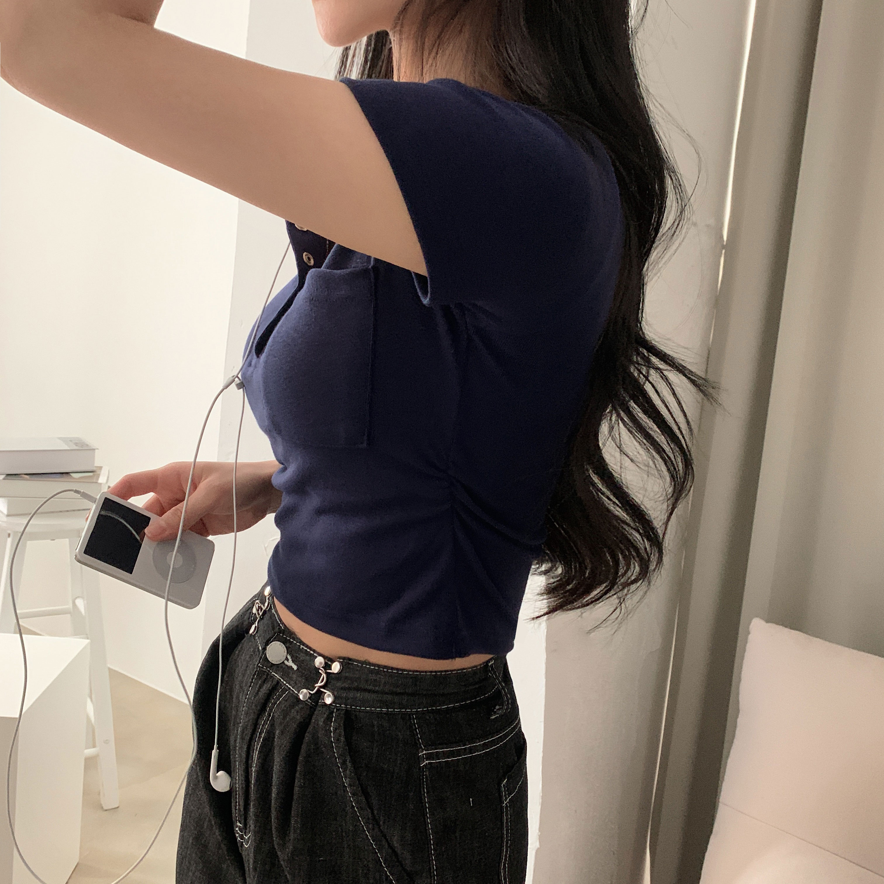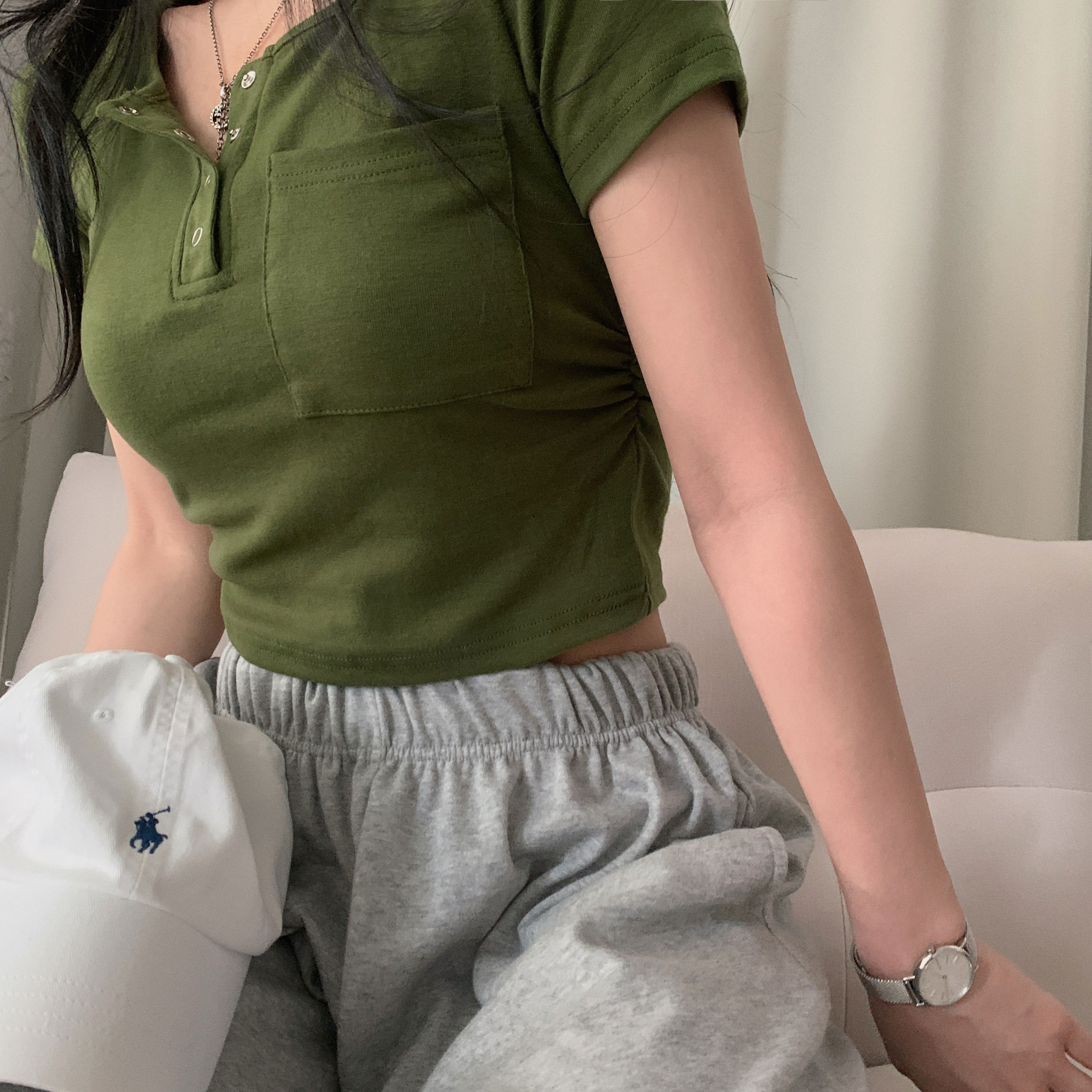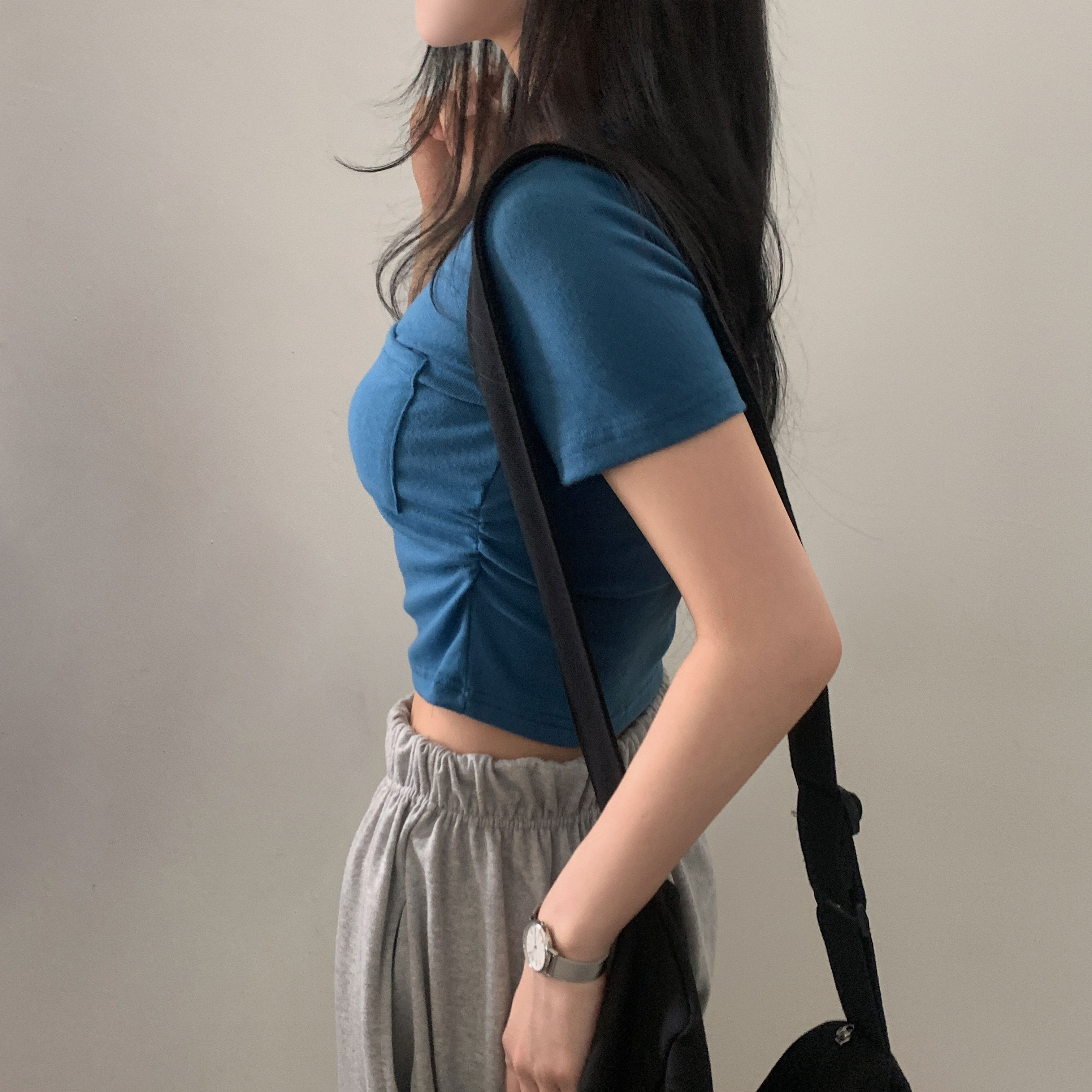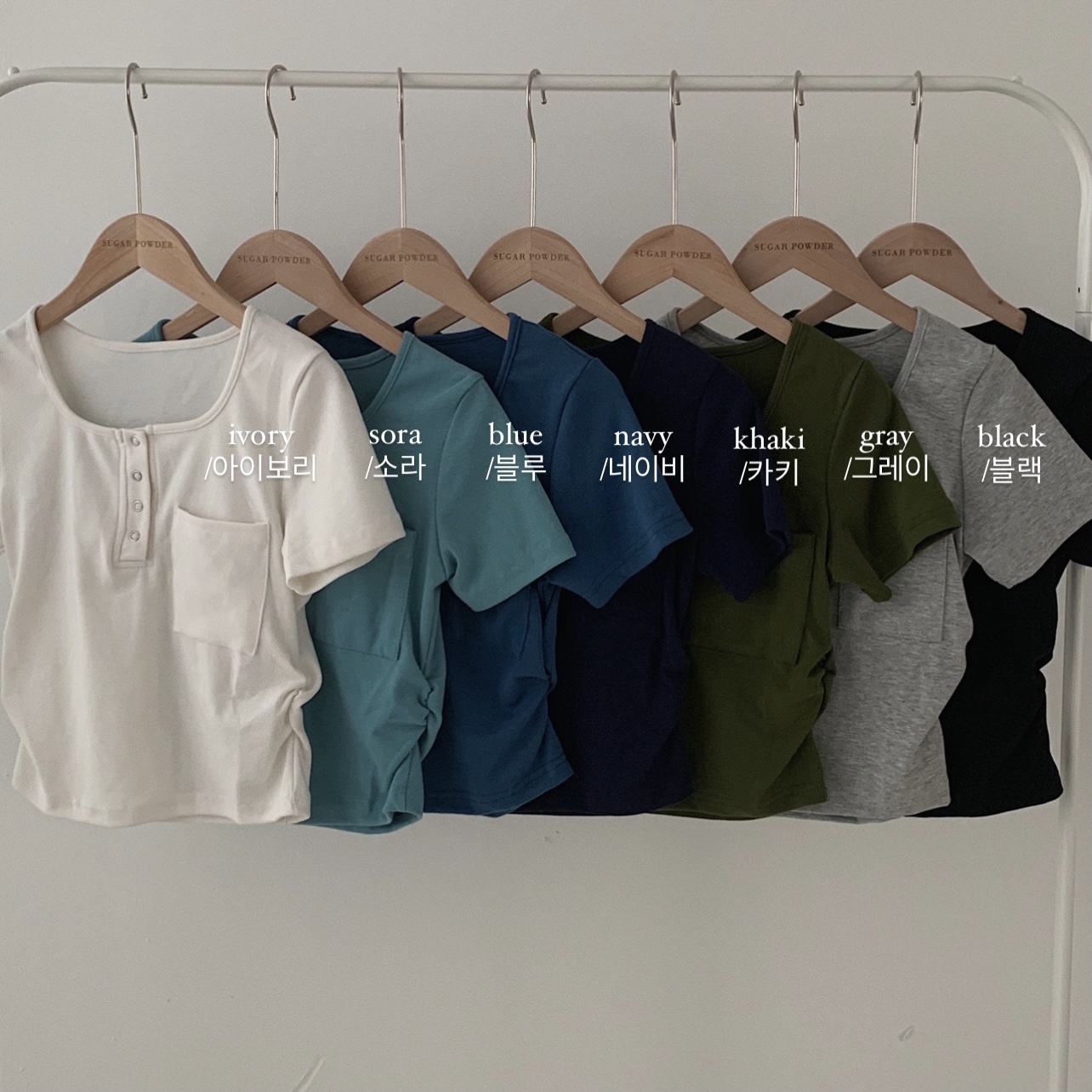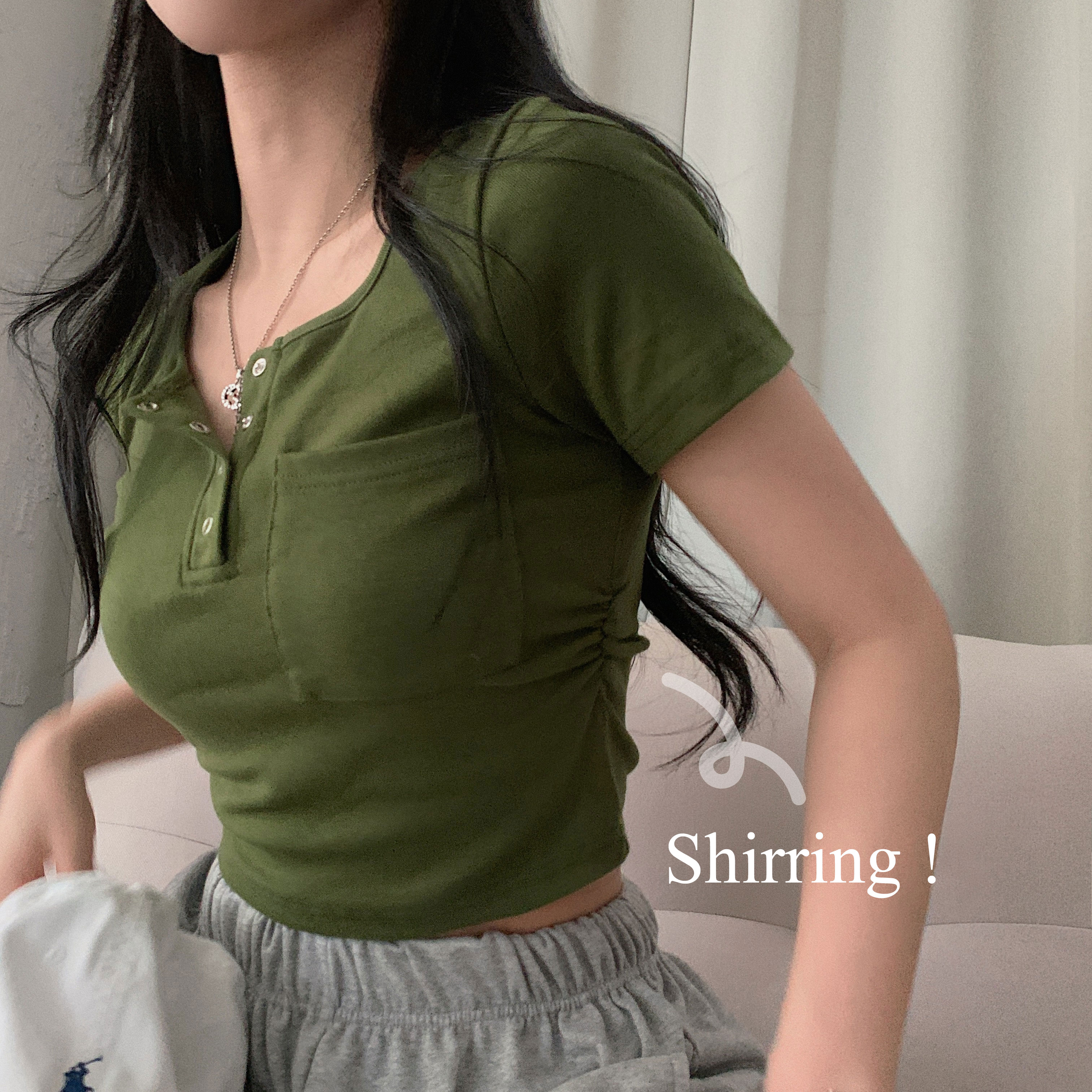 STS33049 내가 만든 무드 셔링 포켓 크롭 반팔티셔츠 7color