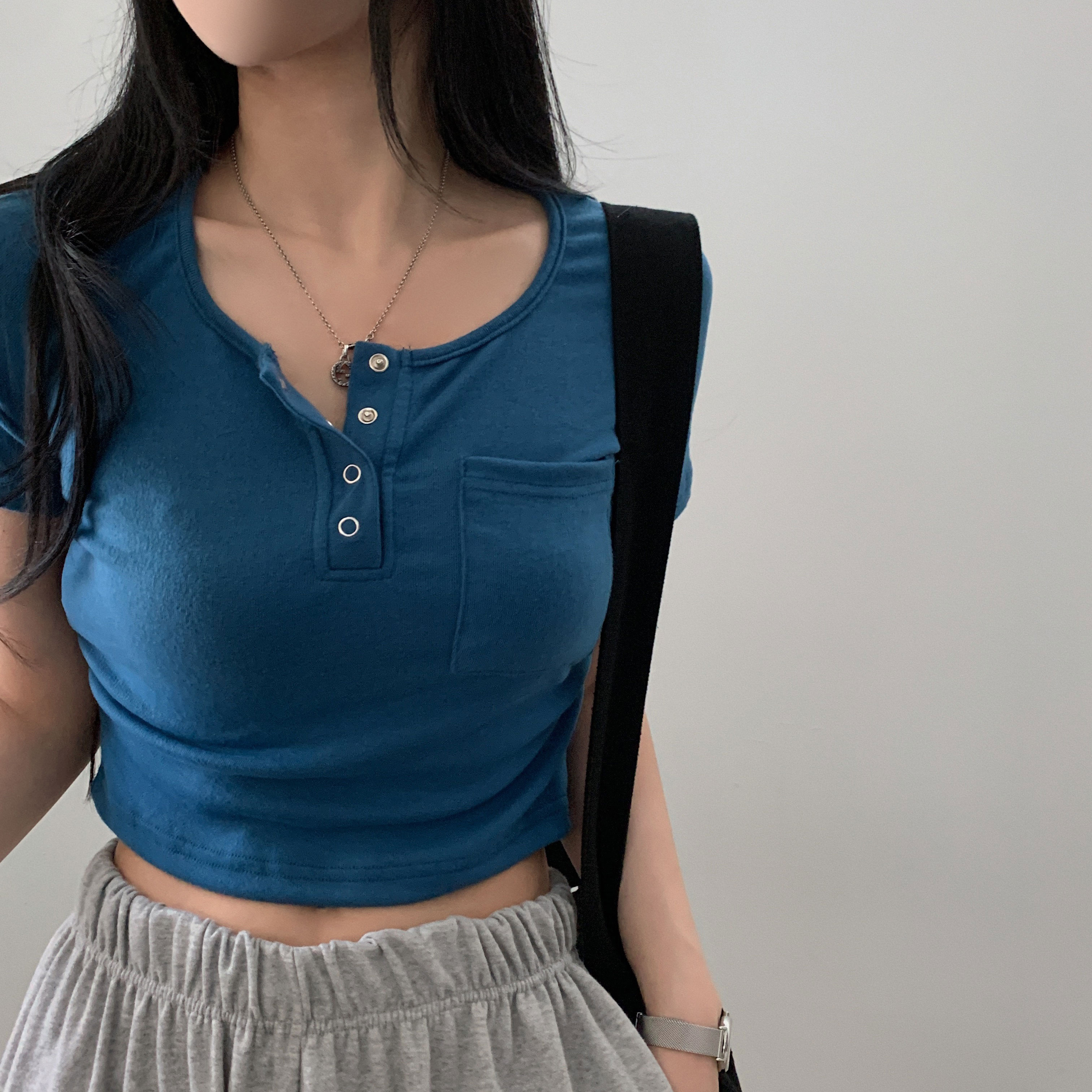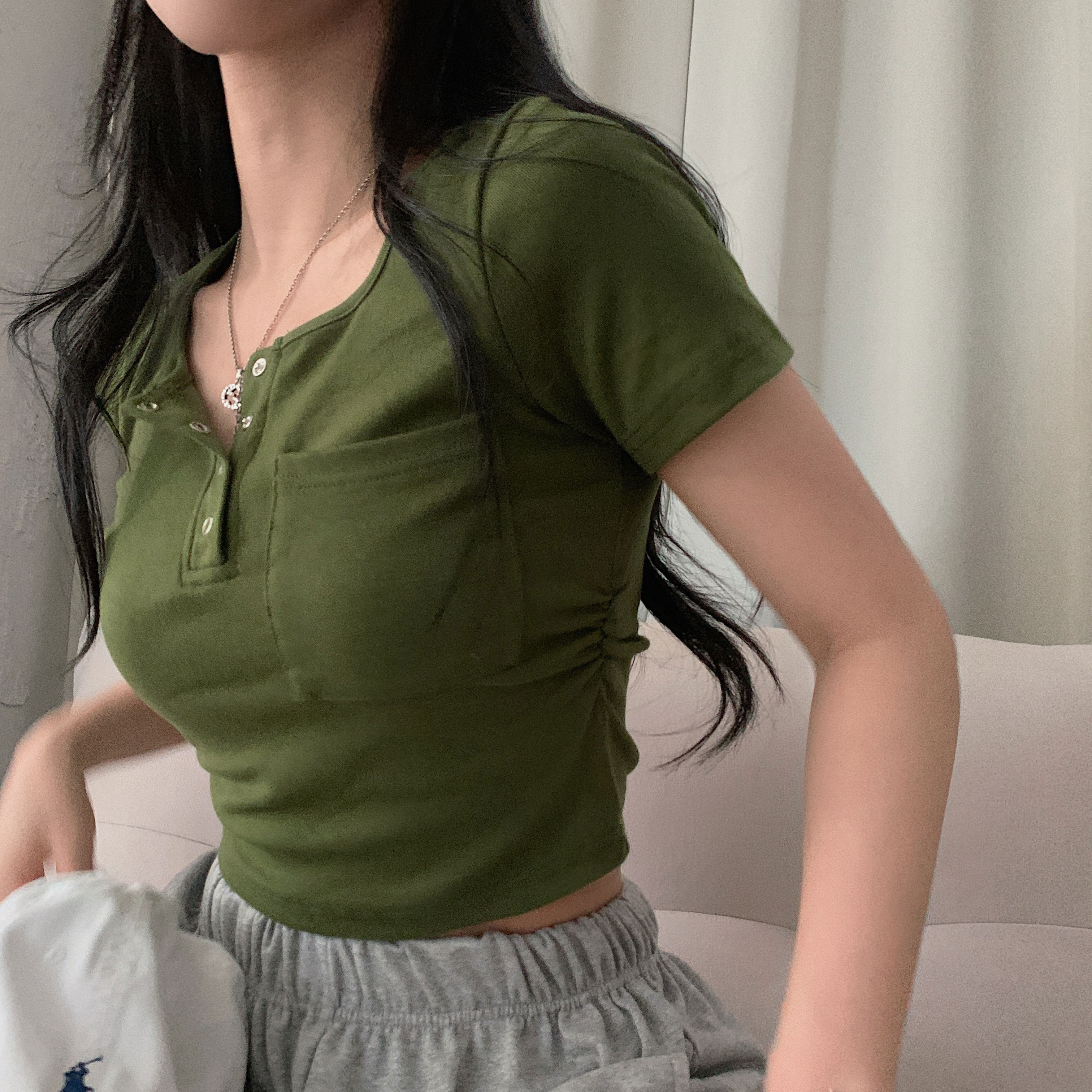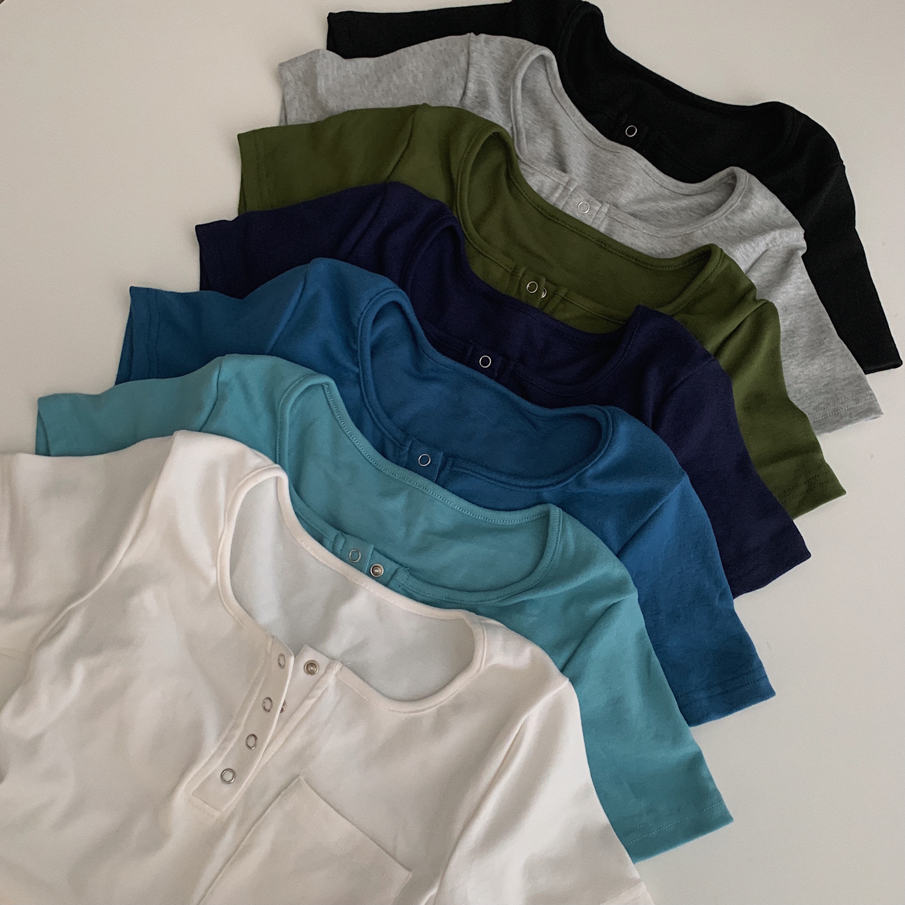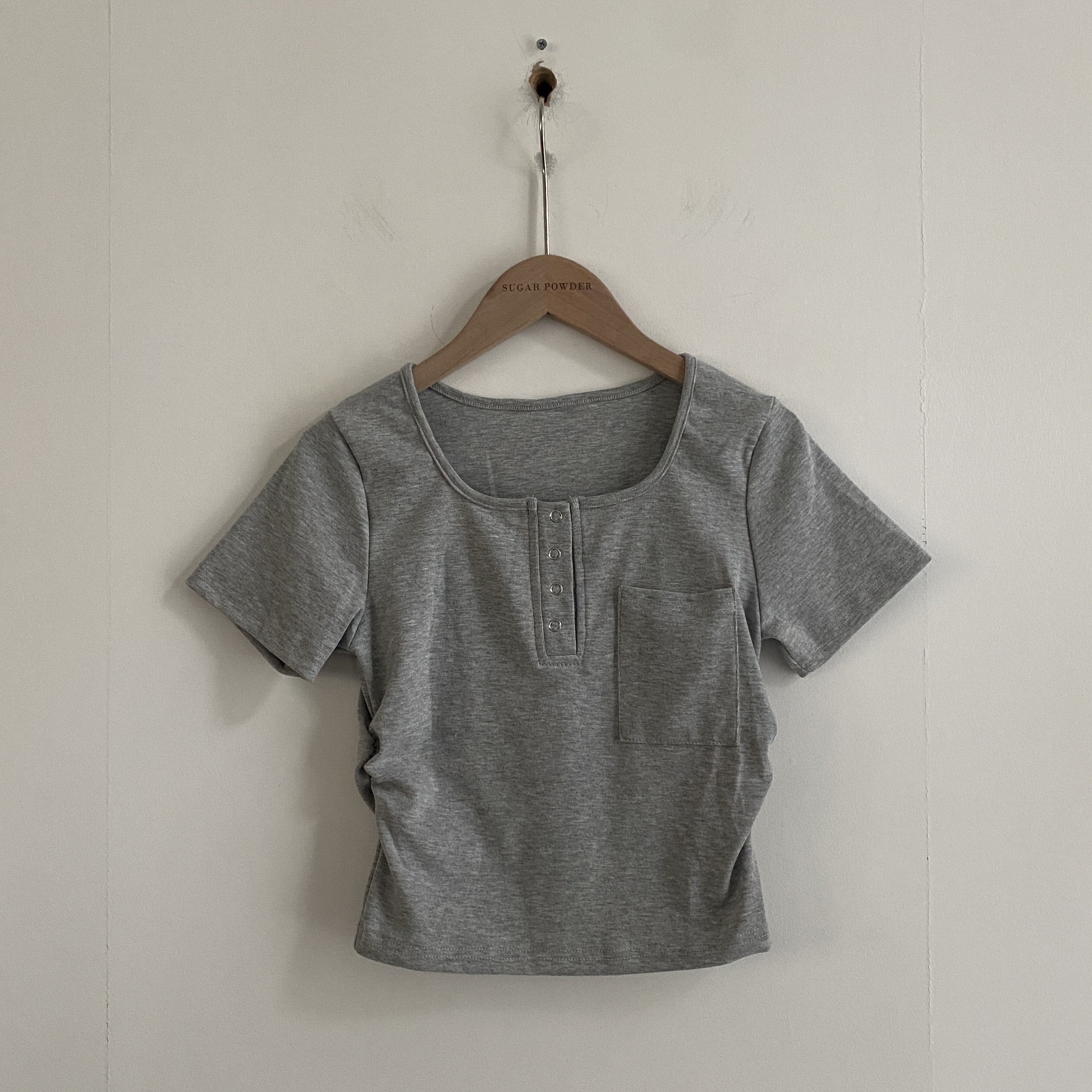 STS33049 내가 만든 무드 셔링 포켓 크롭 반팔티셔츠 7color