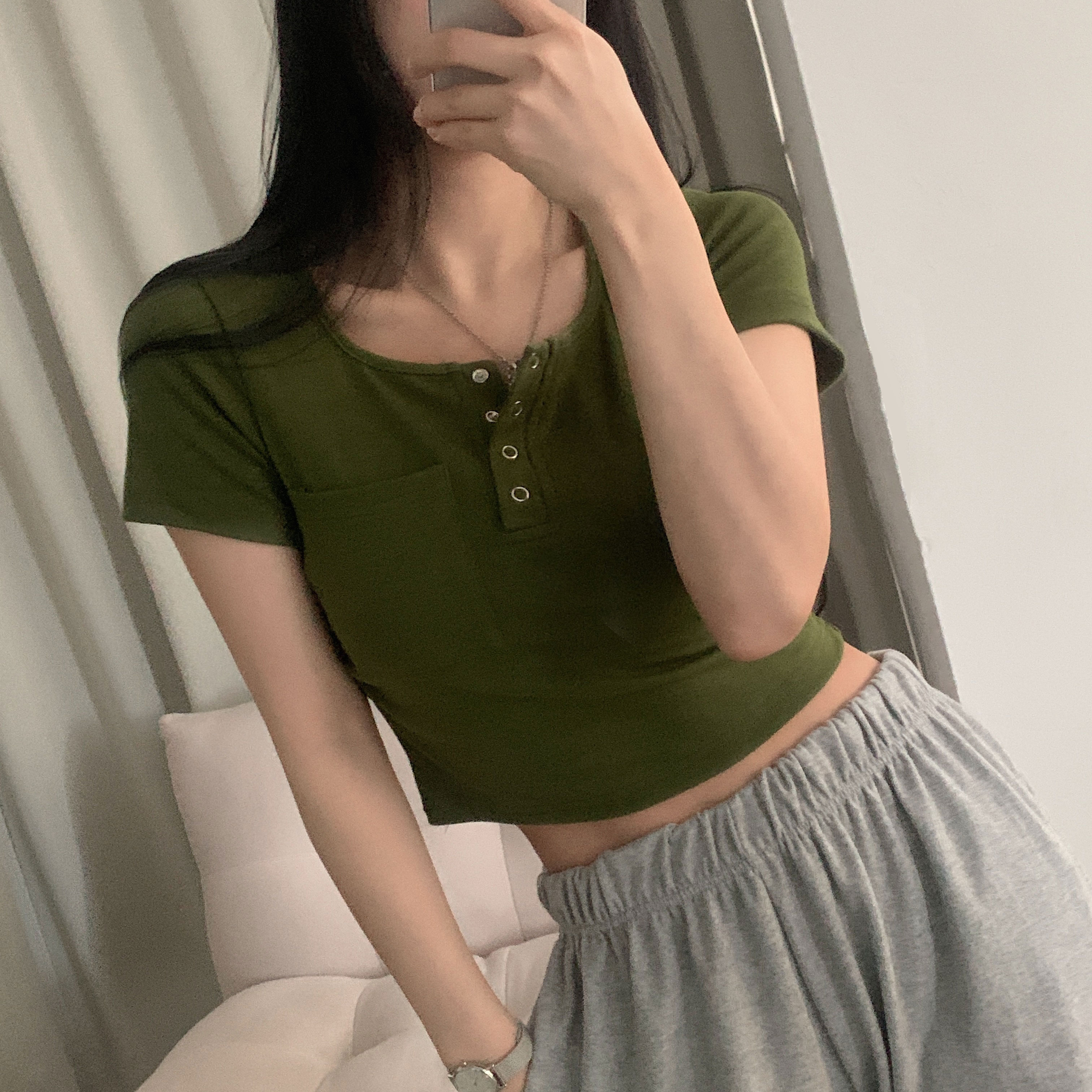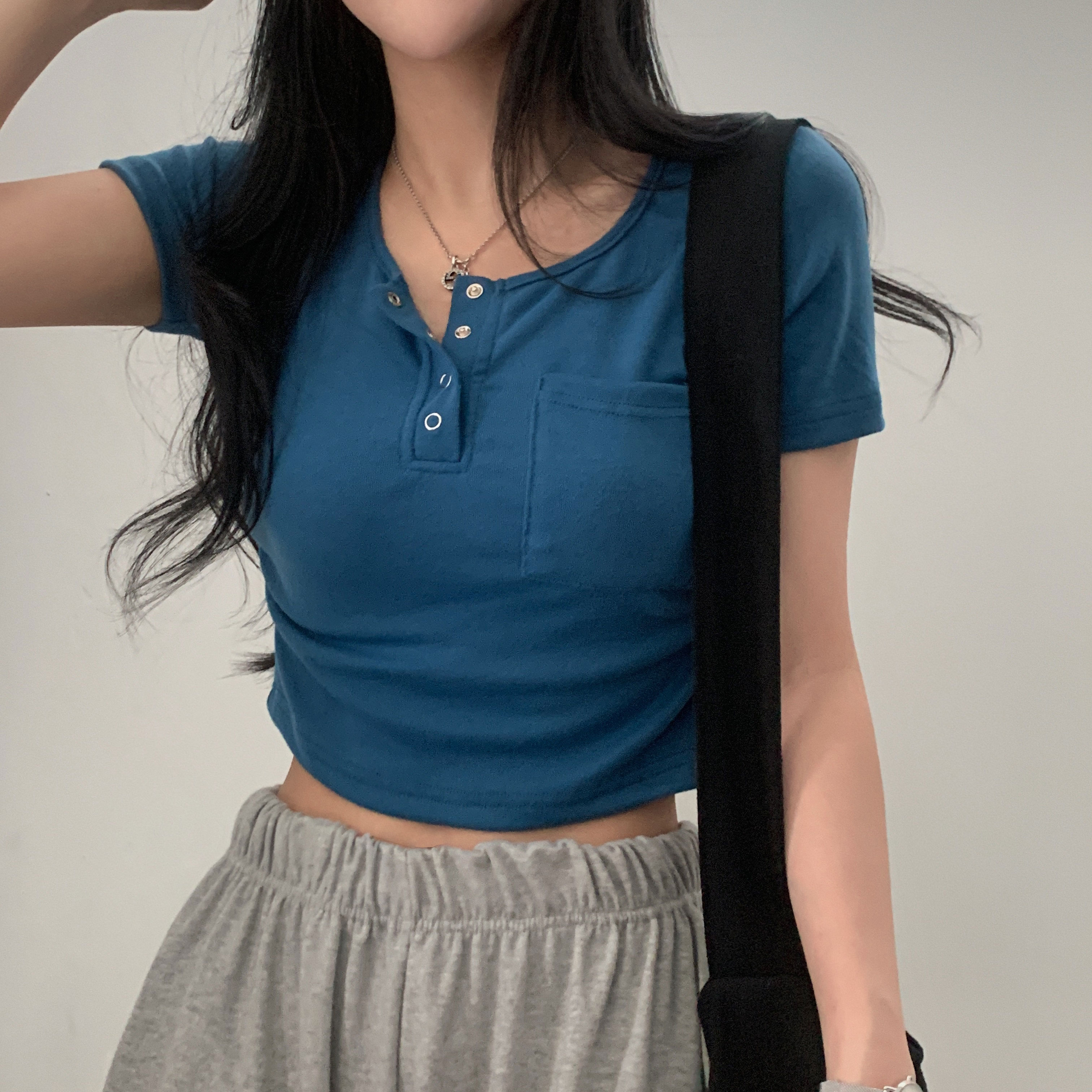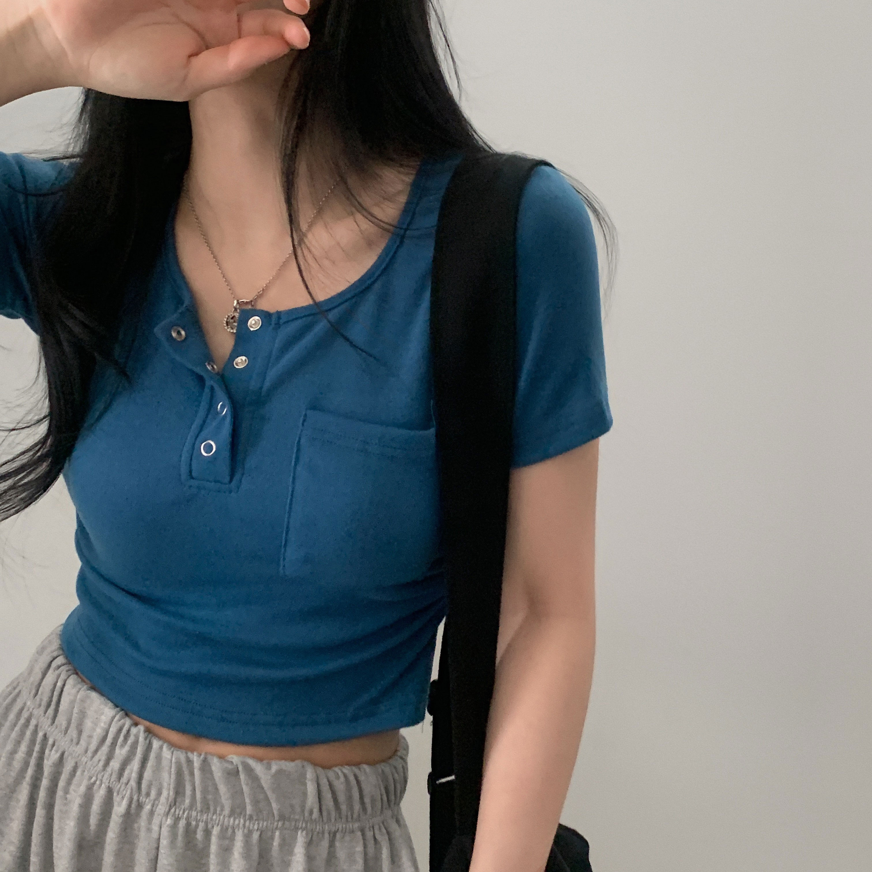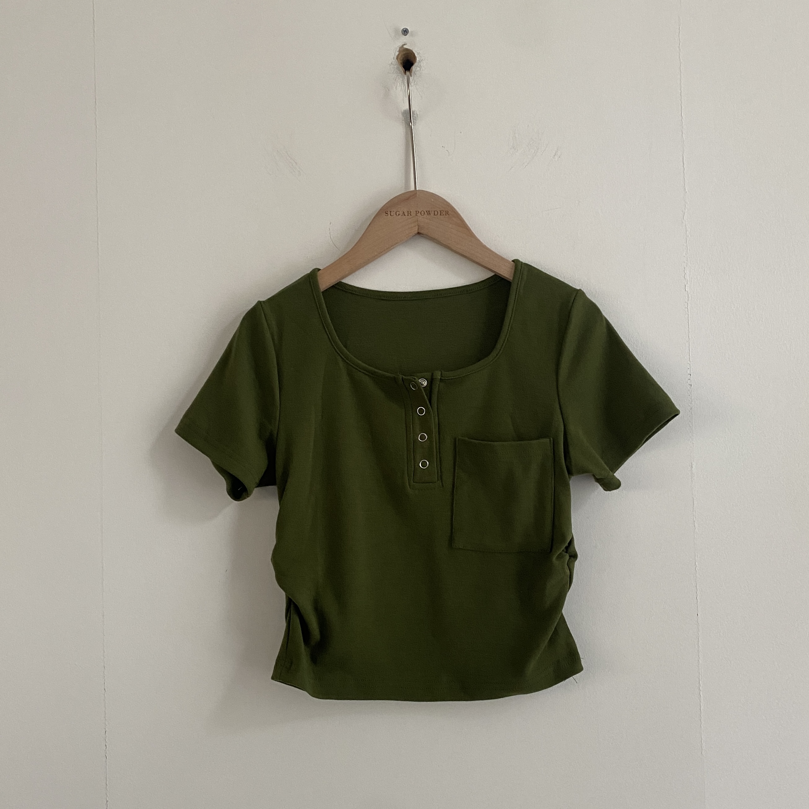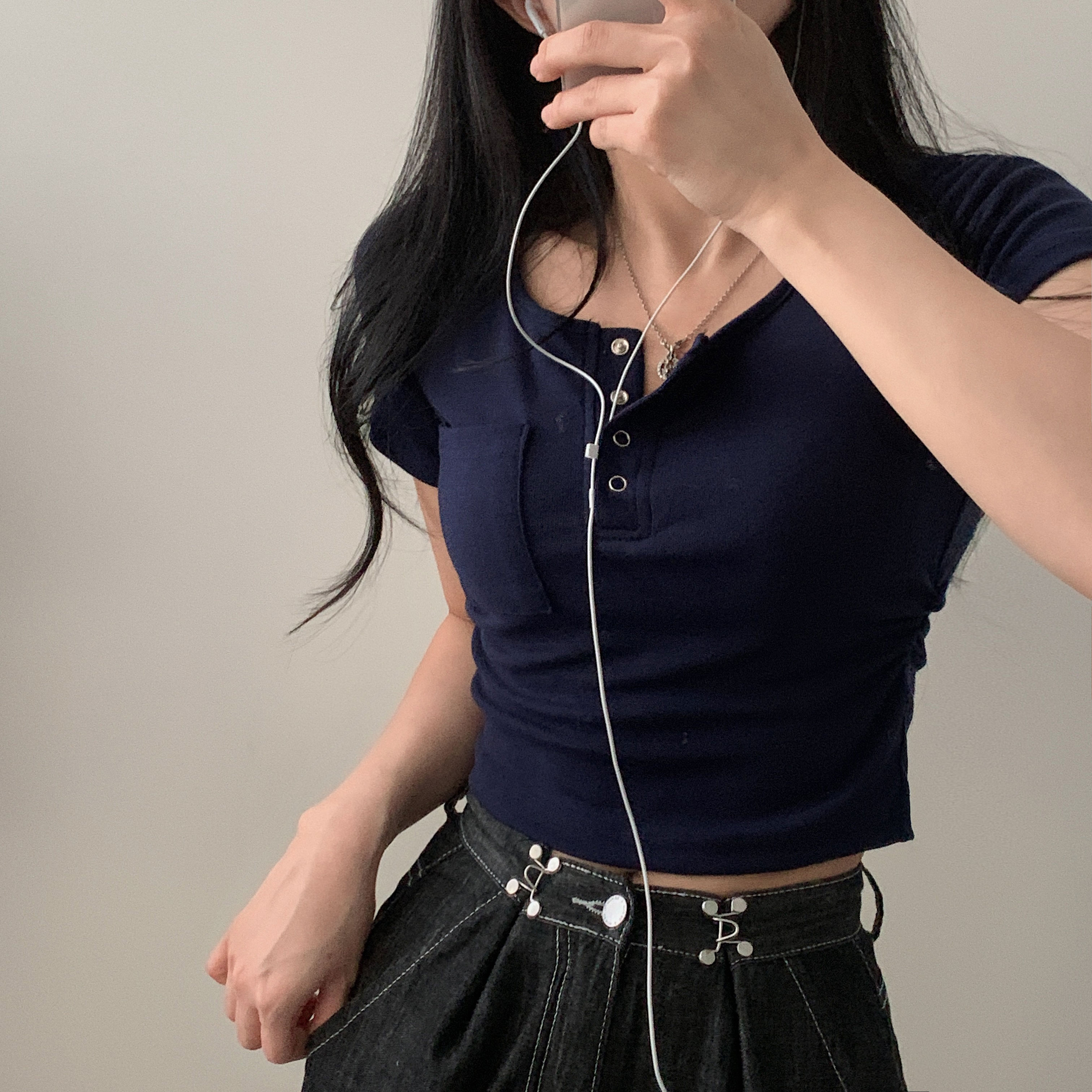 STS33049 내가 만든 무드 셔링 포켓 크롭 반팔티셔츠 7color