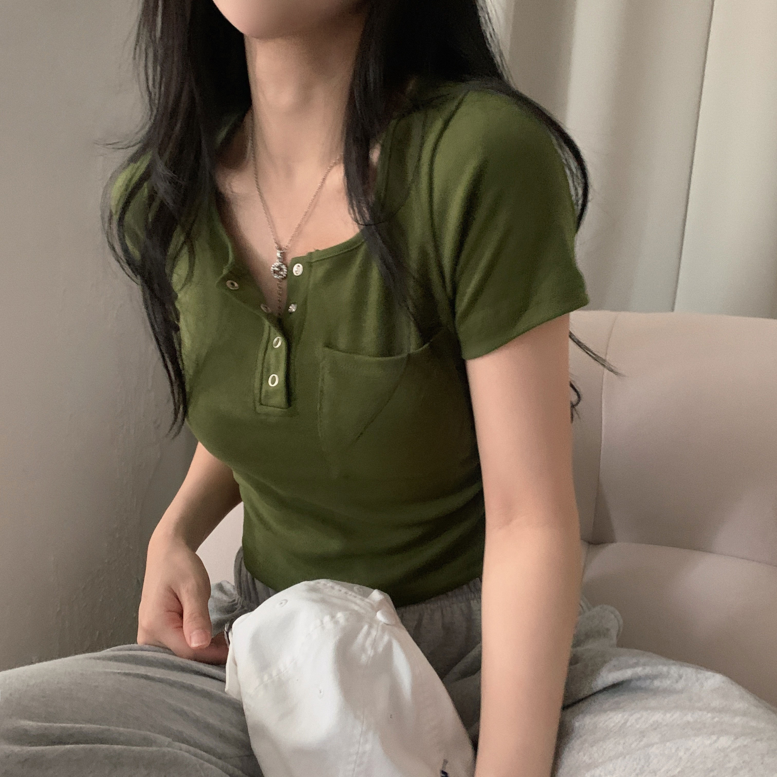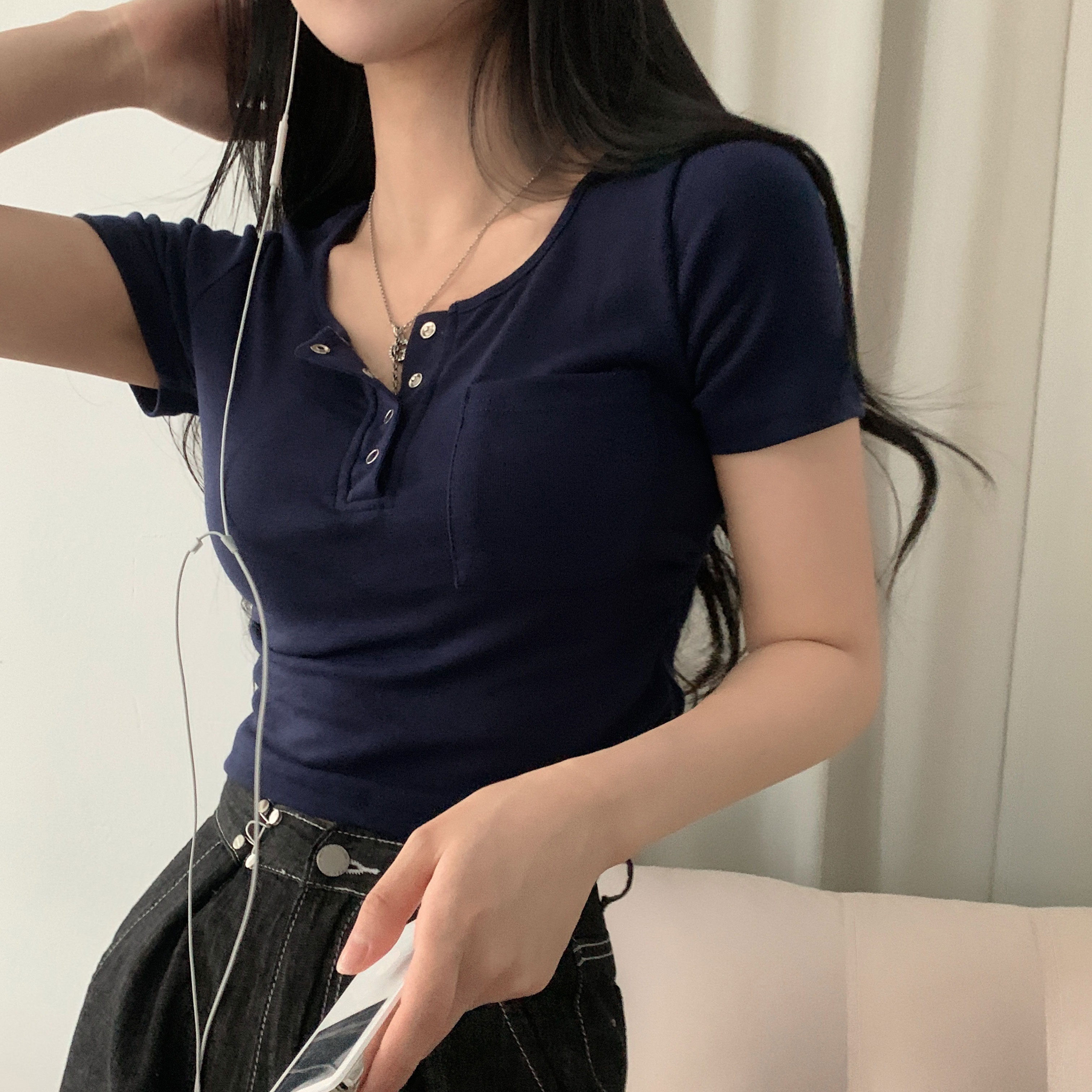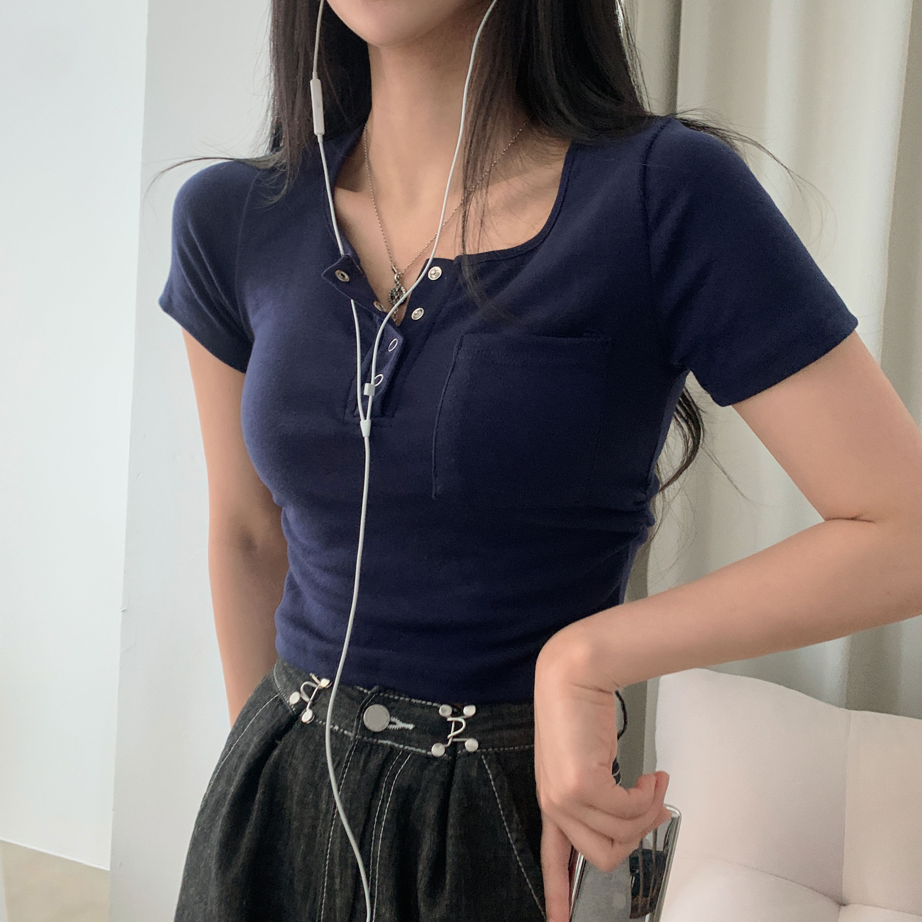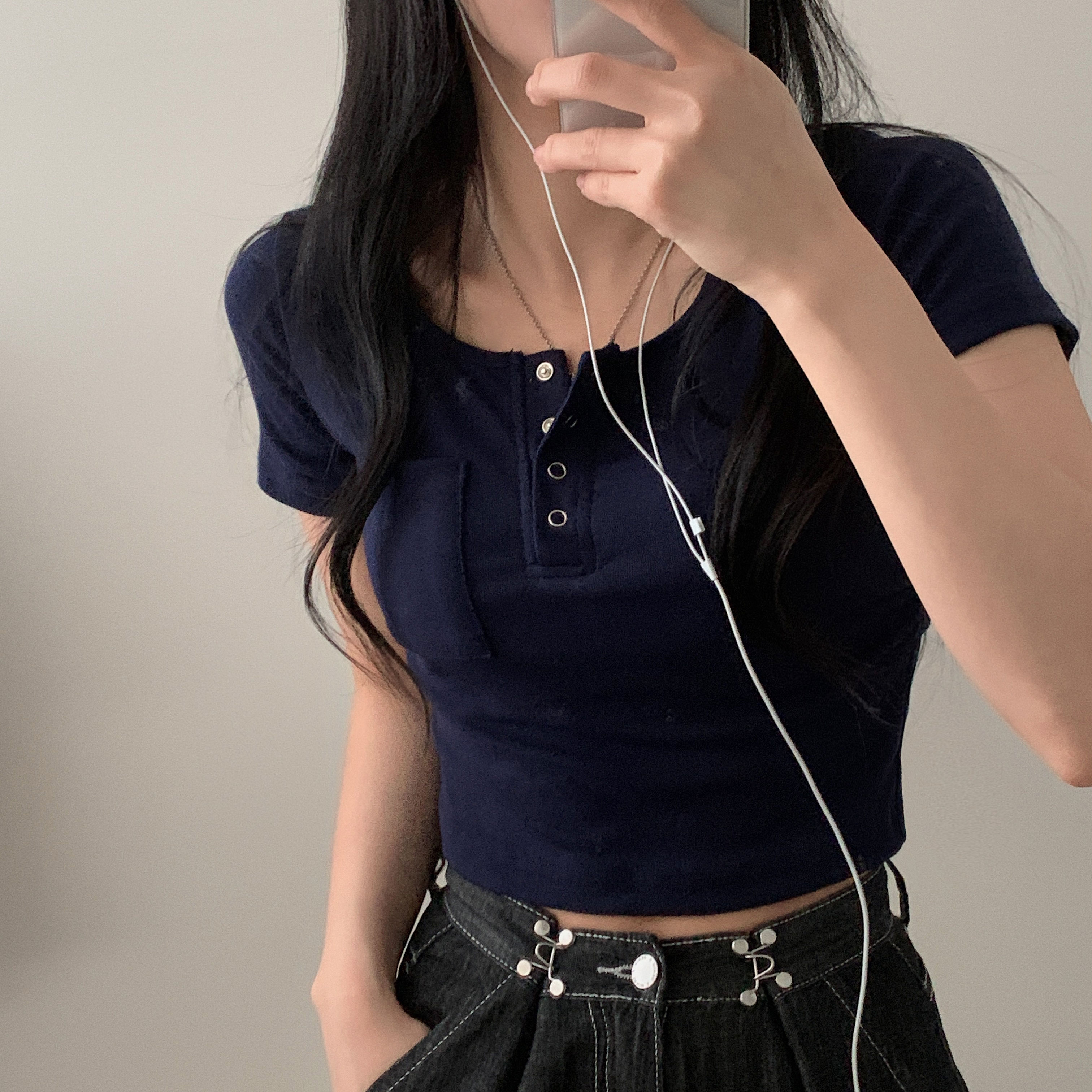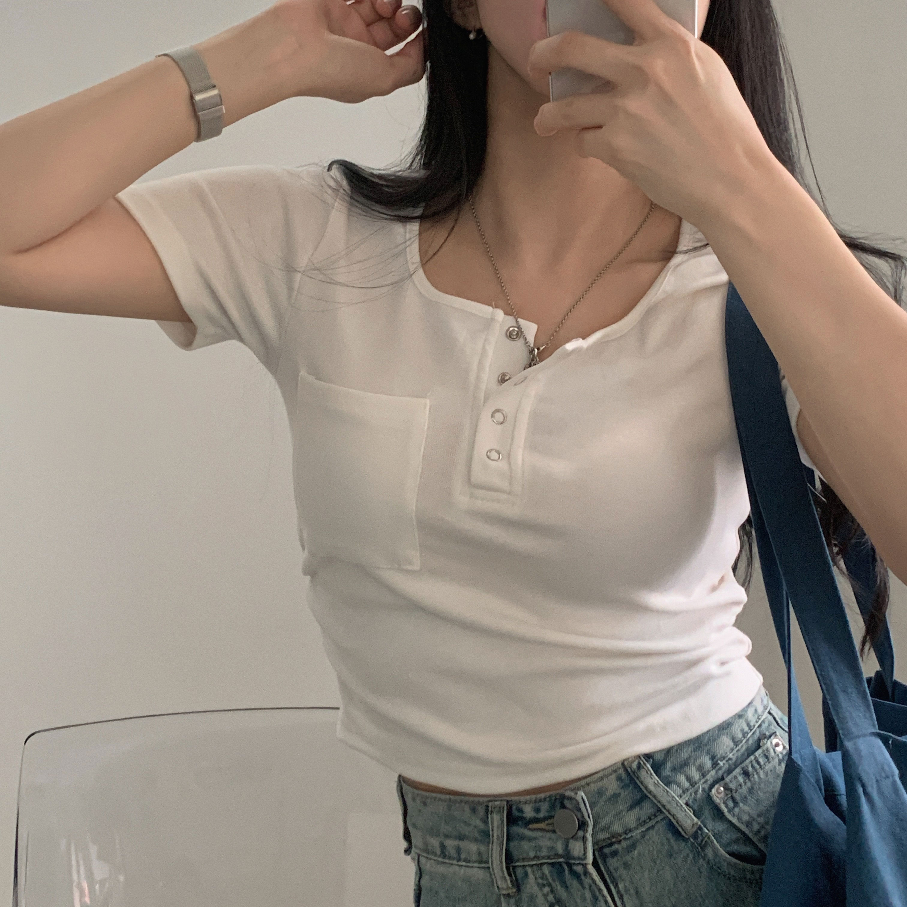 STS33049 내가 만든 무드 셔링 포켓 크롭 반팔티셔츠 7color