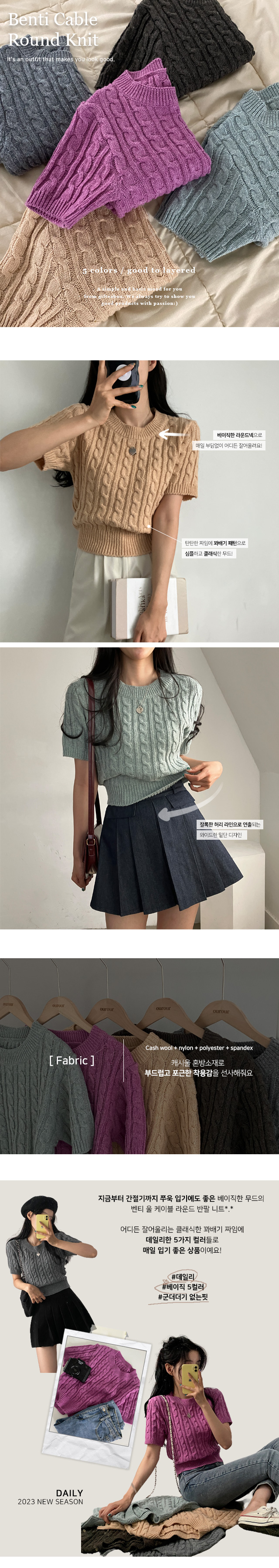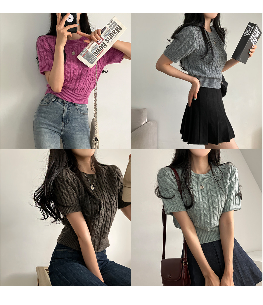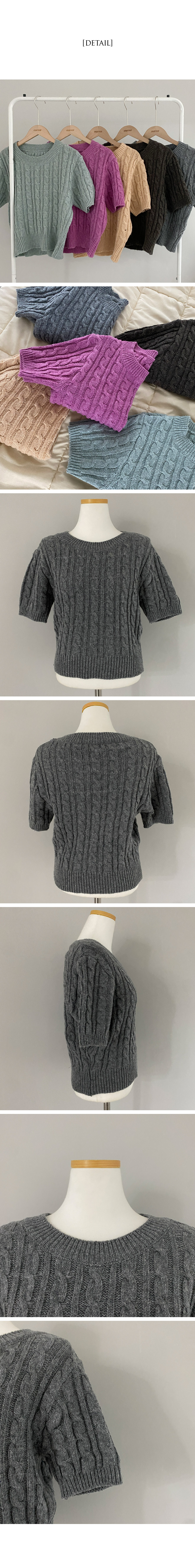 SNT18040 벤티 울 케이블 라운드 반팔 니트