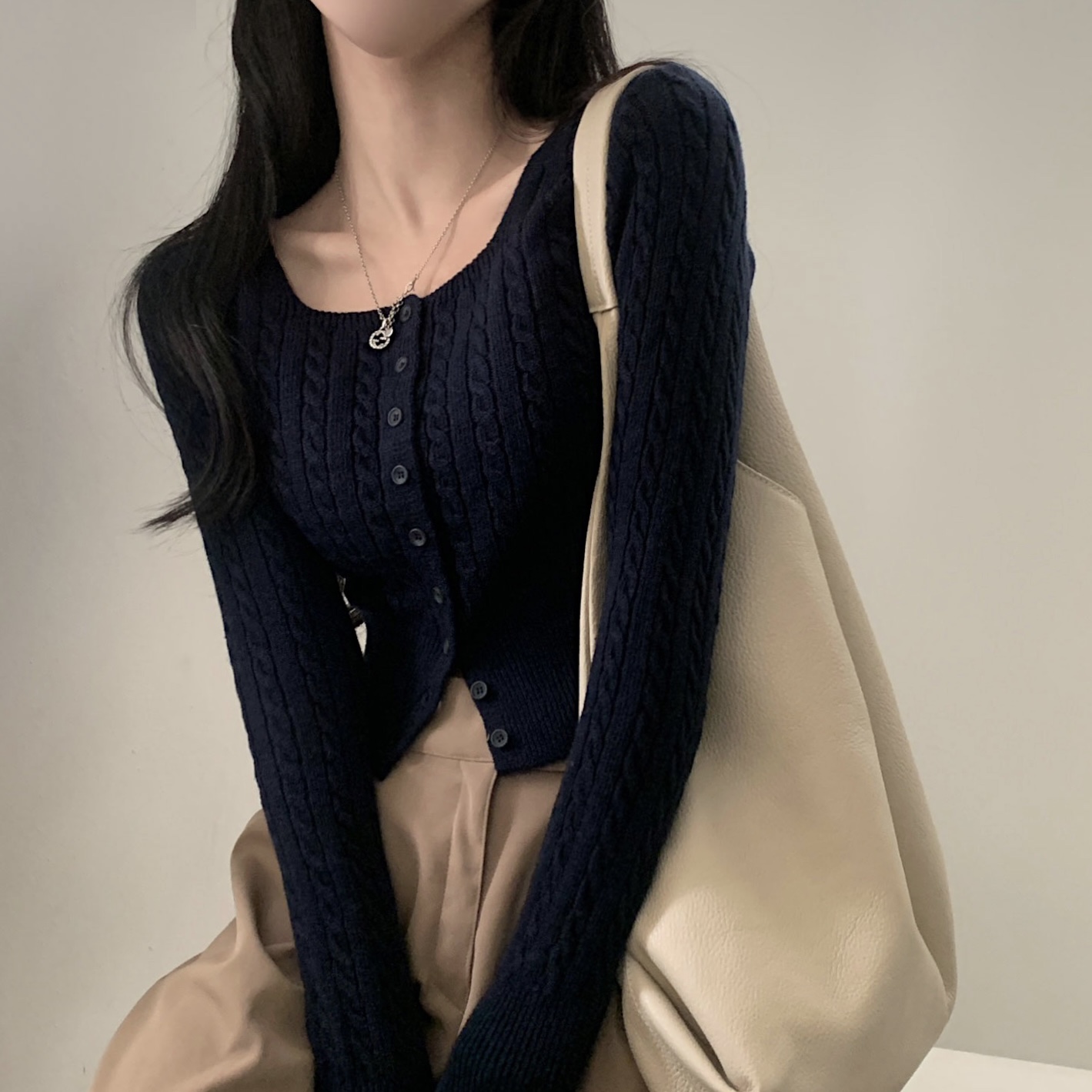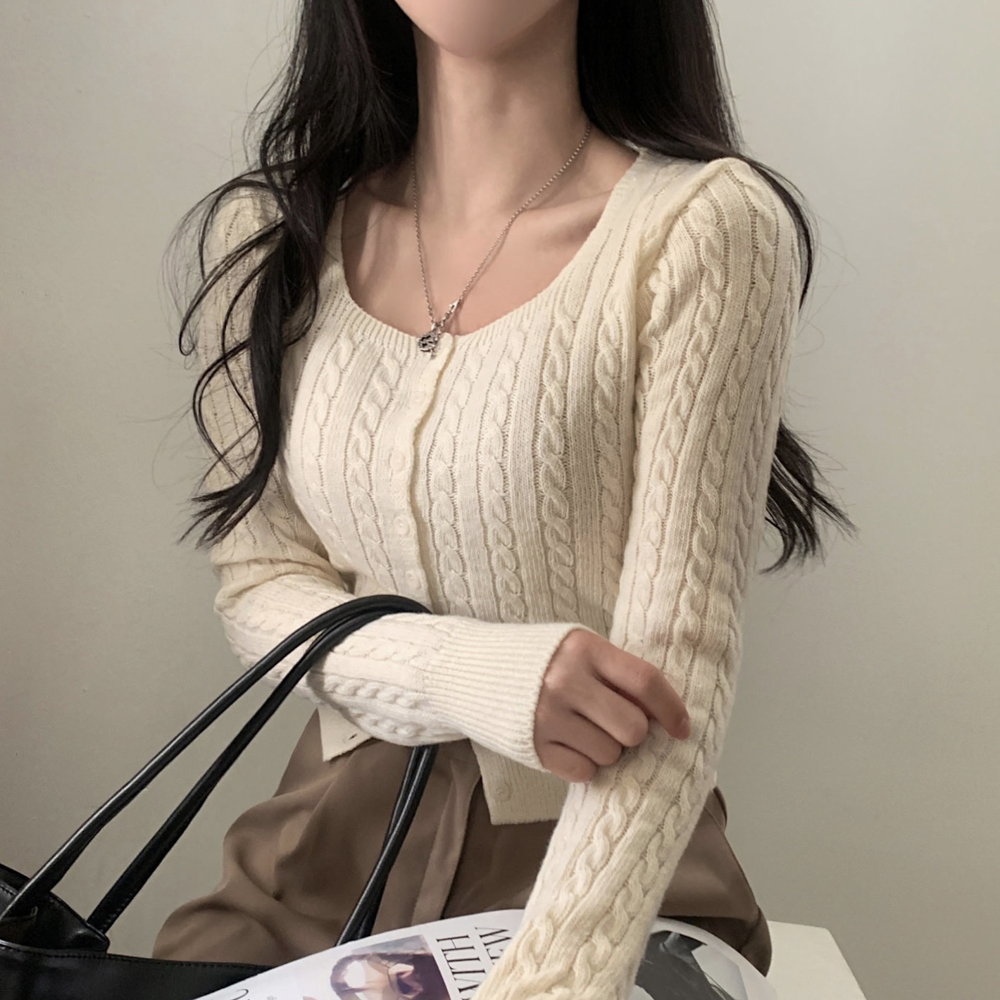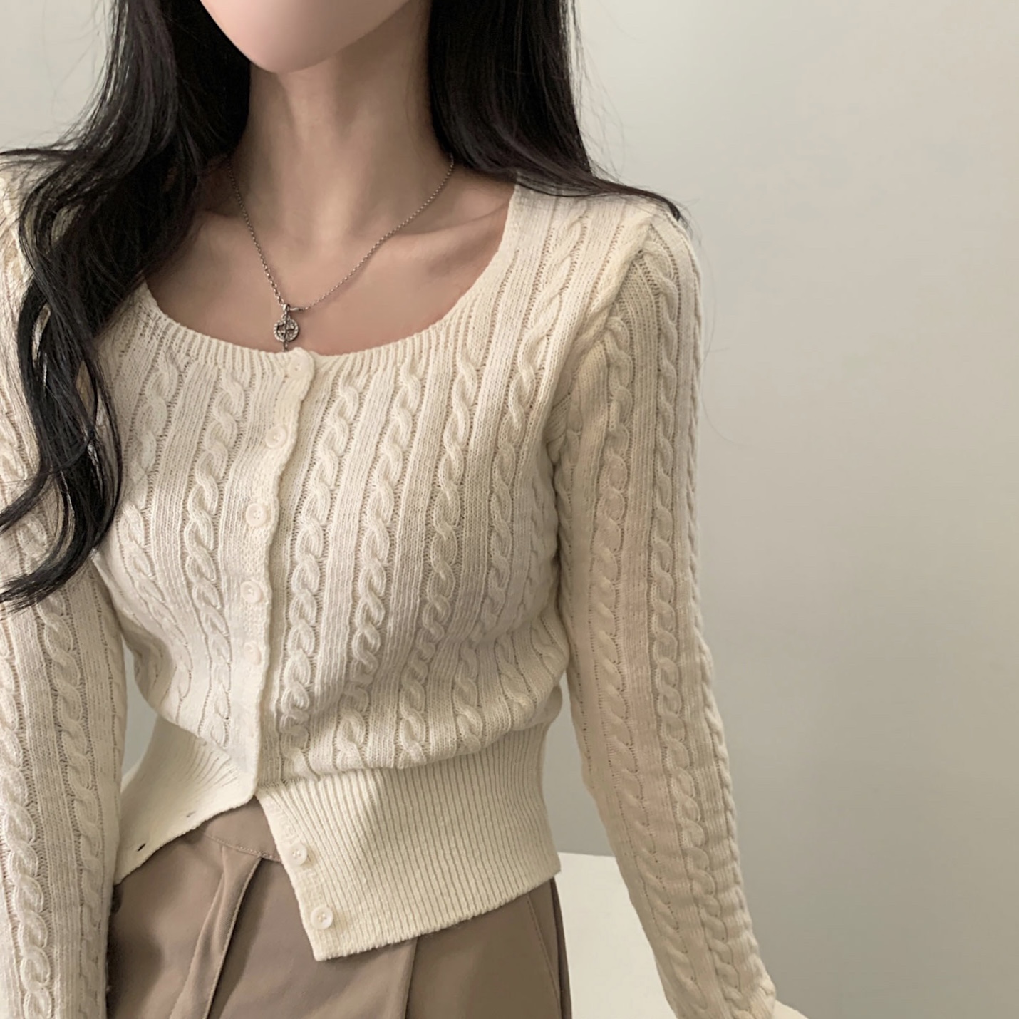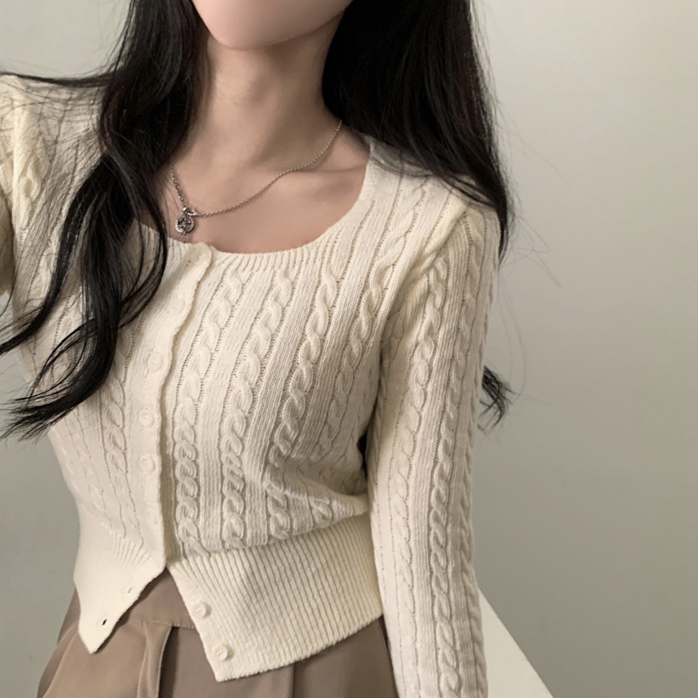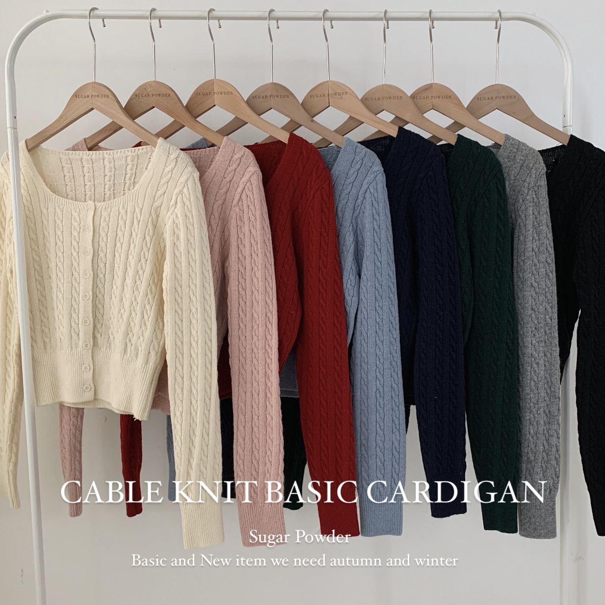 SGD16953 스퀘어넥 케이블 어텀 꽈배기 크롭 니트 가디건 8color