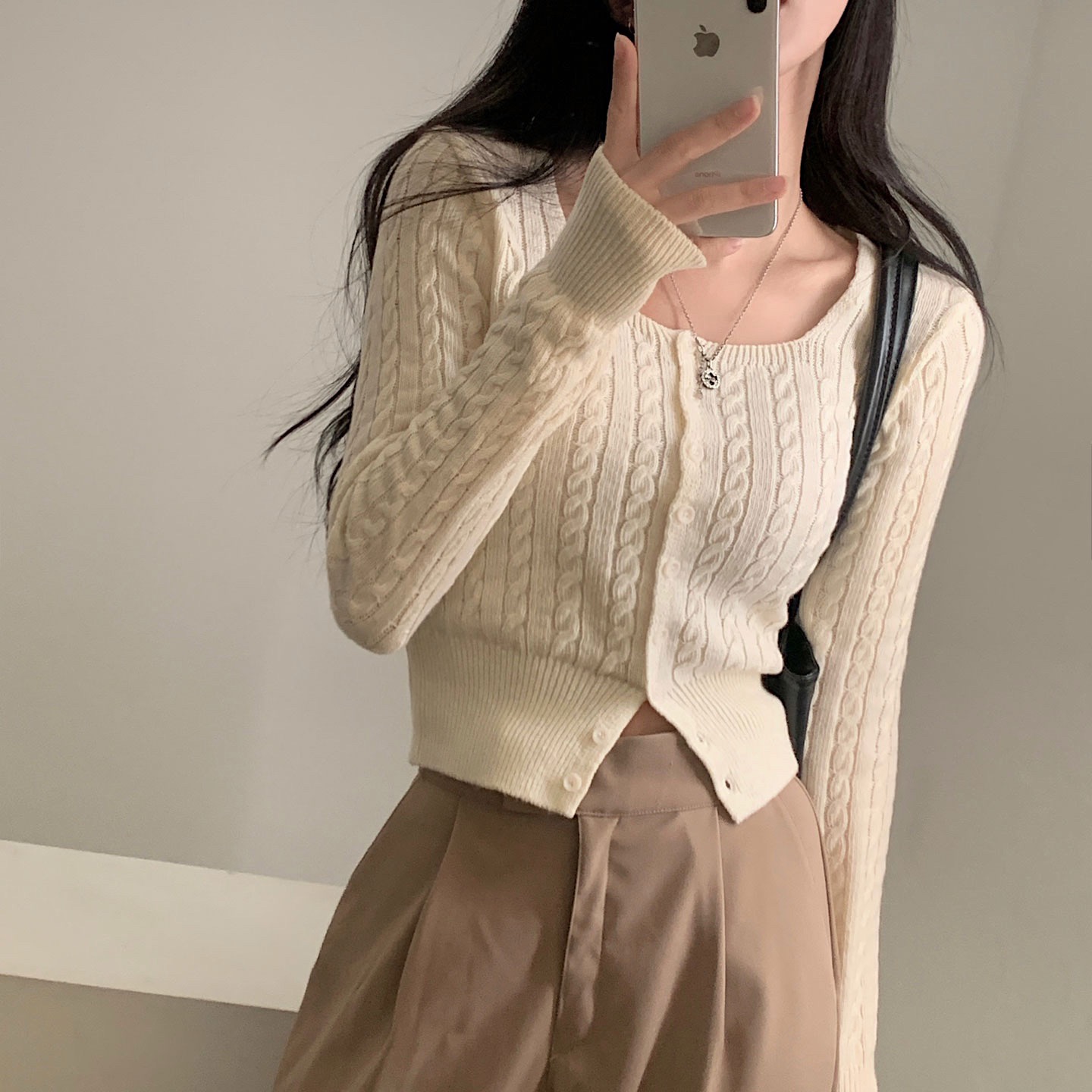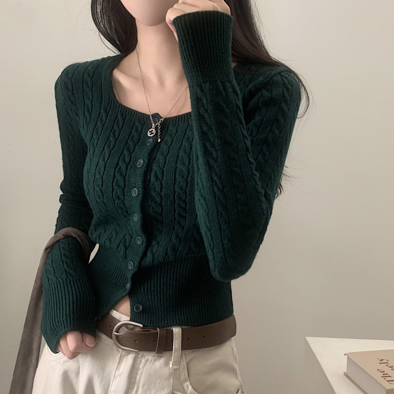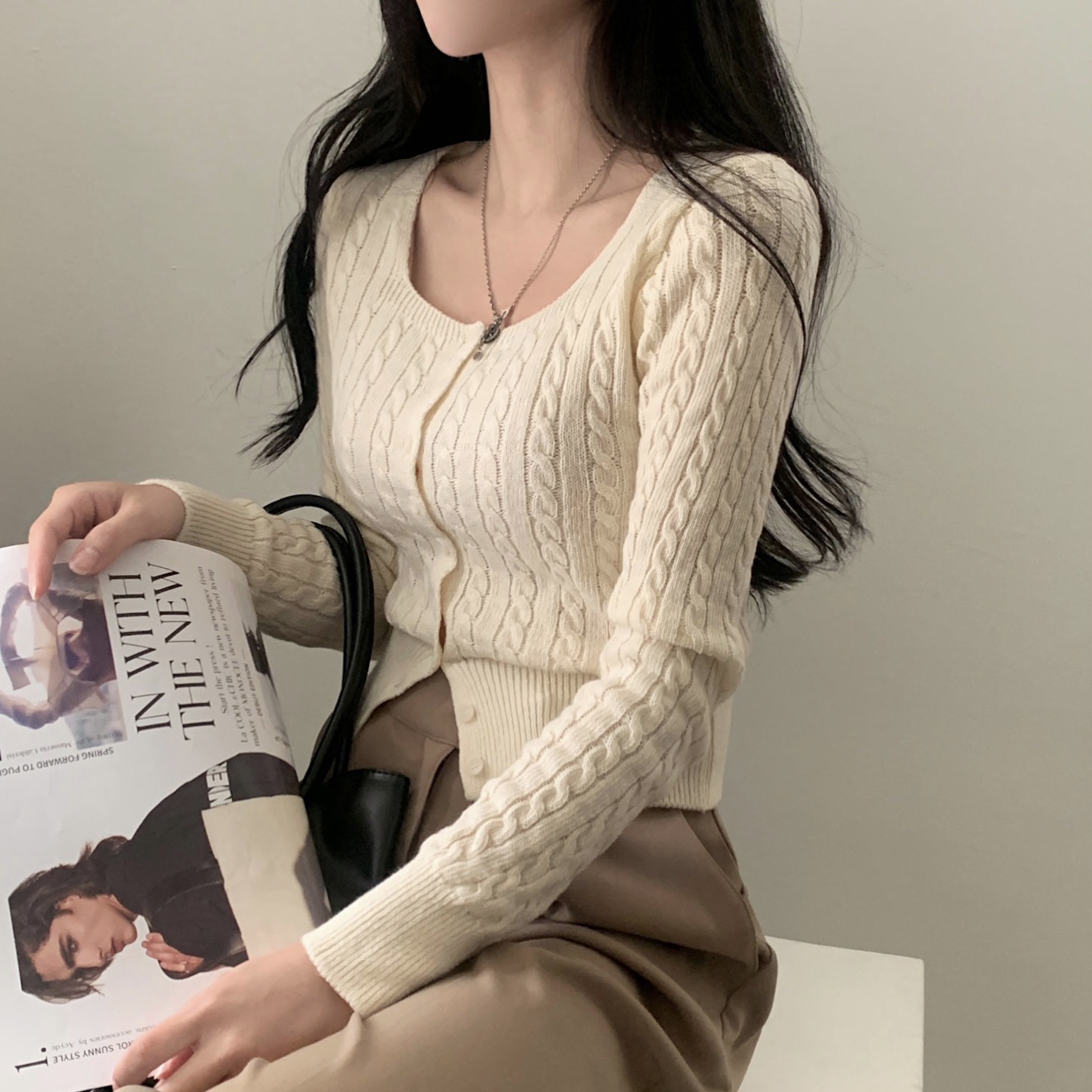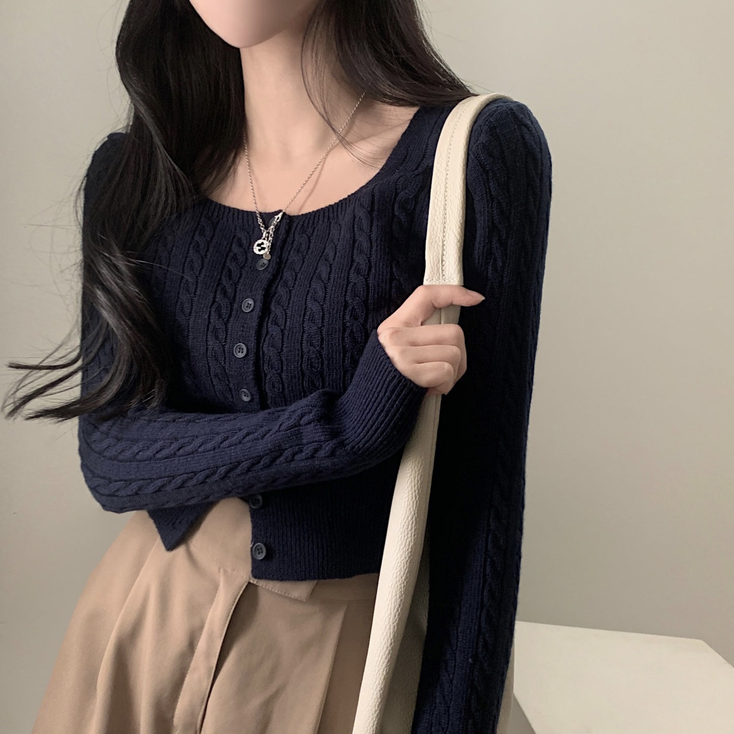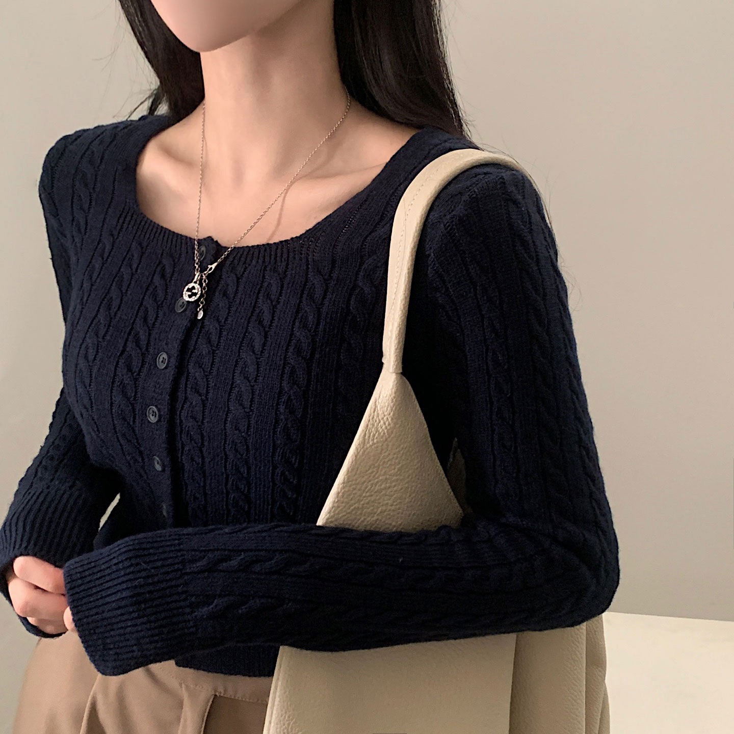 SGD16953 스퀘어넥 케이블 어텀 꽈배기 크롭 니트 가디건 8color