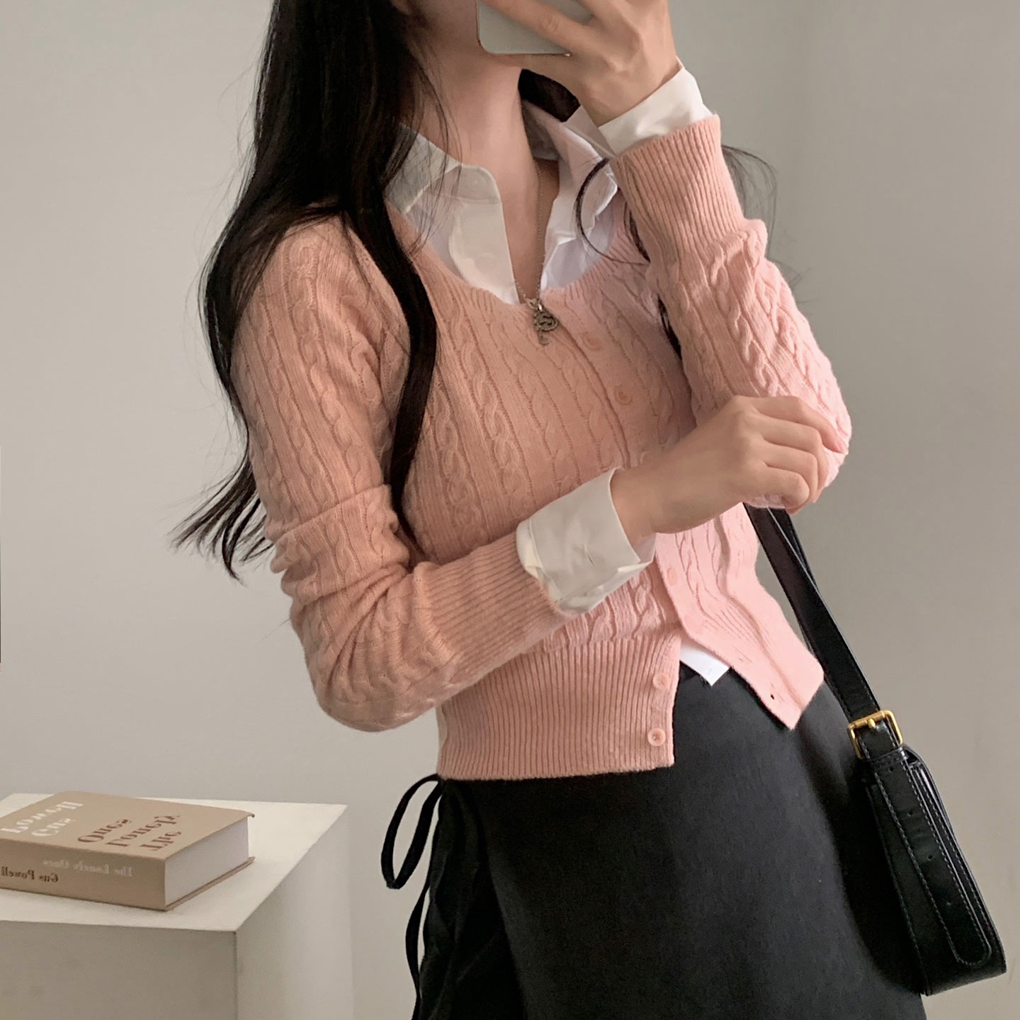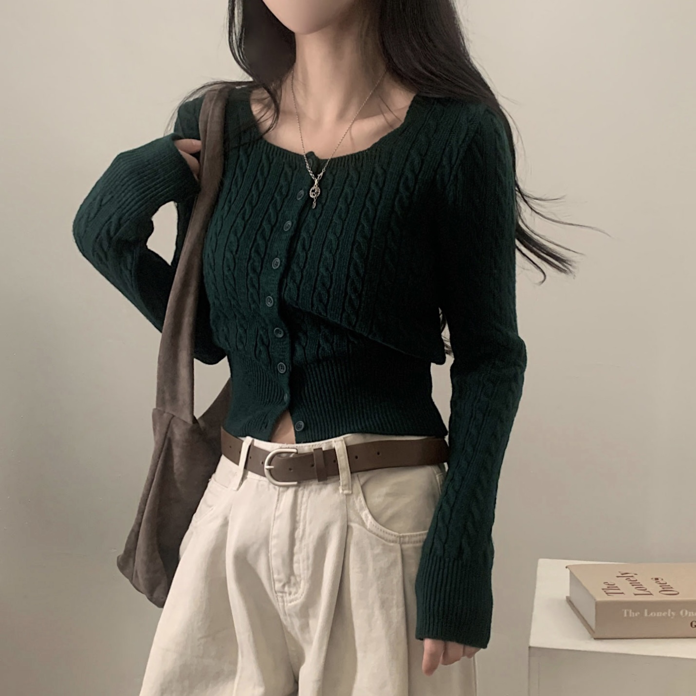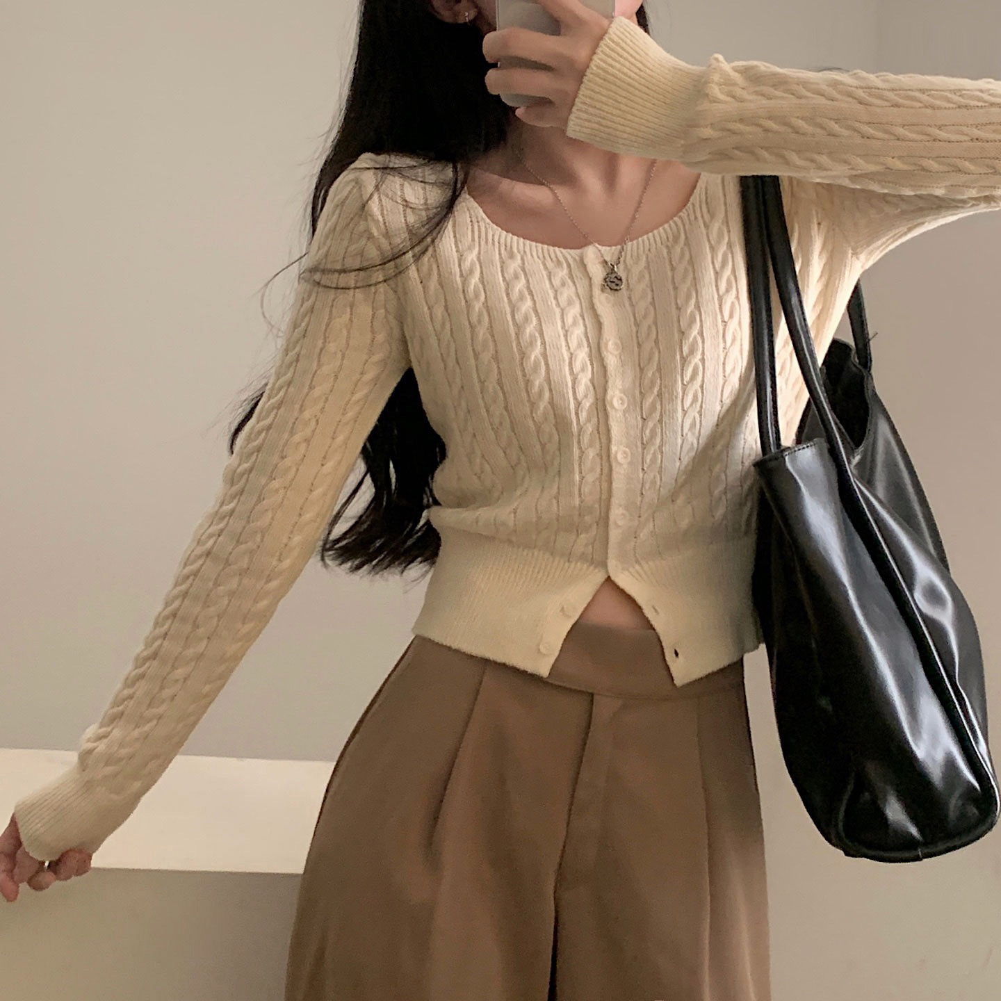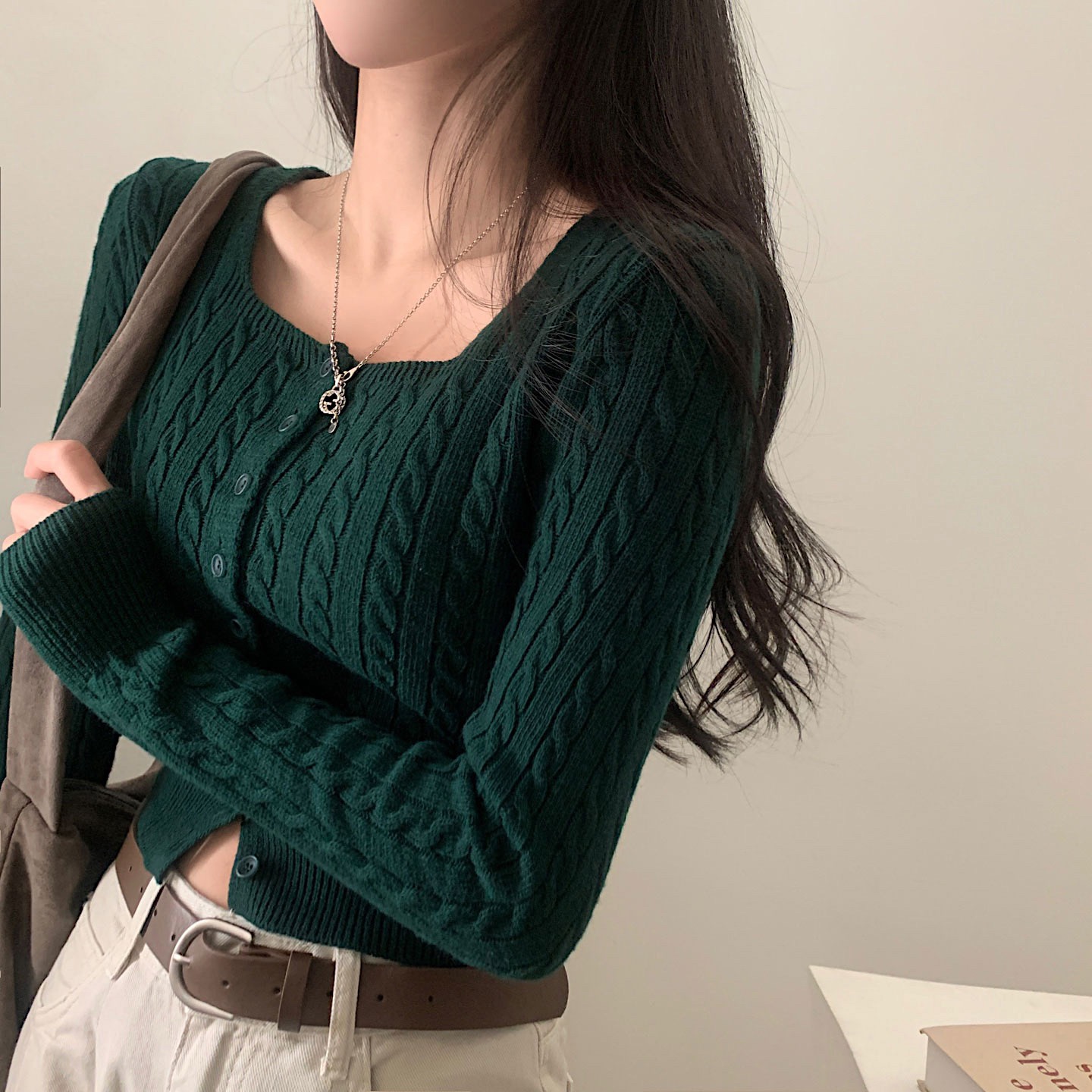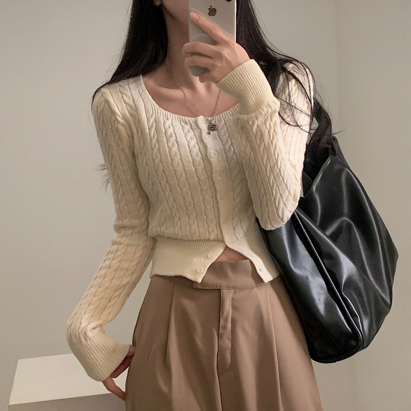 SGD16953 스퀘어넥 케이블 어텀 꽈배기 크롭 니트 가디건 8color