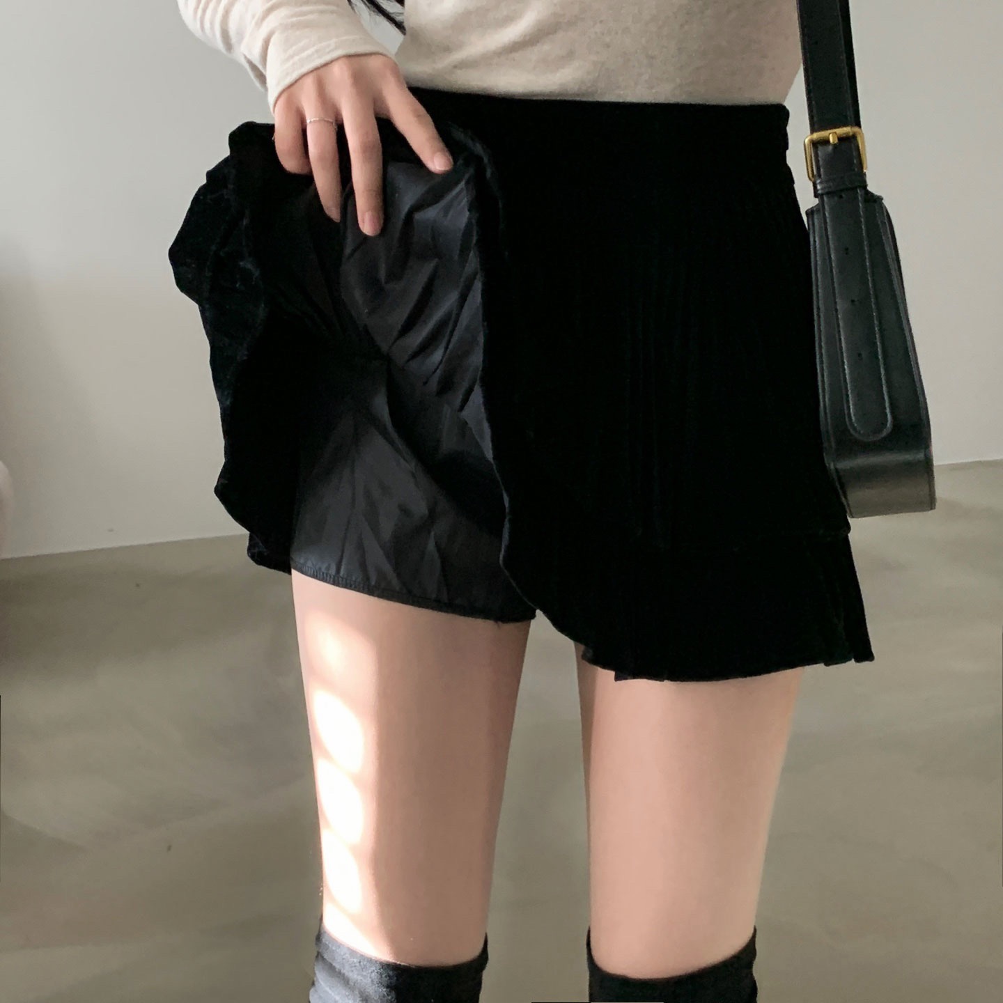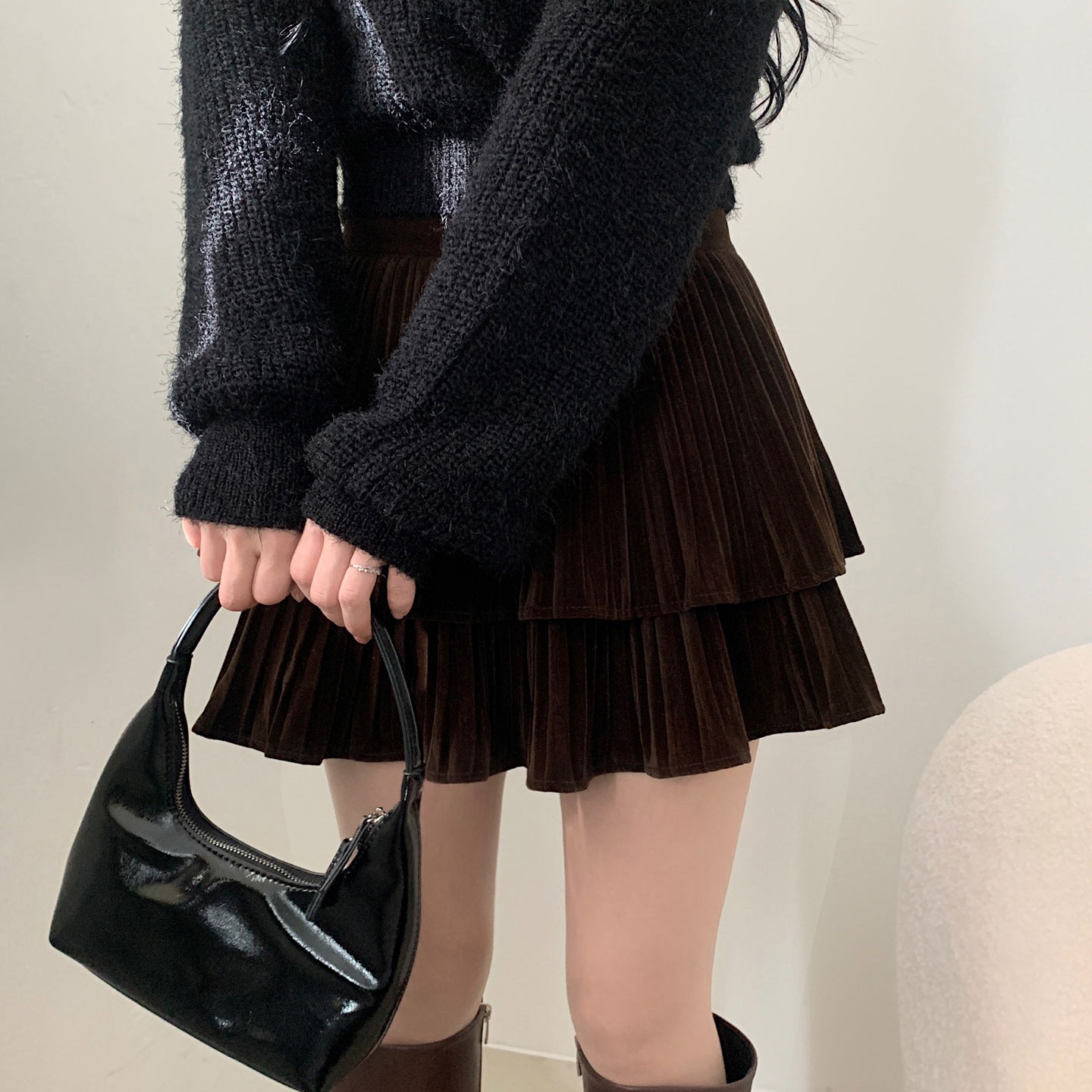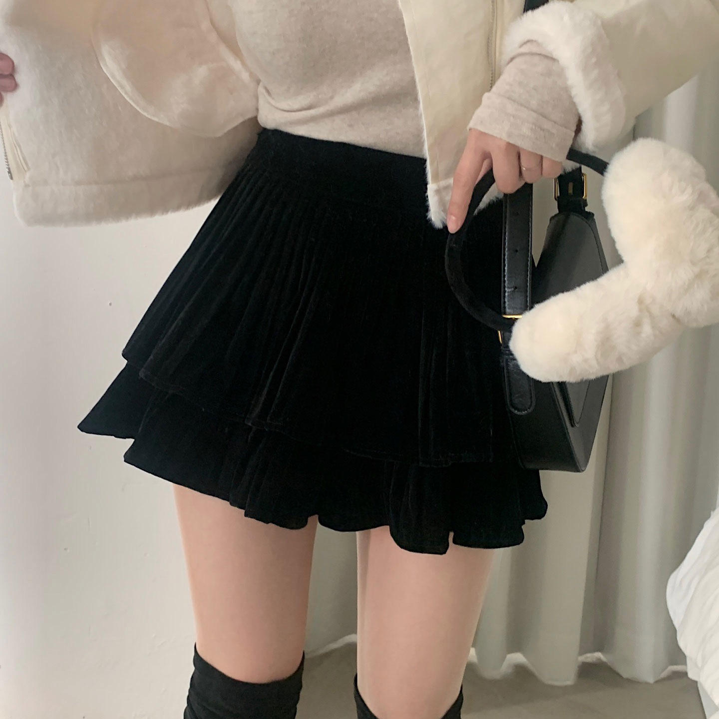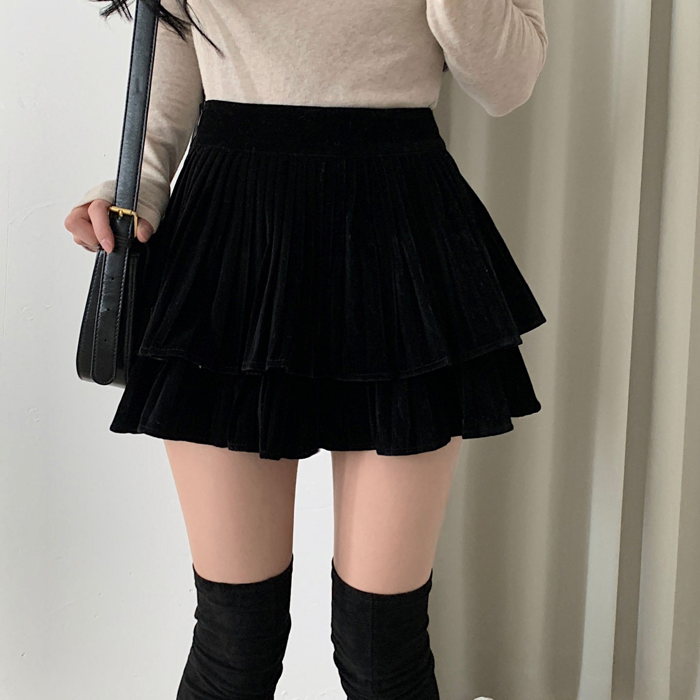 SSK14403 피어나 연말룩 벨벳 플리츠 캉캉 미니 스커트 2color