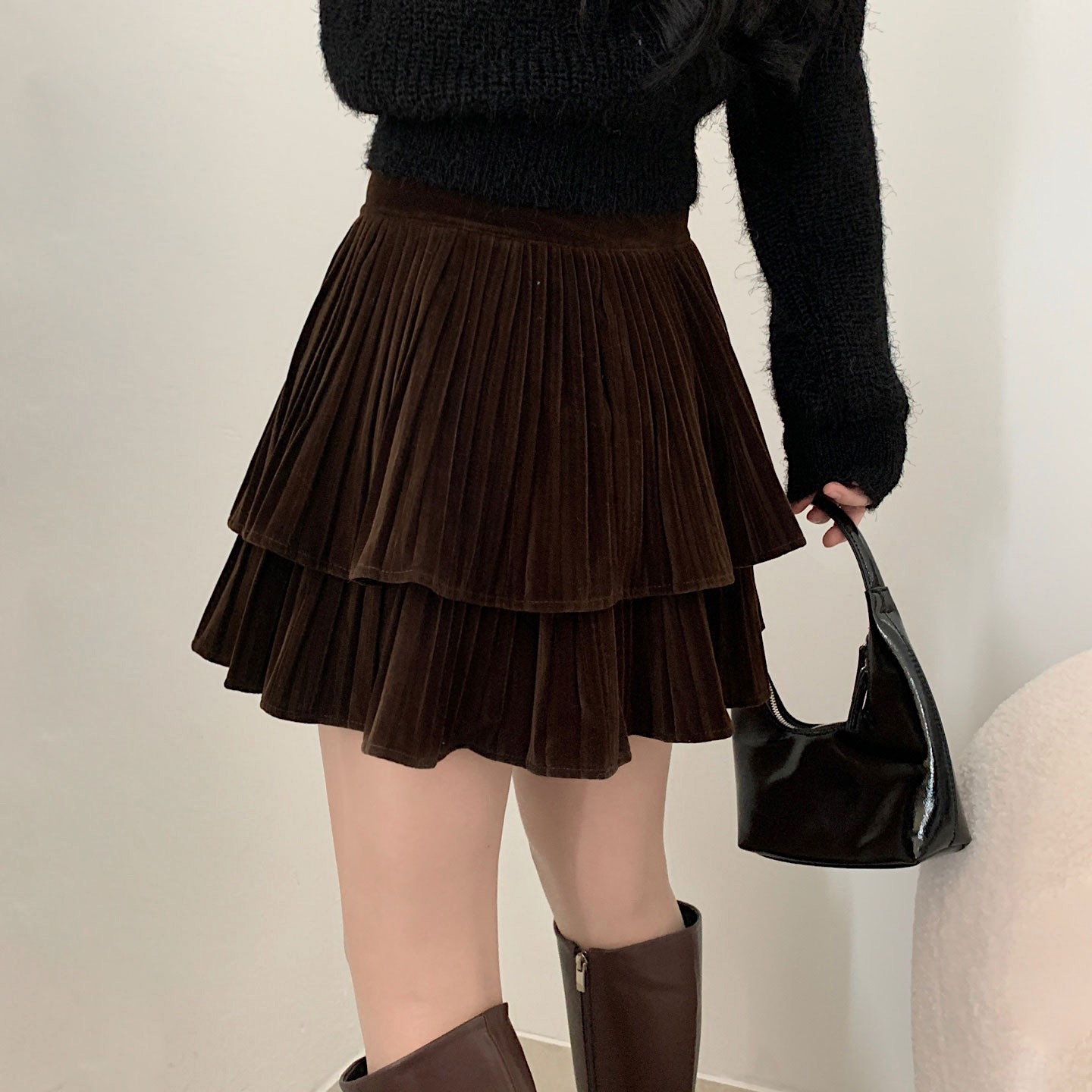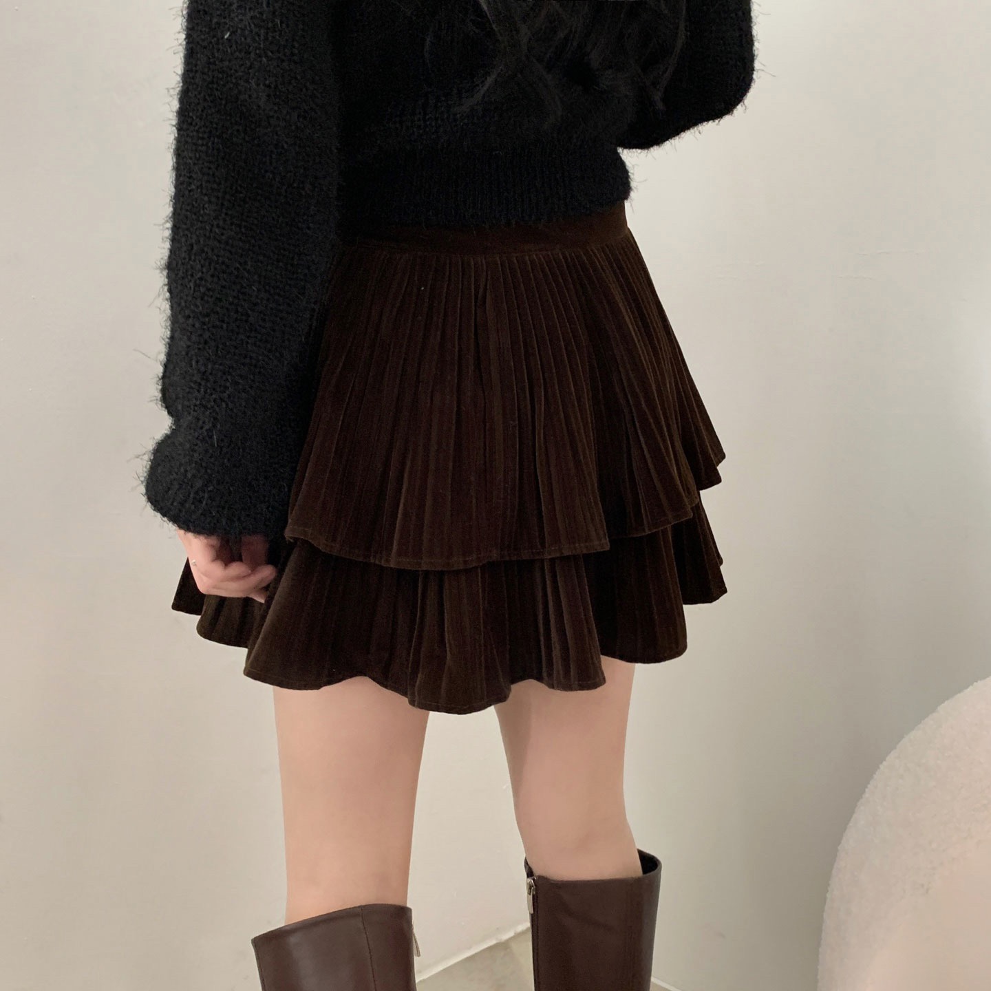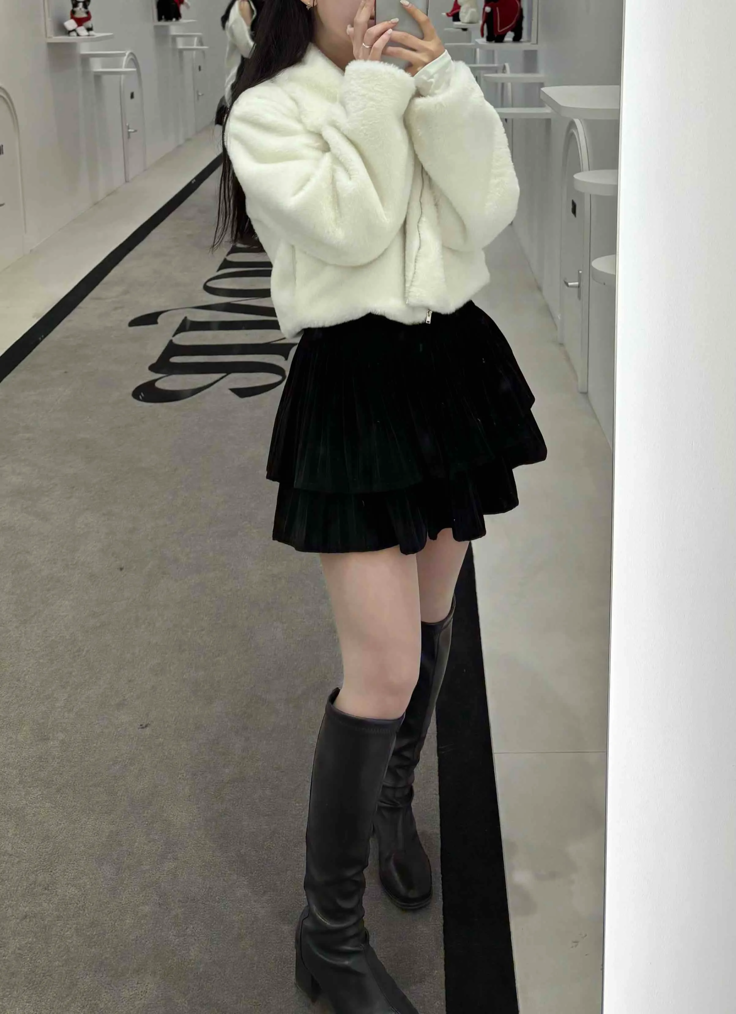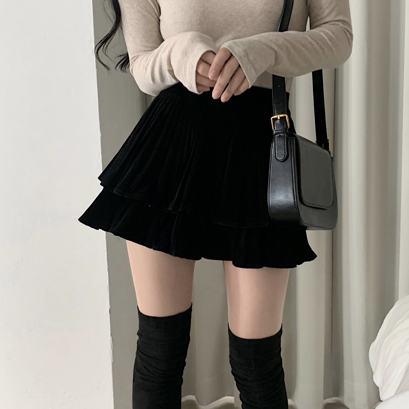 SSK14403 피어나 연말룩 벨벳 플리츠 캉캉 미니 스커트 2color