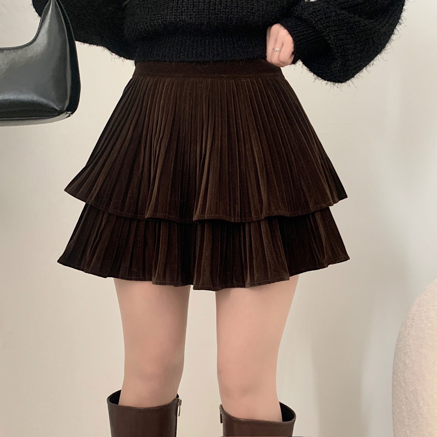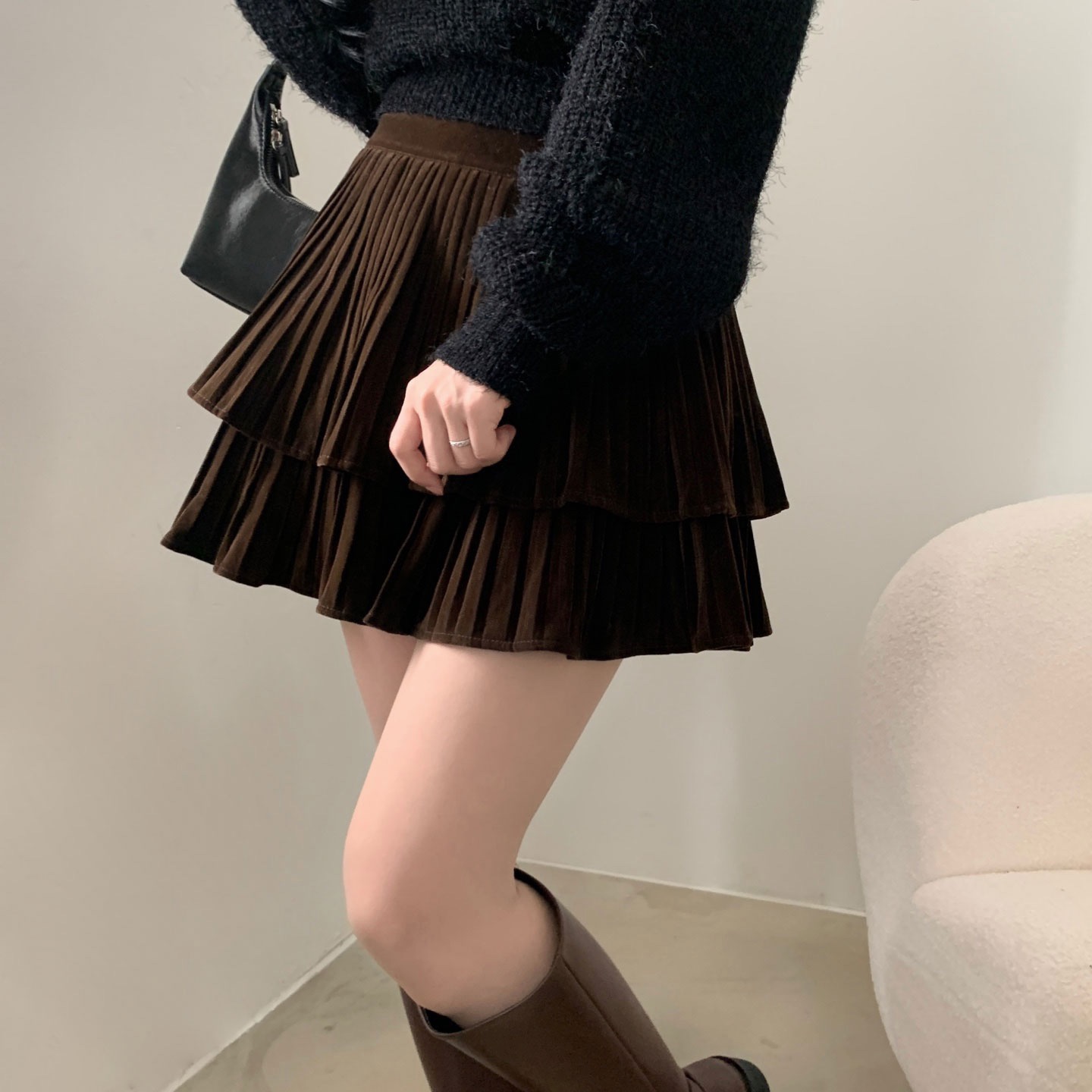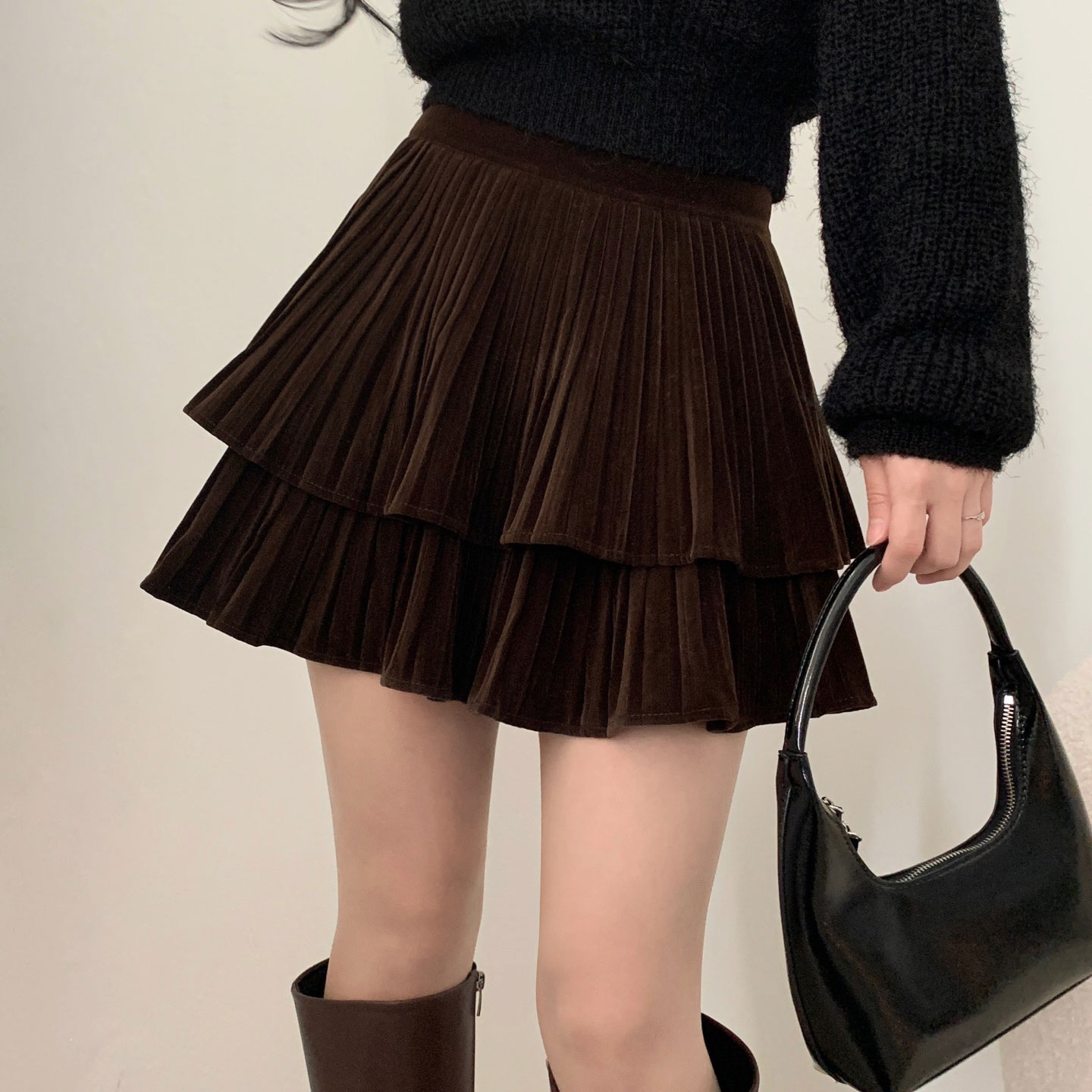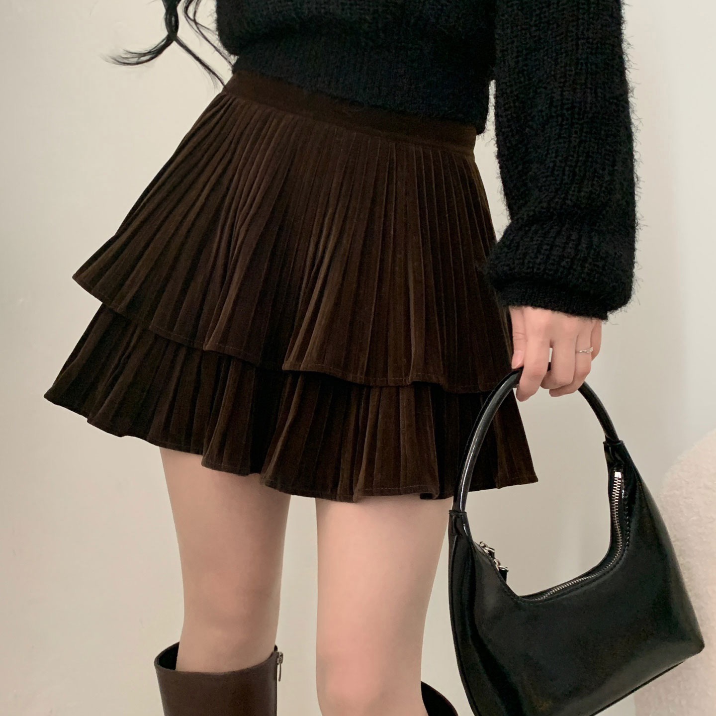 SSK14403 피어나 연말룩 벨벳 플리츠 캉캉 미니 스커트 2color