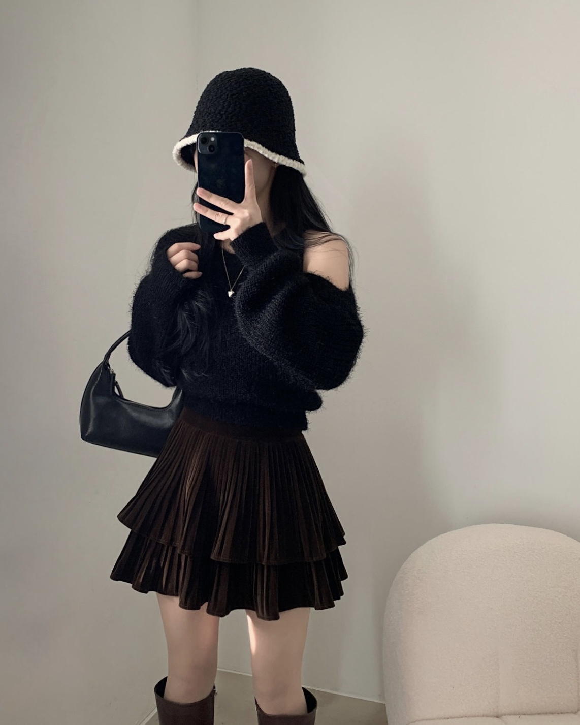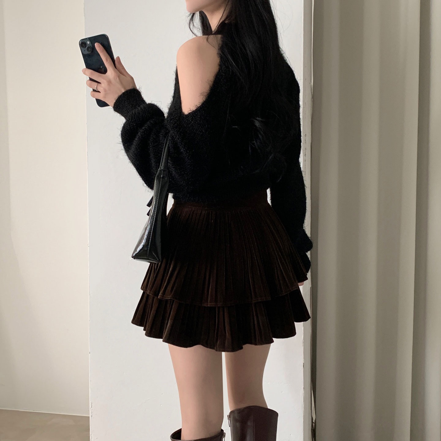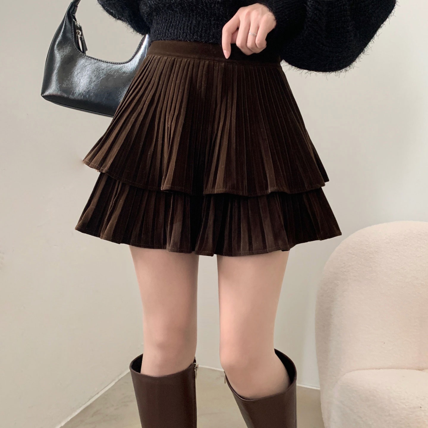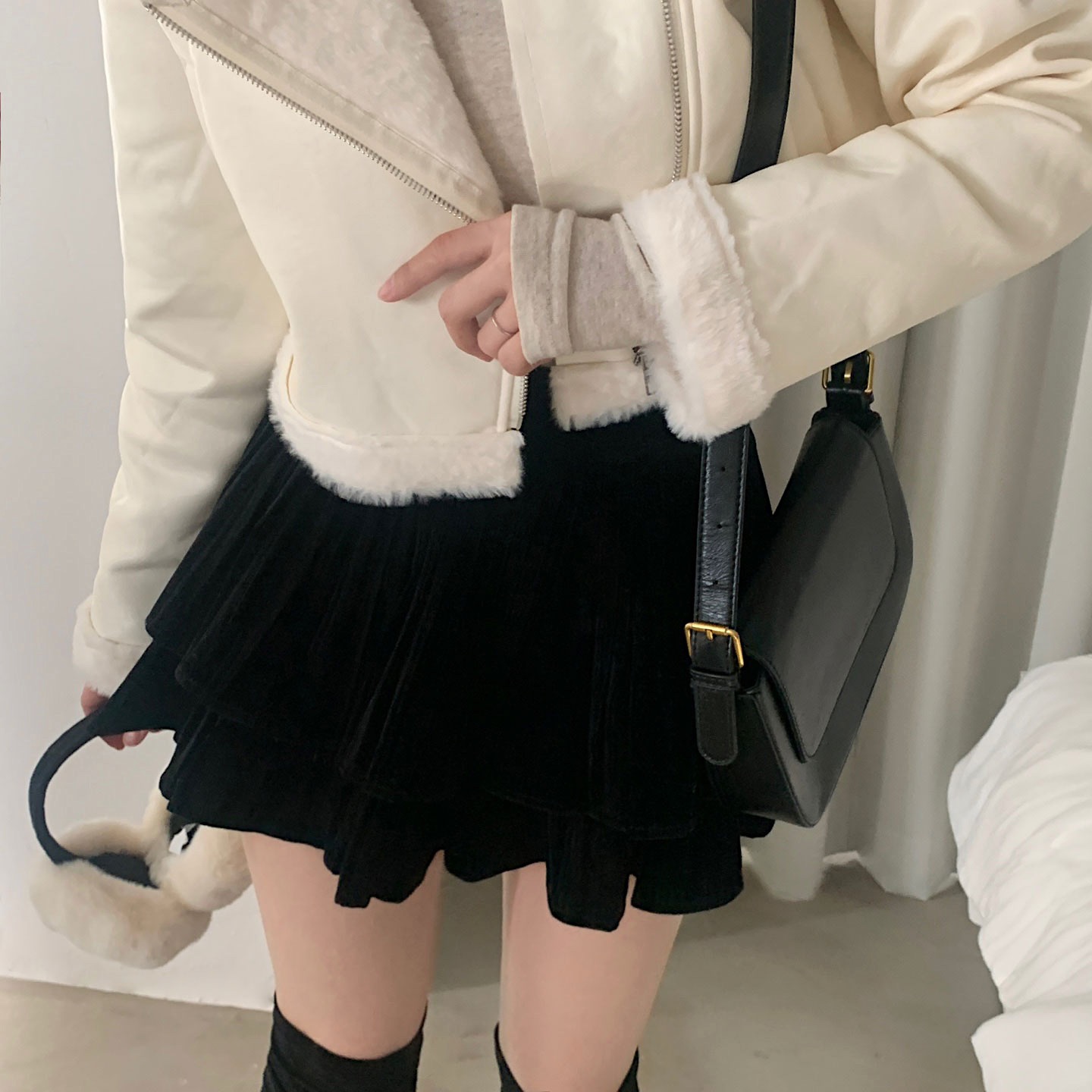 SSK14403 피어나 연말룩 벨벳 플리츠 캉캉 미니 스커트 2color