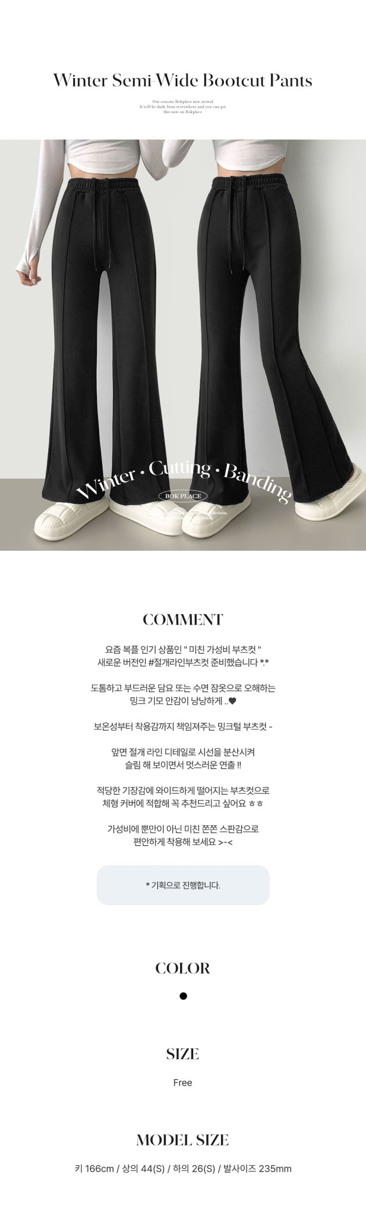 STR2757 절개라인 가성비 밍크 융털 기모 세미 부츠컷 블랙 밴딩팬츠