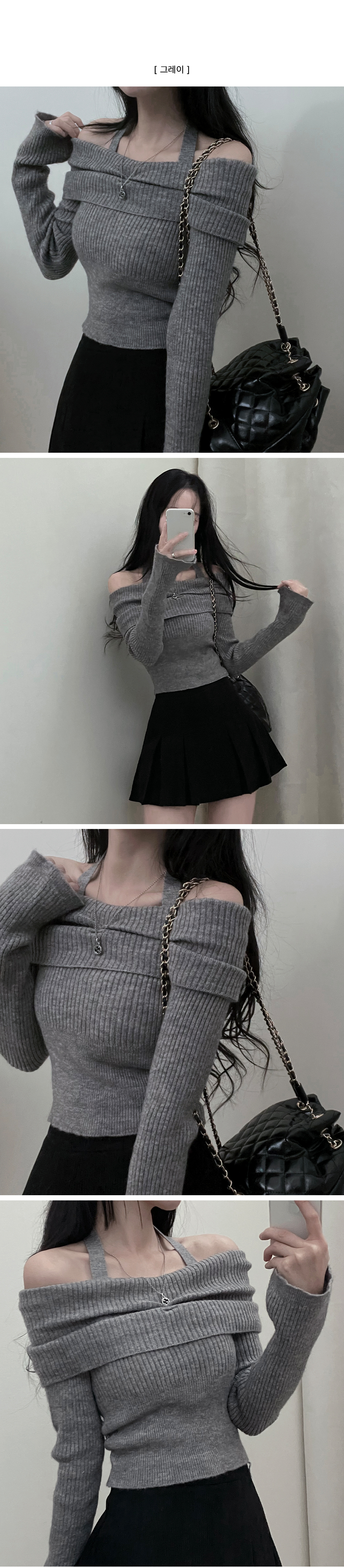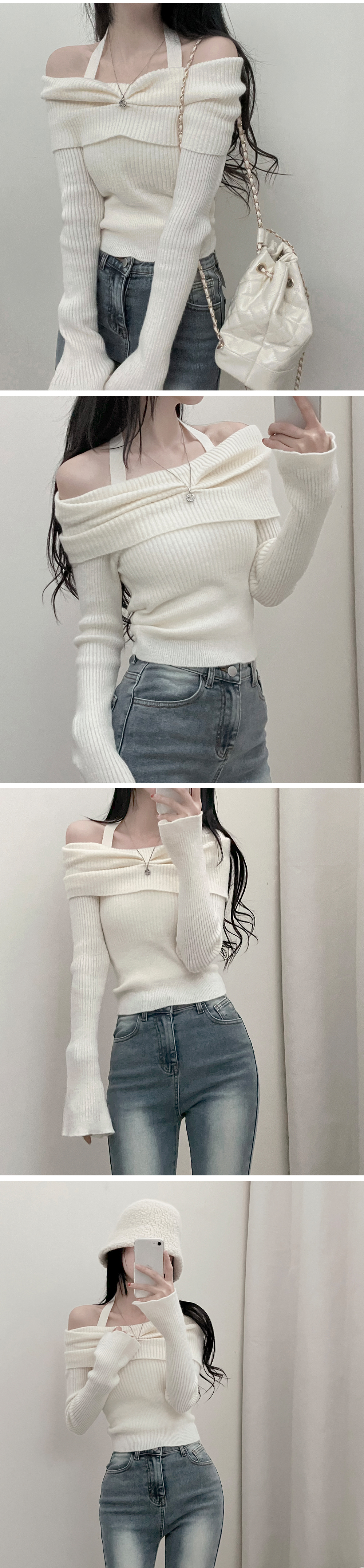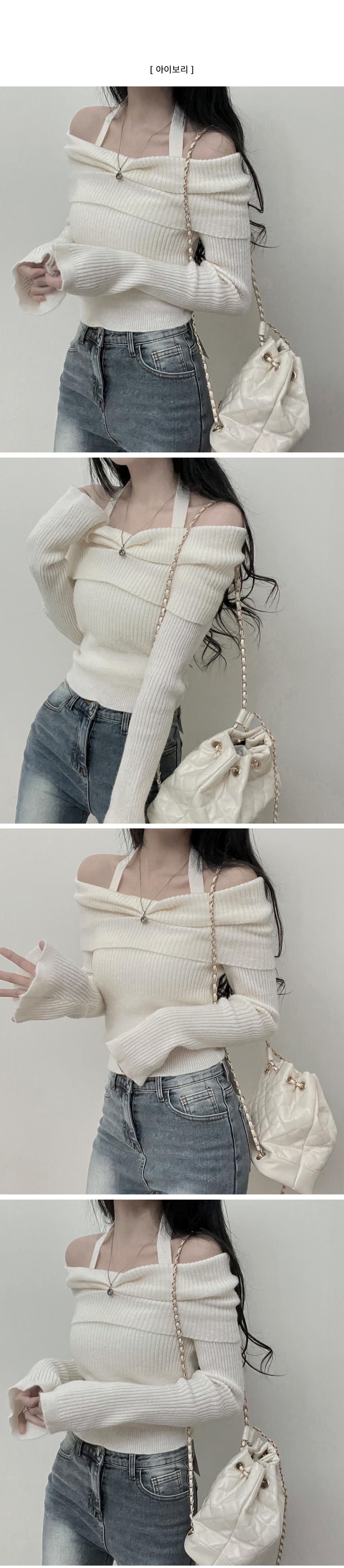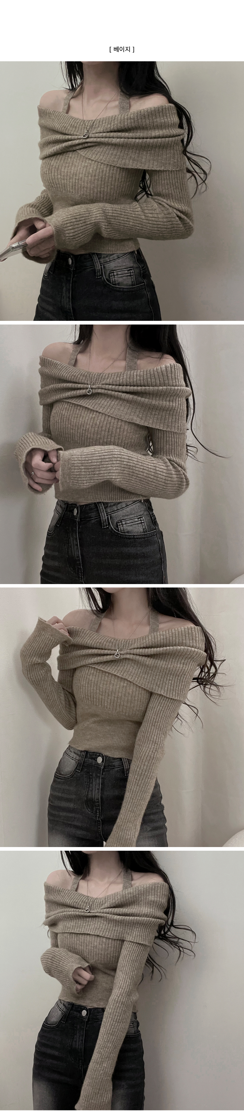 SNT19987 벨리셔링골지홀터오프숄더니트