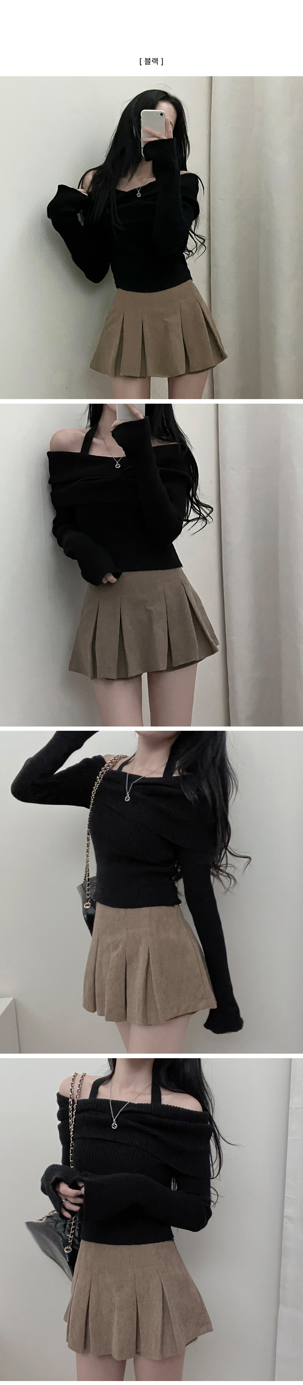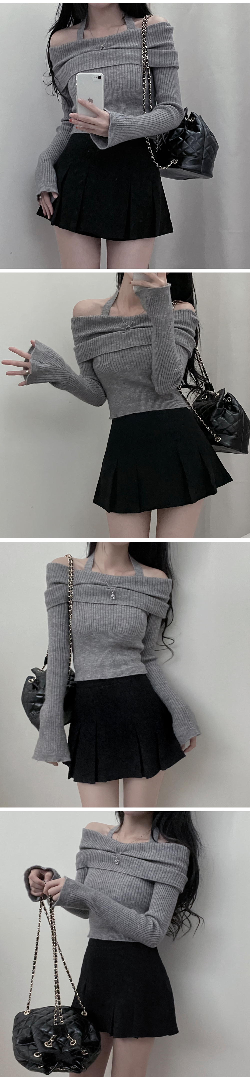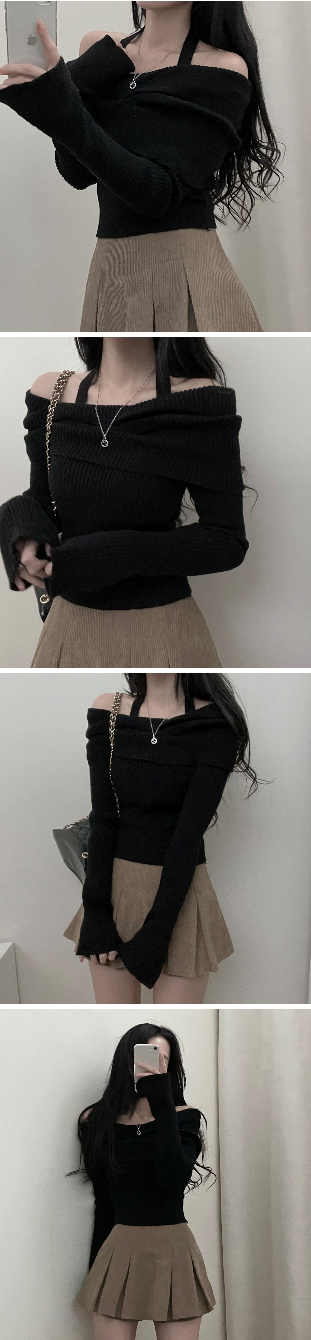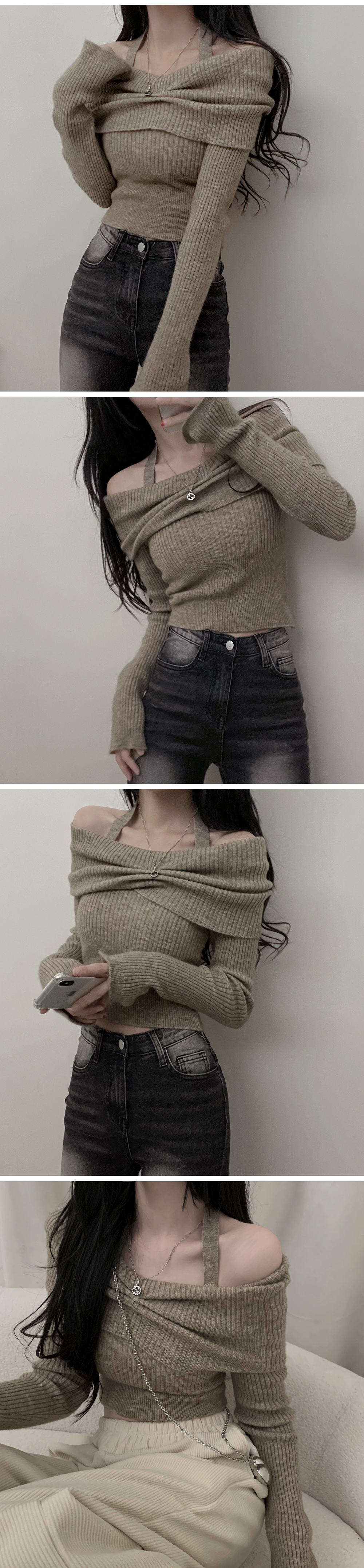 SNT19987 벨리셔링골지홀터오프숄더니트