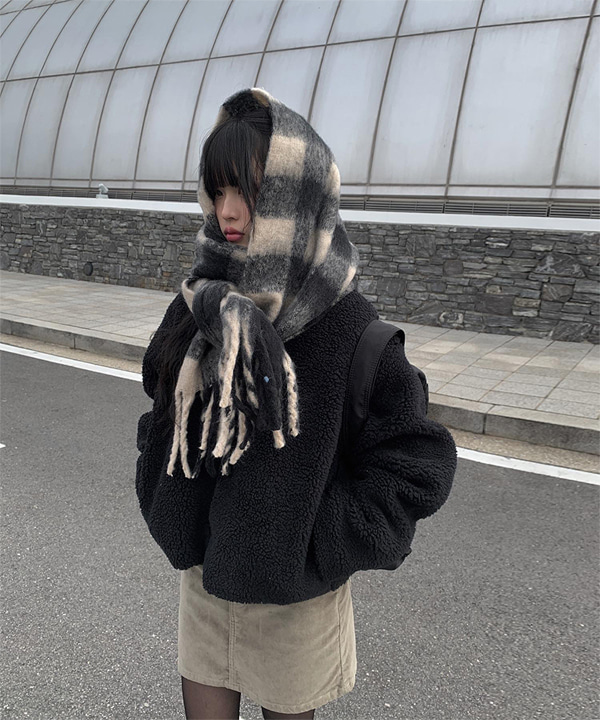 SAC3978 더브 체크 도톰 머플러