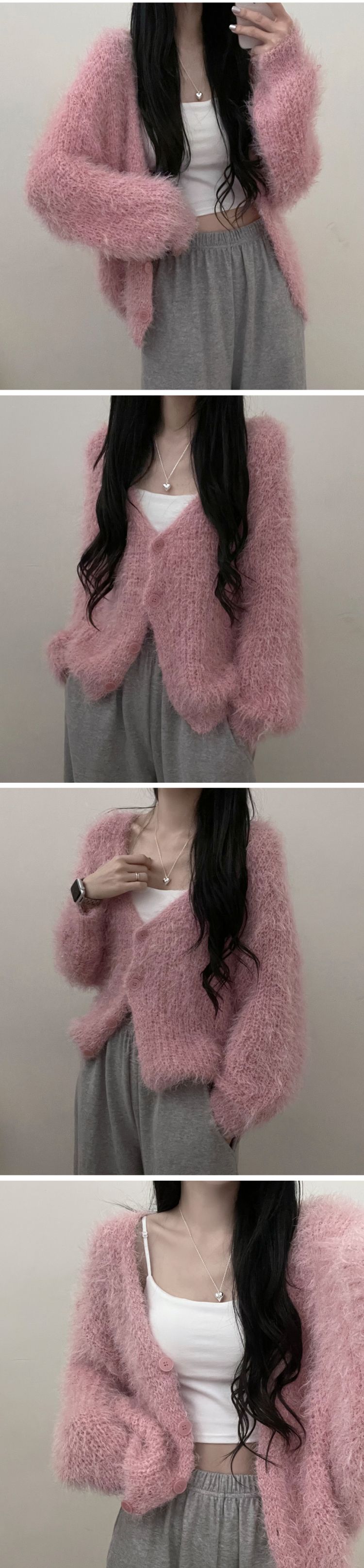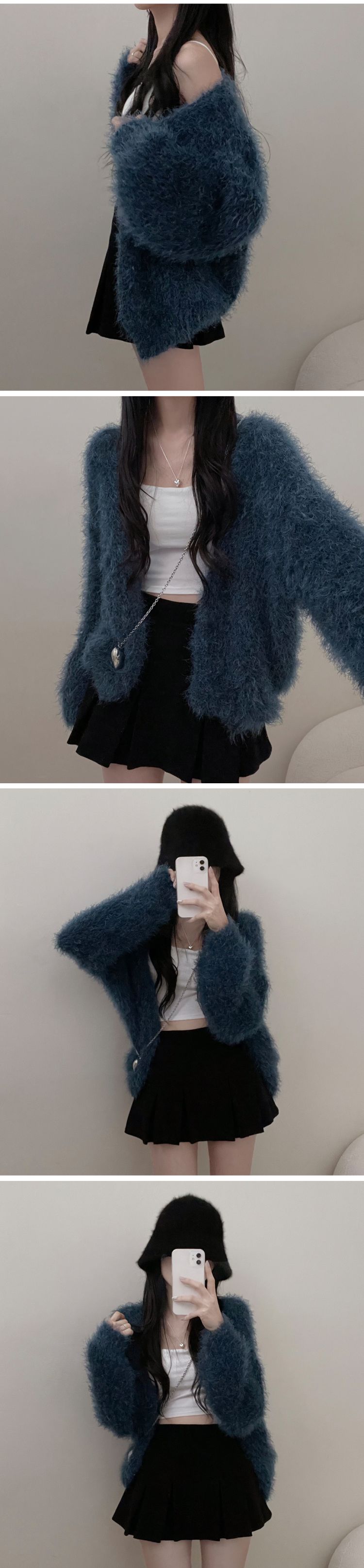 SGD18340 샤인앙고라퍼브이넥루즈핏니트가디건