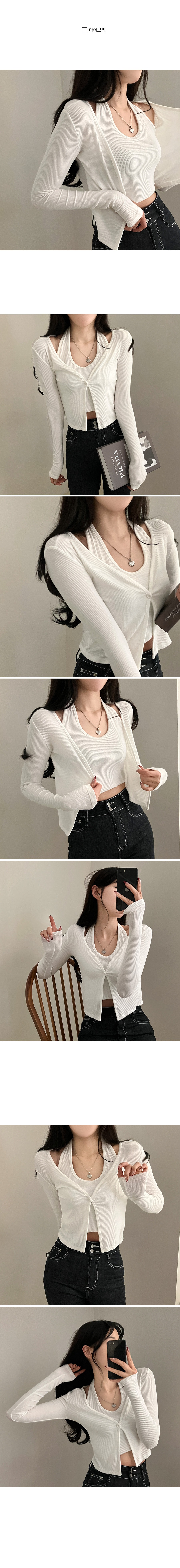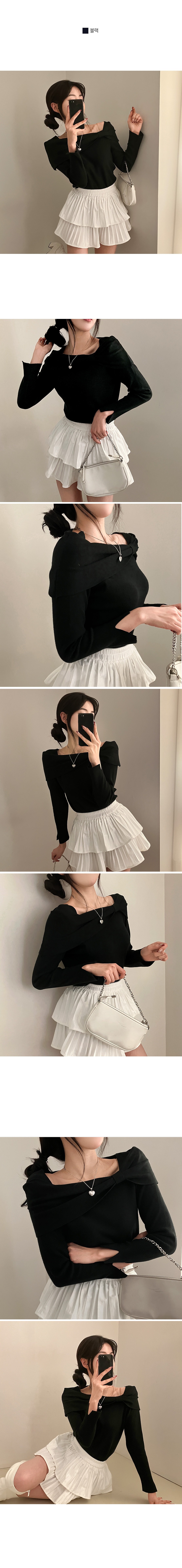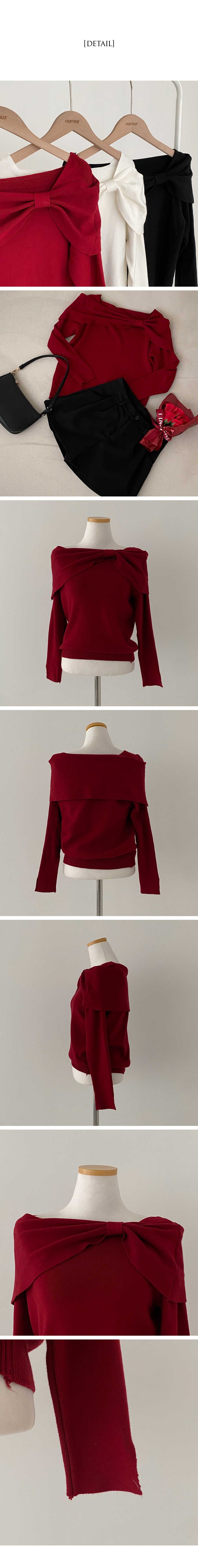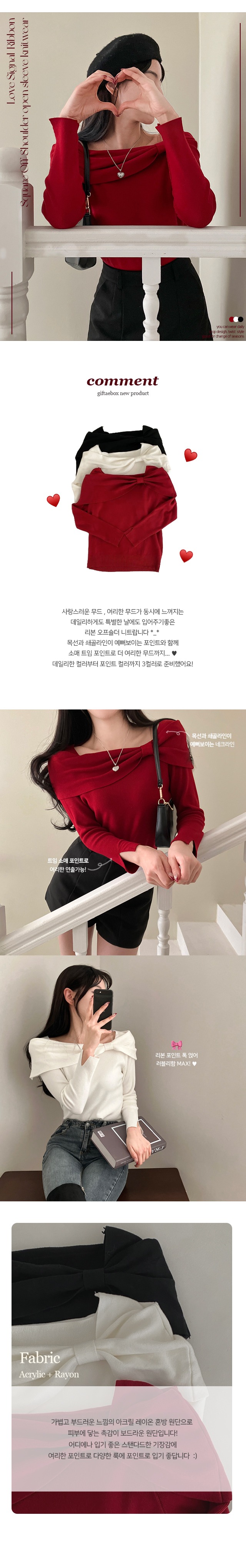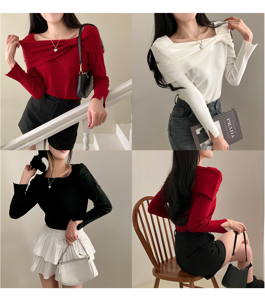 SNT21380 러브시그널 리본 스퀘어 오프숄더 소매 트임 긴팔 니트
