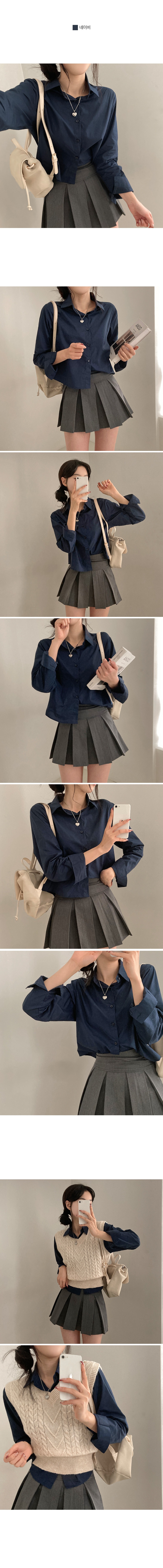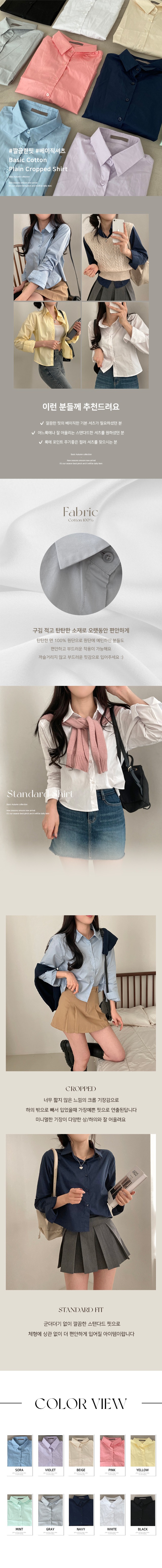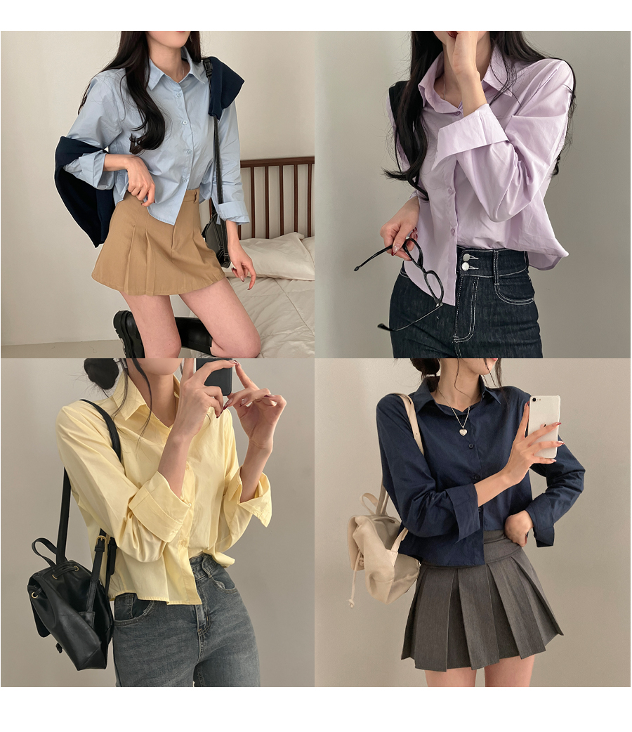 SBS16773 셔츠정석 베이직 코튼 무지 긴팔 크롭 셔츠 남방