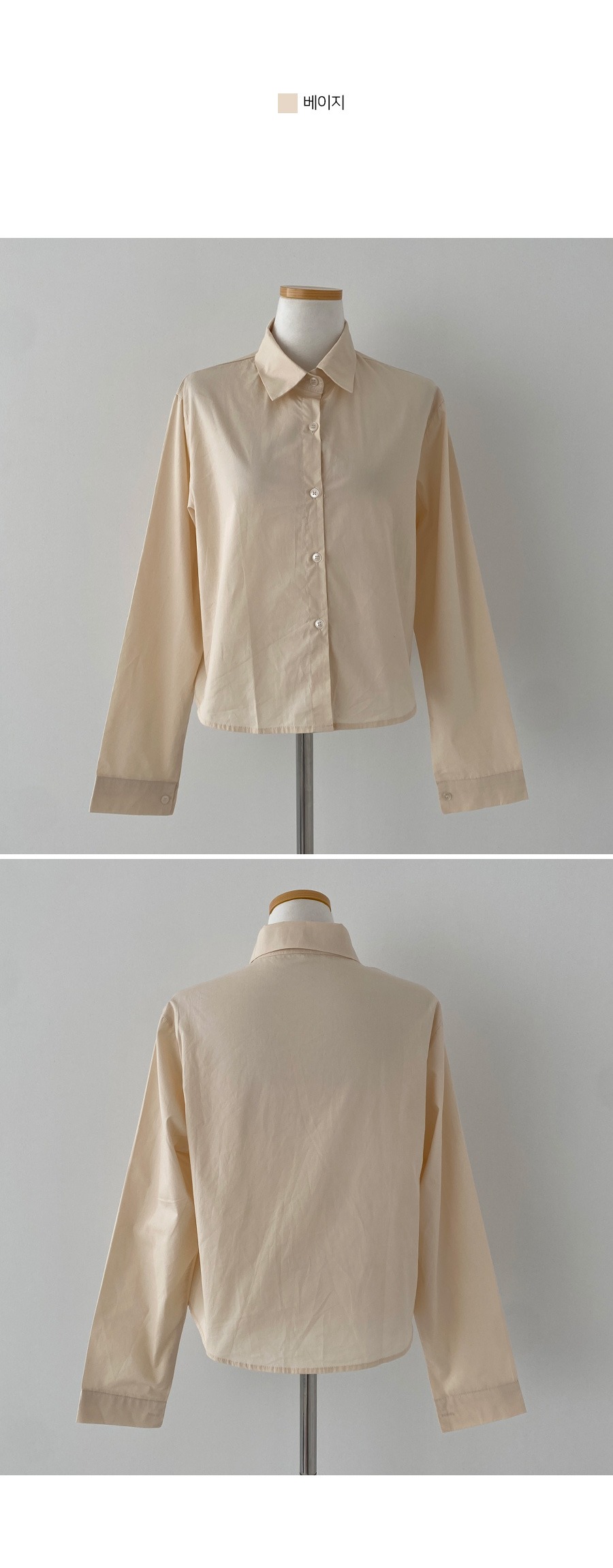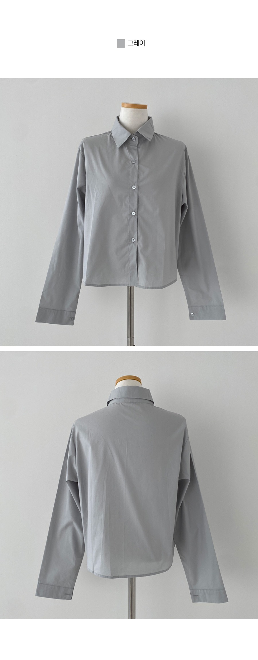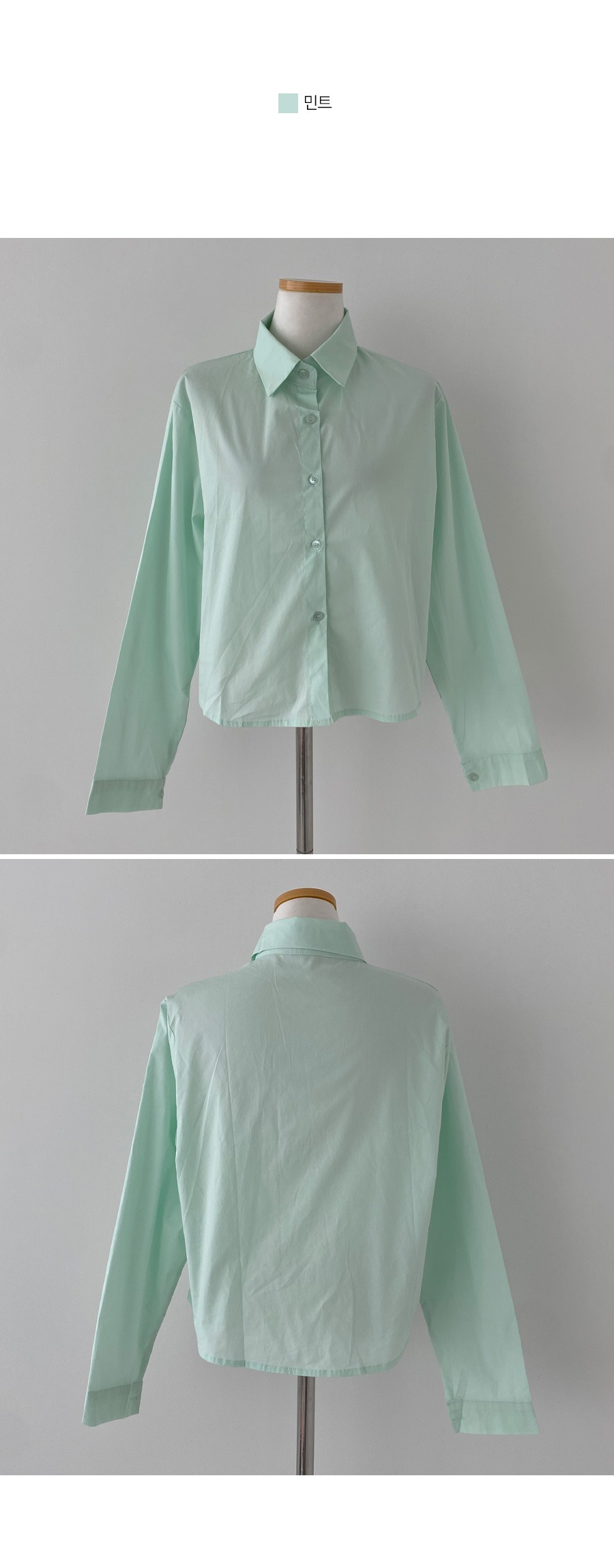 SBS16773 셔츠정석 베이직 코튼 무지 긴팔 크롭 셔츠 남방