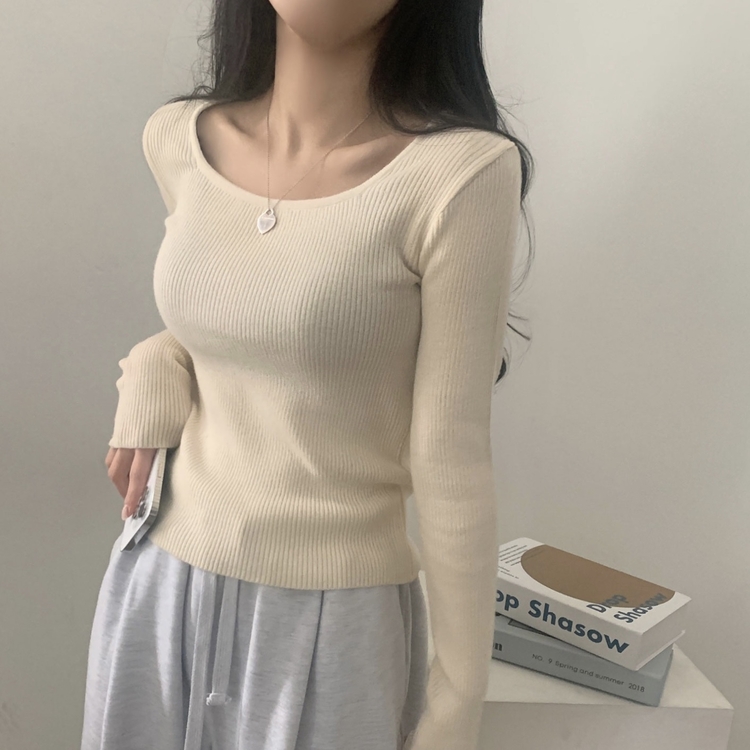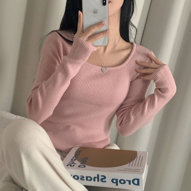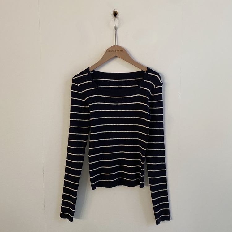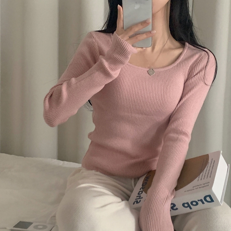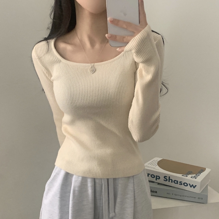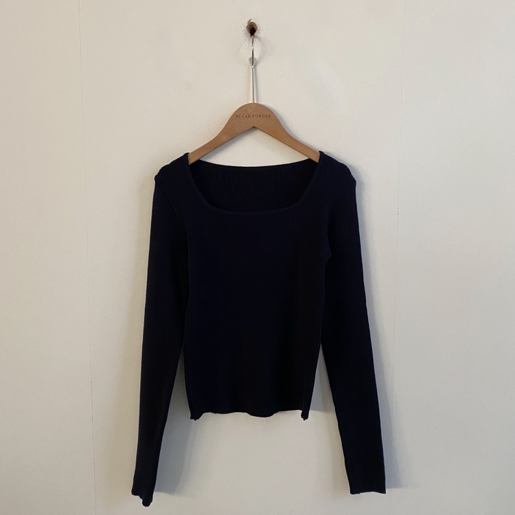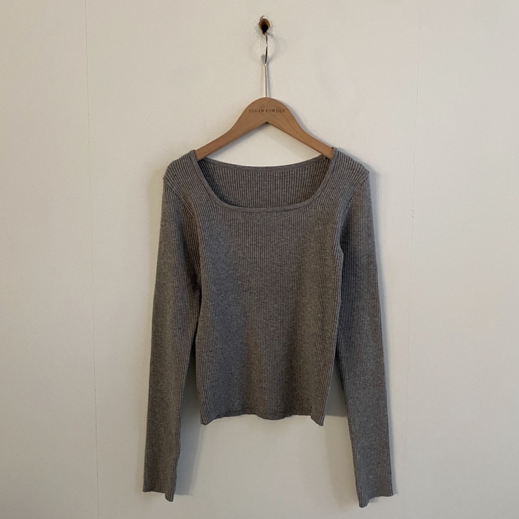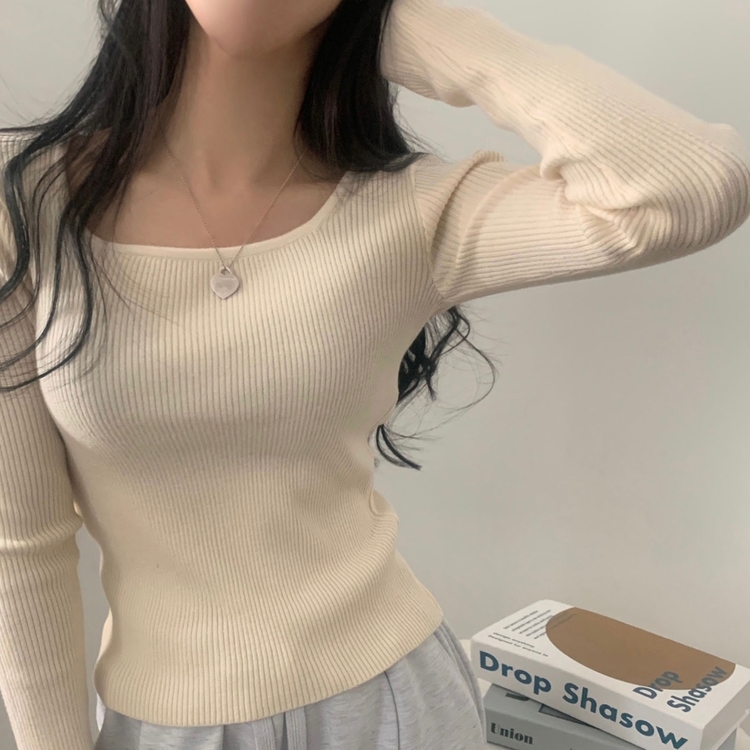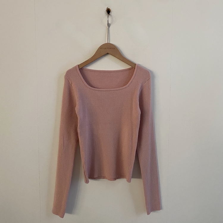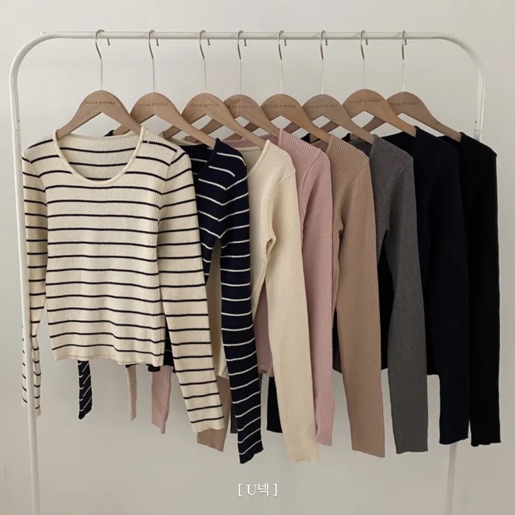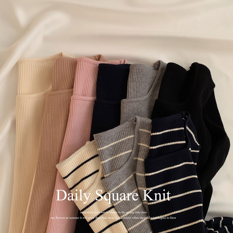 SNT22093 단가라무지 스퀘어넥 골지 슬림 긴팔니트 9color