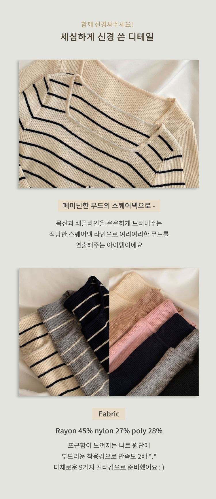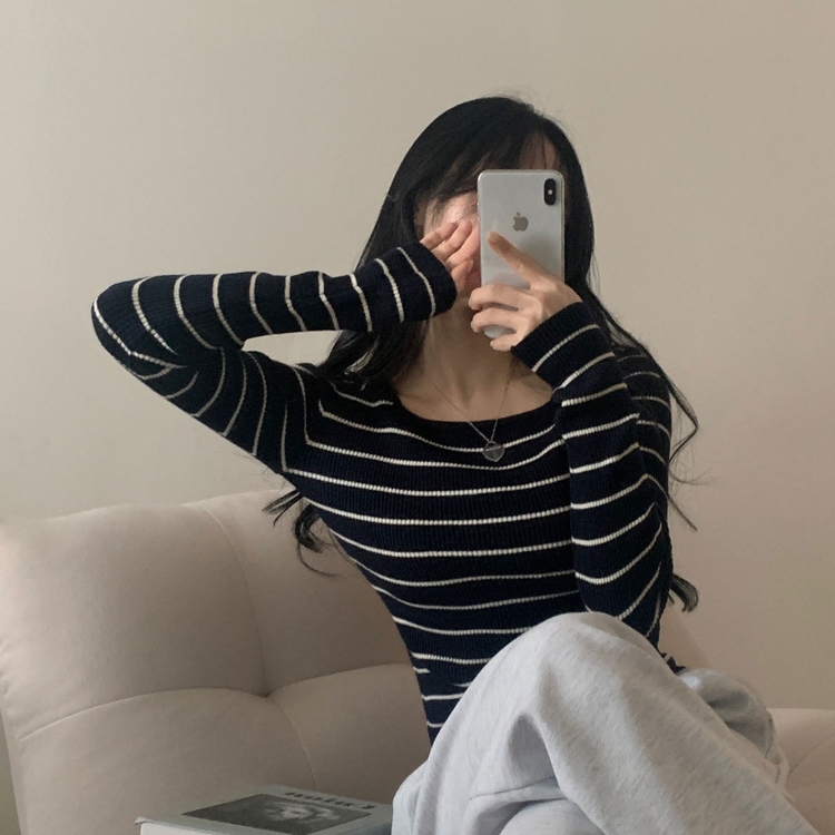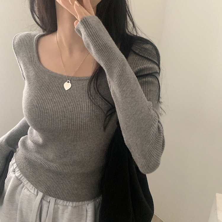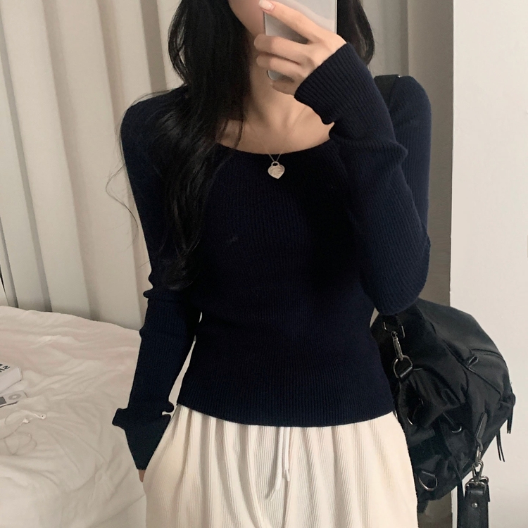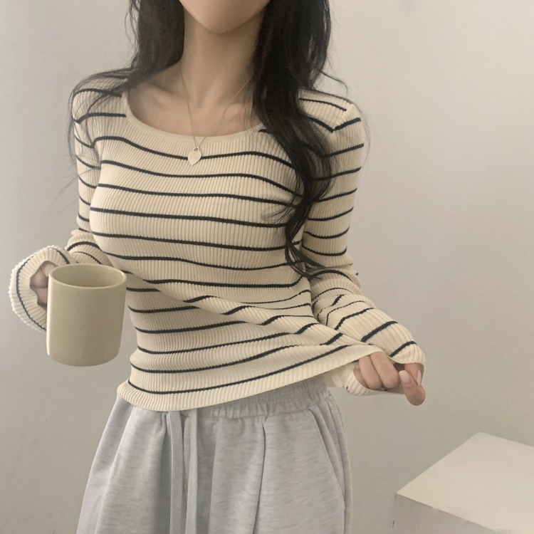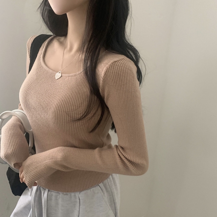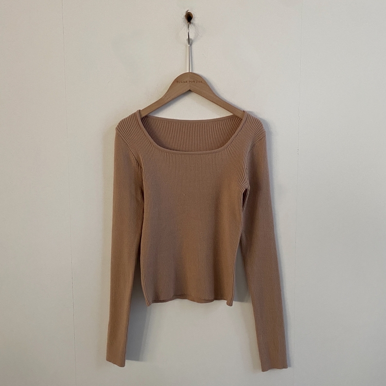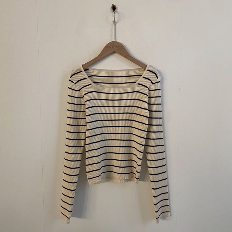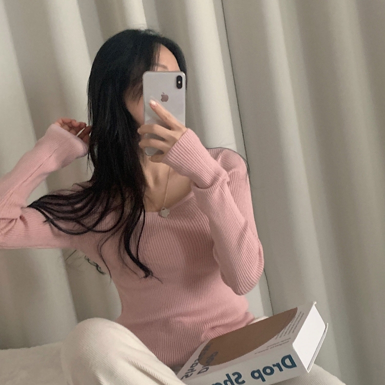 SNT22093 단가라무지 스퀘어넥 골지 슬림 긴팔니트 9color
