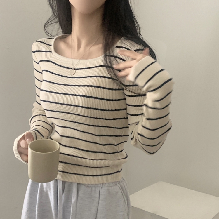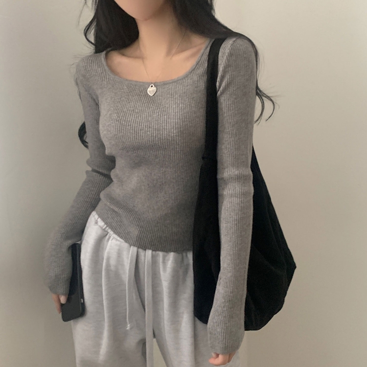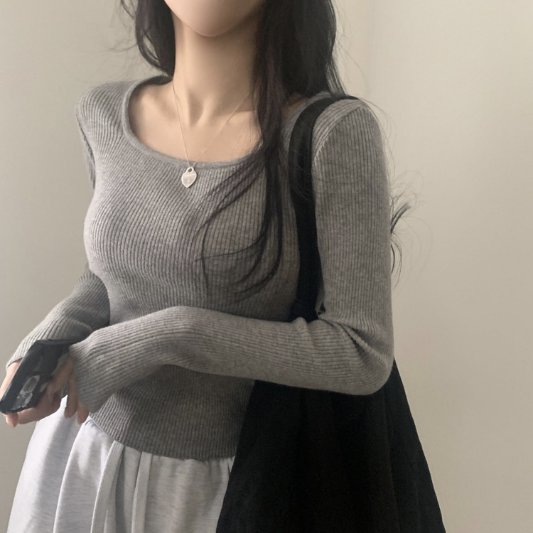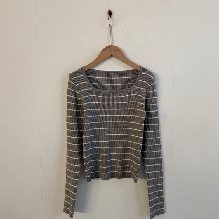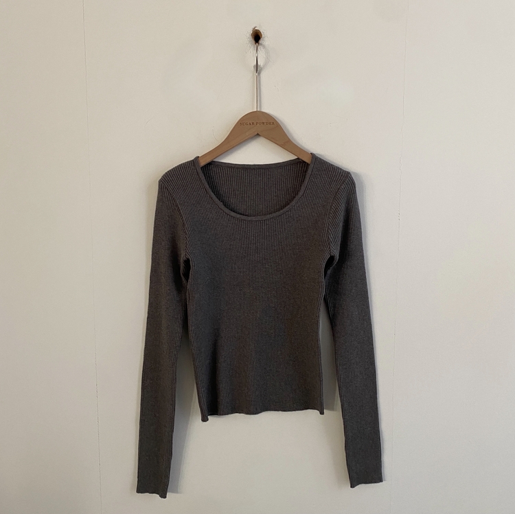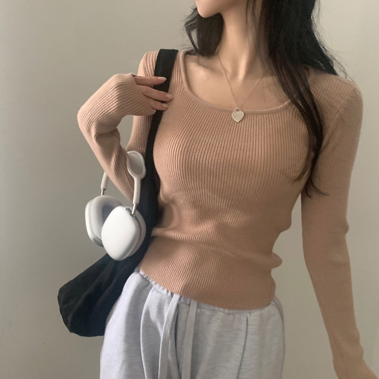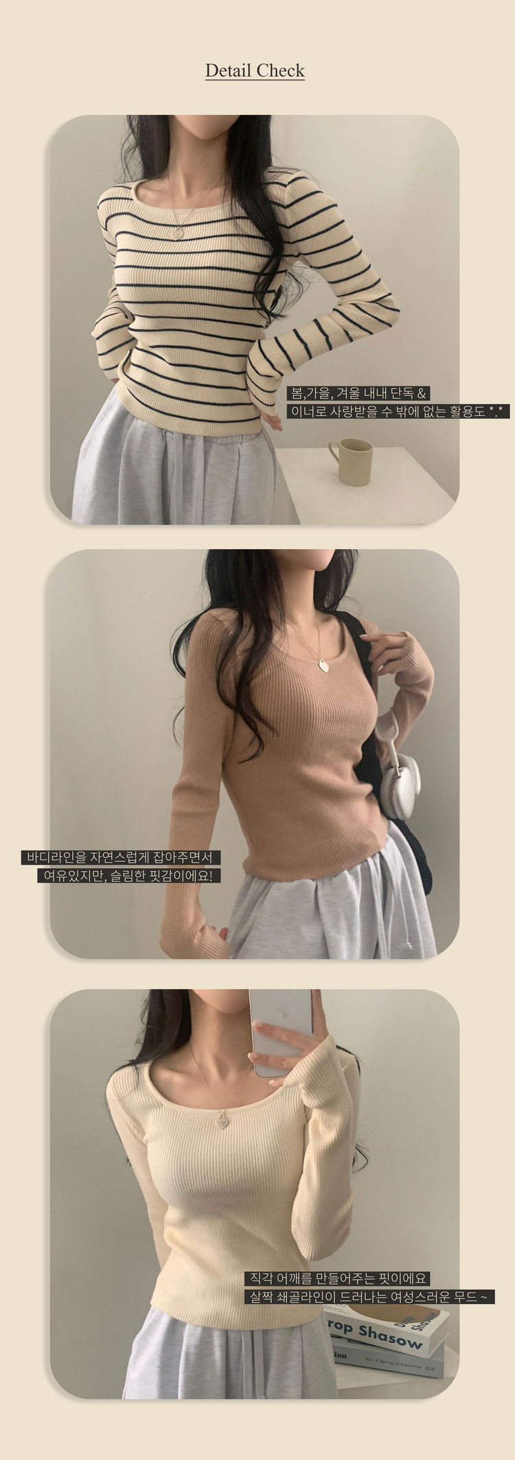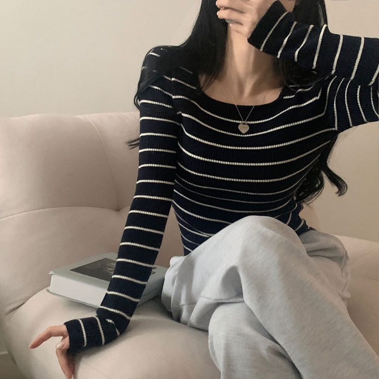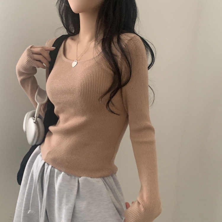 SNT22093 단가라무지 스퀘어넥 골지 슬림 긴팔니트 9color