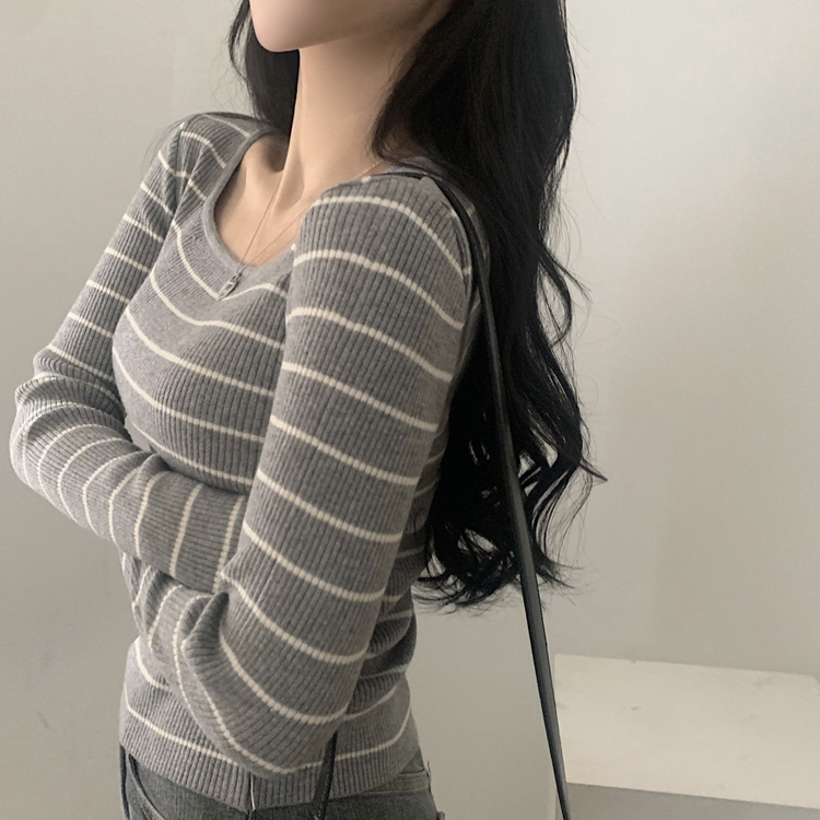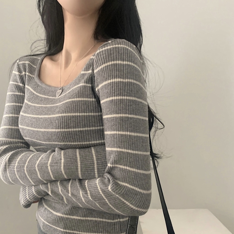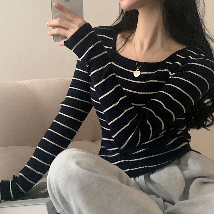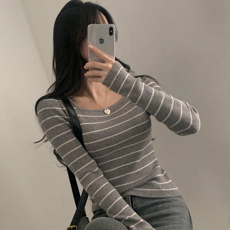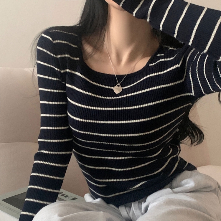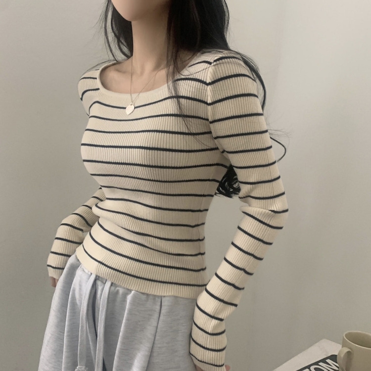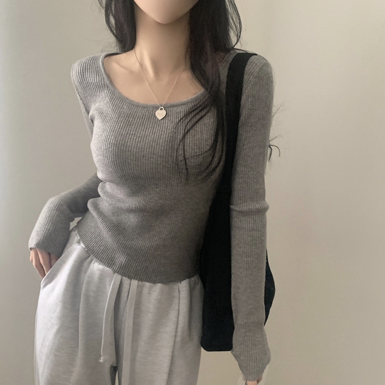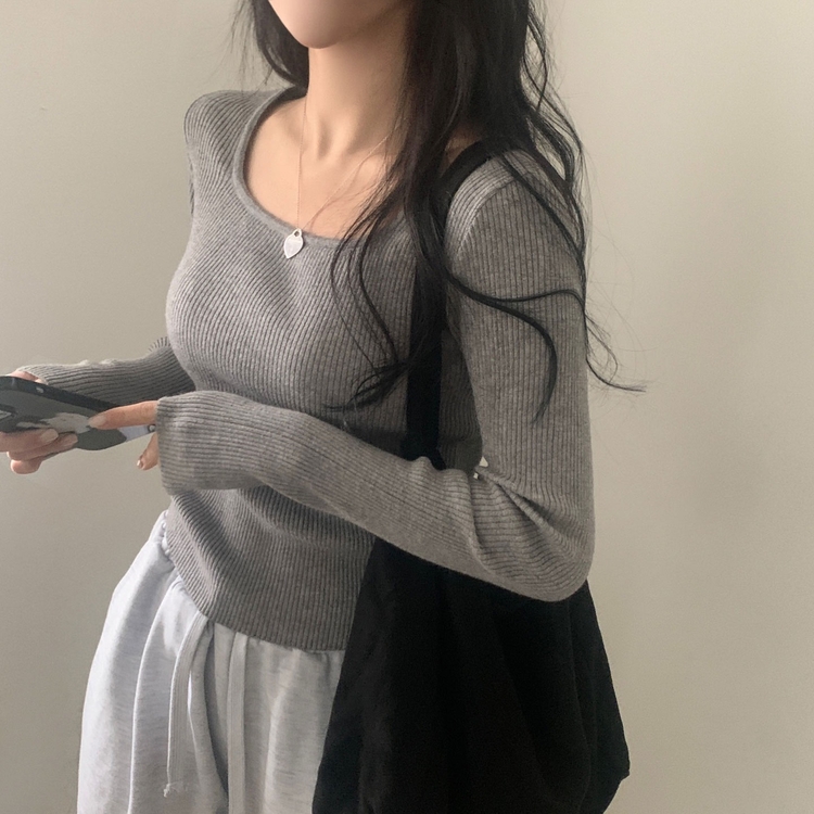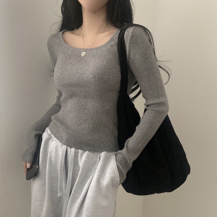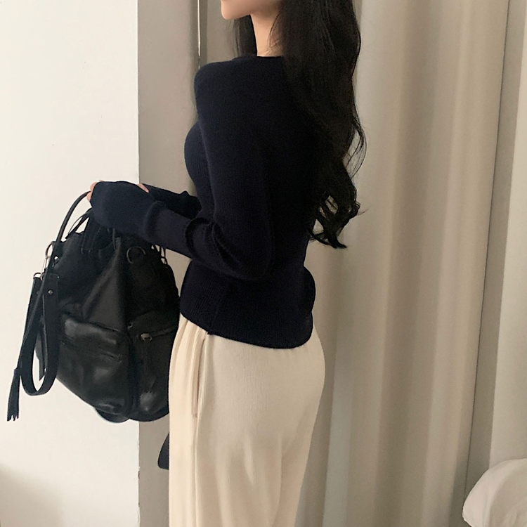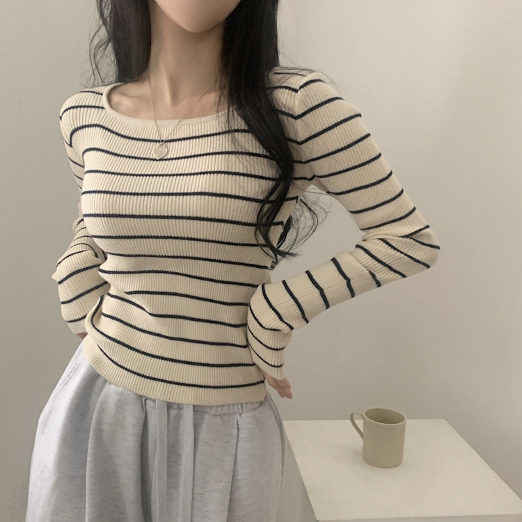 SNT22093 단가라무지 스퀘어넥 골지 슬림 긴팔니트 9color