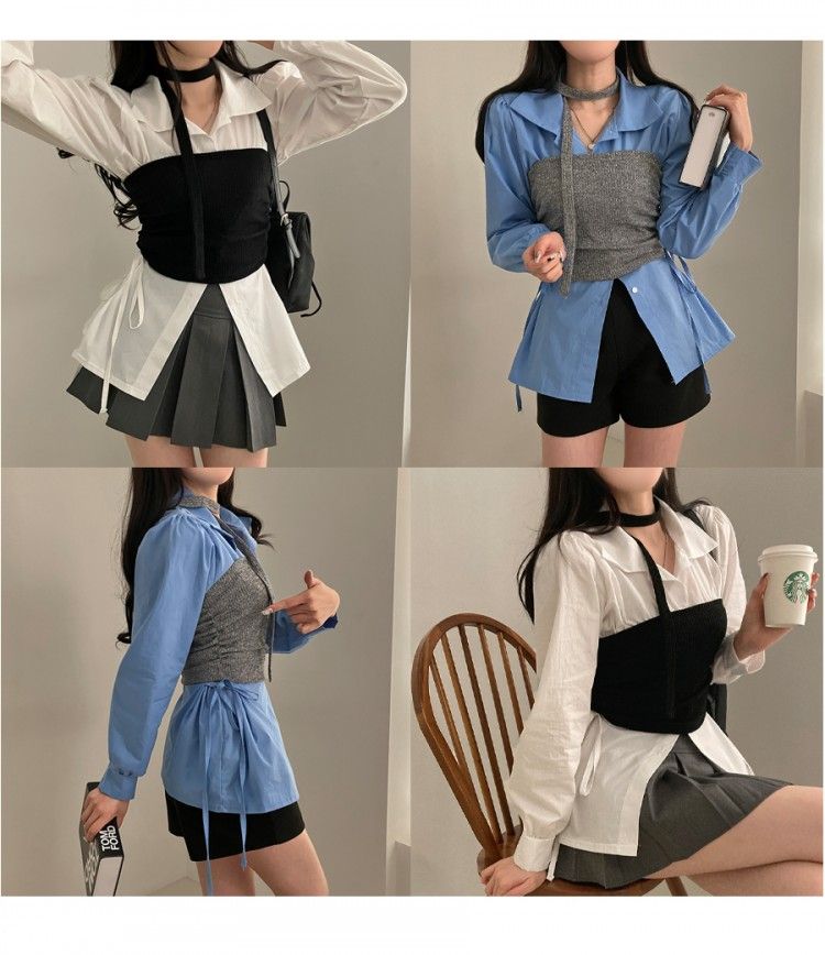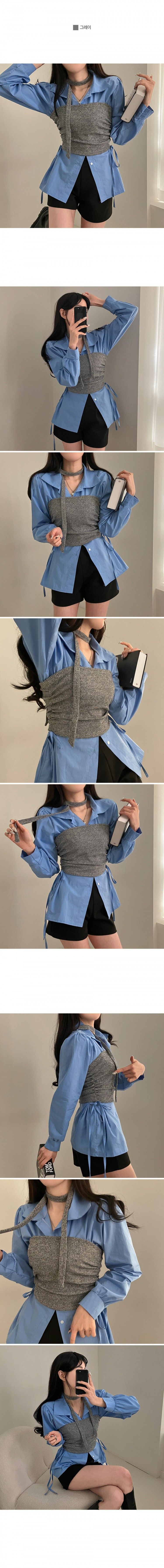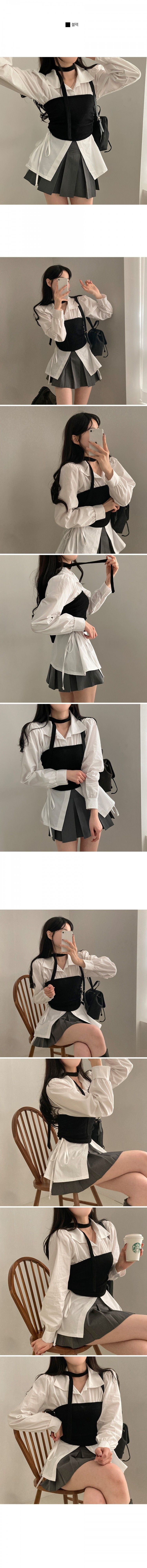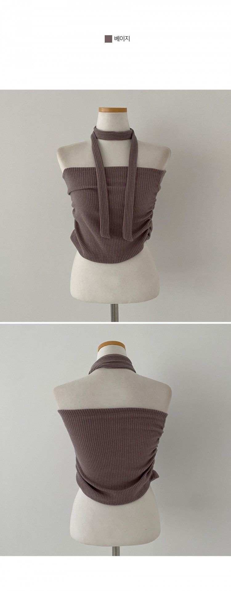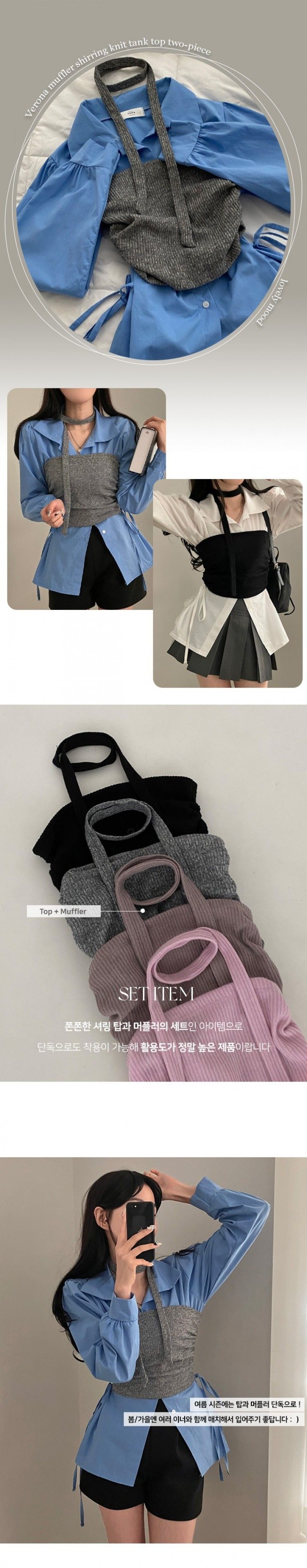 STS41853 감성모드적용 베로나 머플러 셔링 골지 니트 탱크탑 투피스 세트