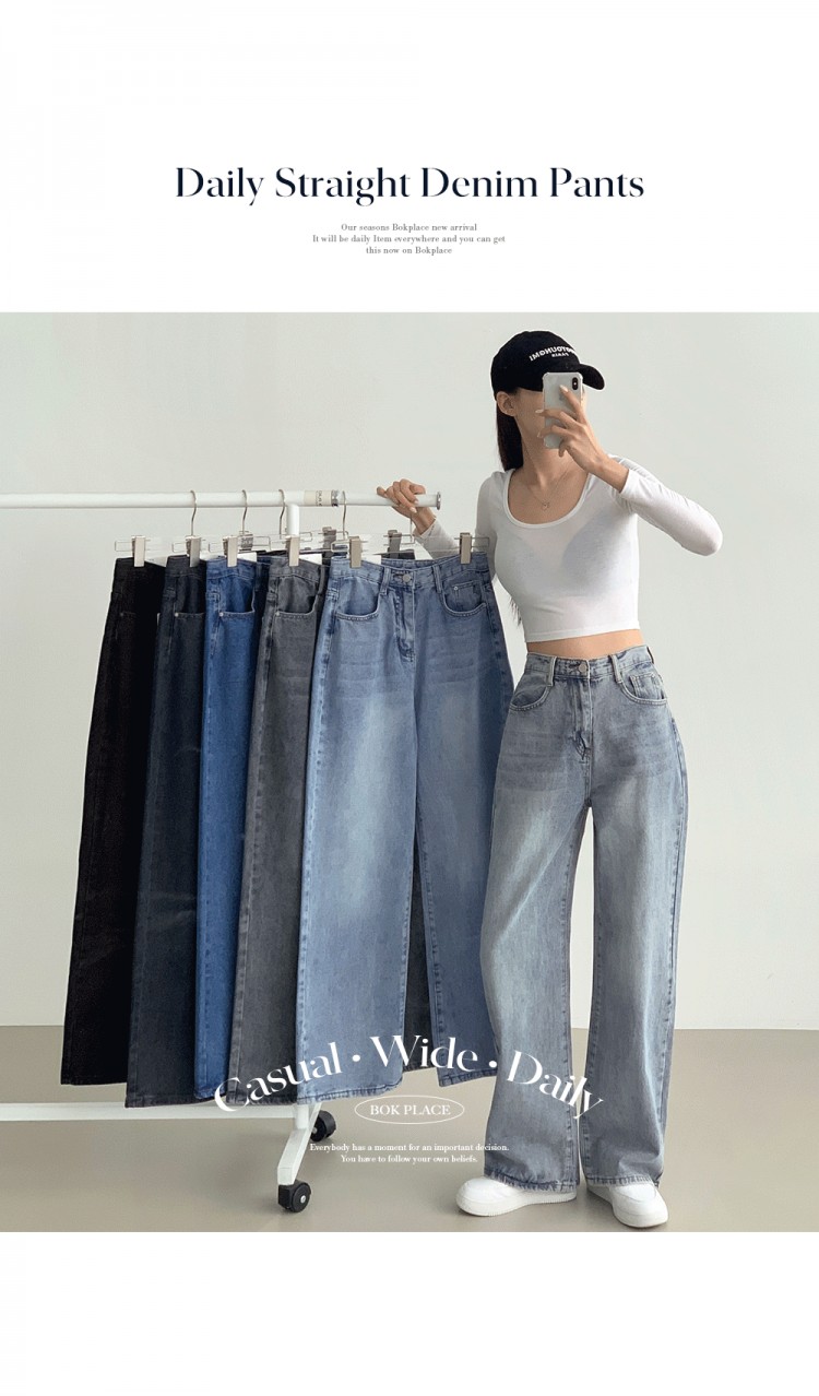 SJE7088 스트레이트 세미 와이드 데일리 데님팬츠