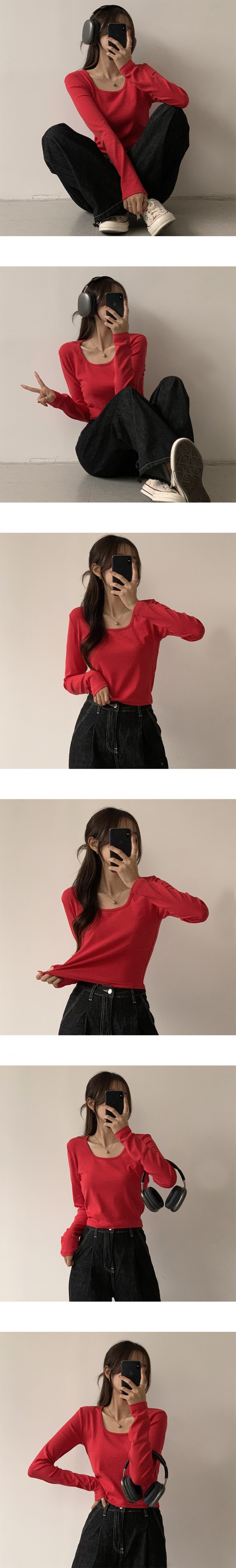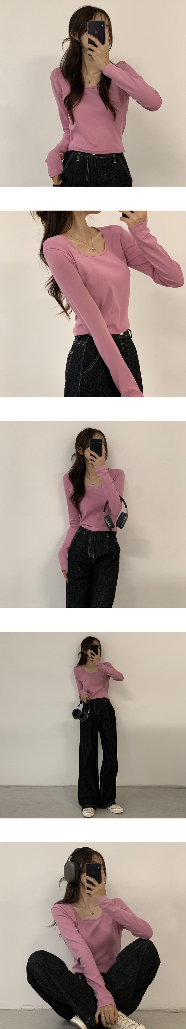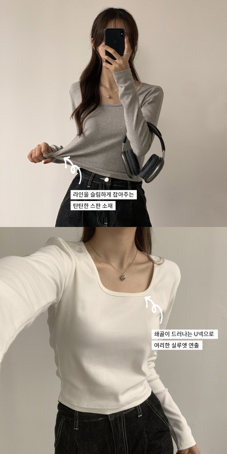STS42129 가을 유넥 간절기 긴팔 티셔츠 세미 크롭 슬림핏 니트 긴팔티