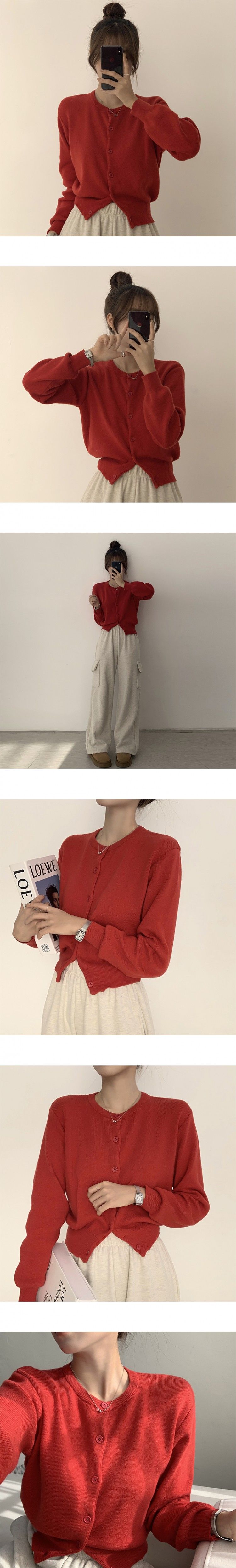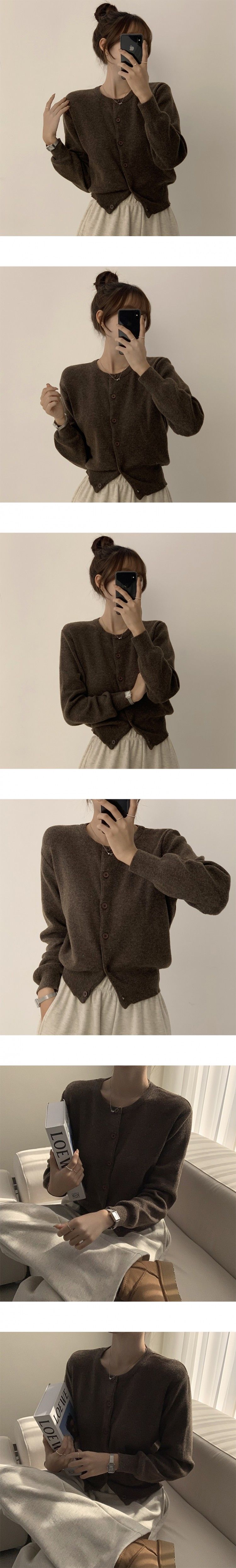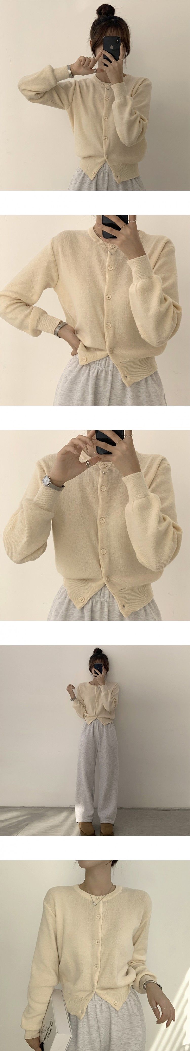SGD19143 스노우 라운드 겨울 무지 베이직 캐주얼 허리잘록 기본 긴팔 가디건