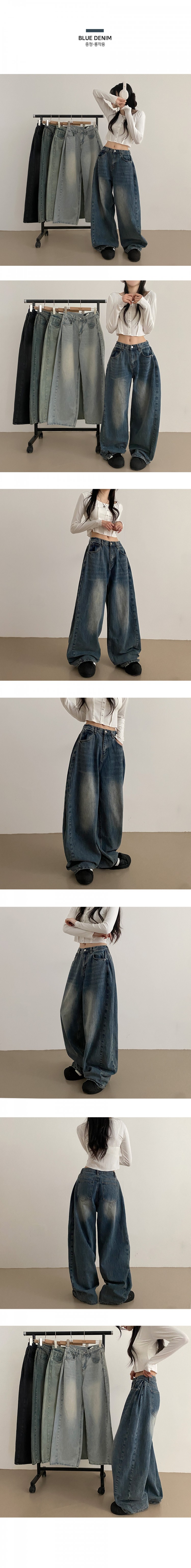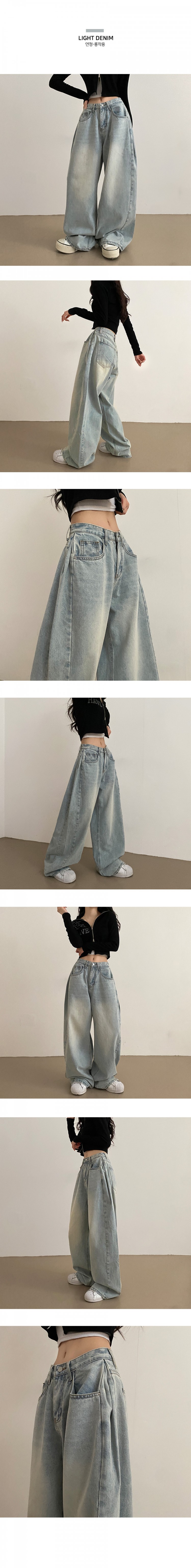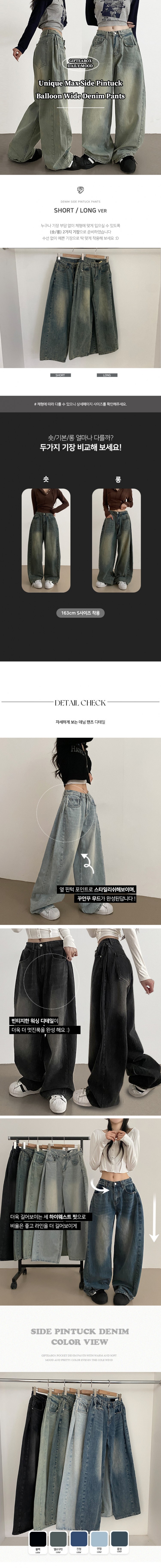 SJE7209 롱숏 선택 가능 맥스 옆핀턱 벌룬 와이드 데님 팬츠