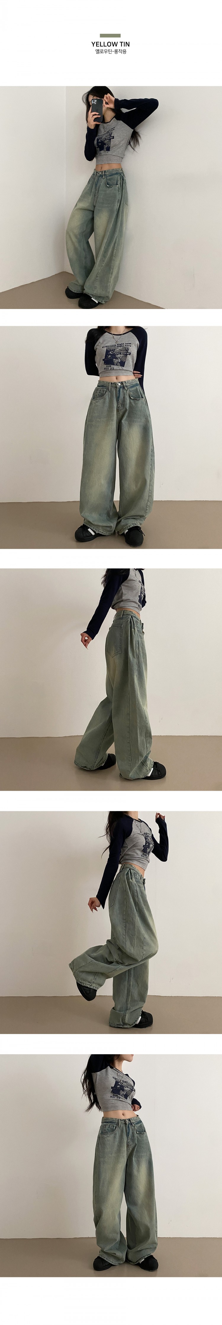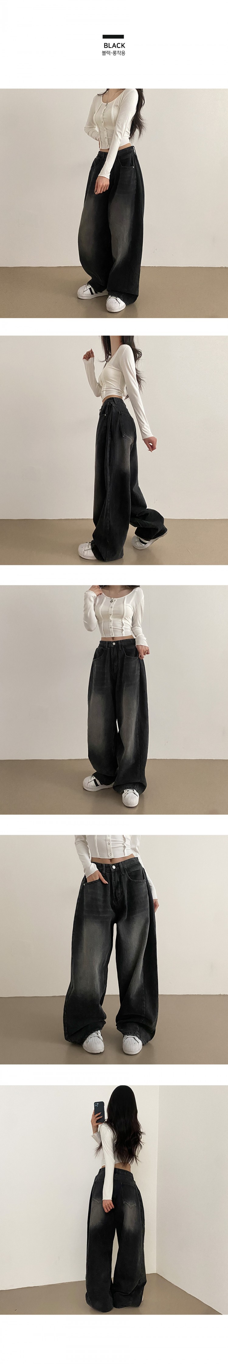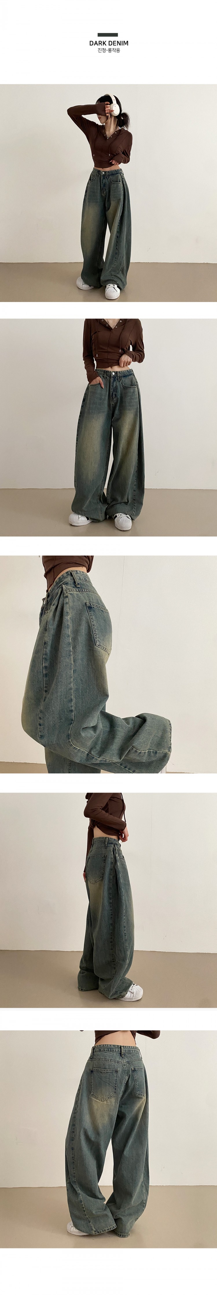 SJE7209 롱숏 선택 가능 맥스 옆핀턱 벌룬 와이드 데님 팬츠