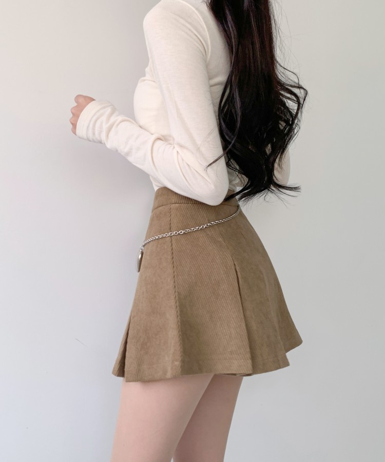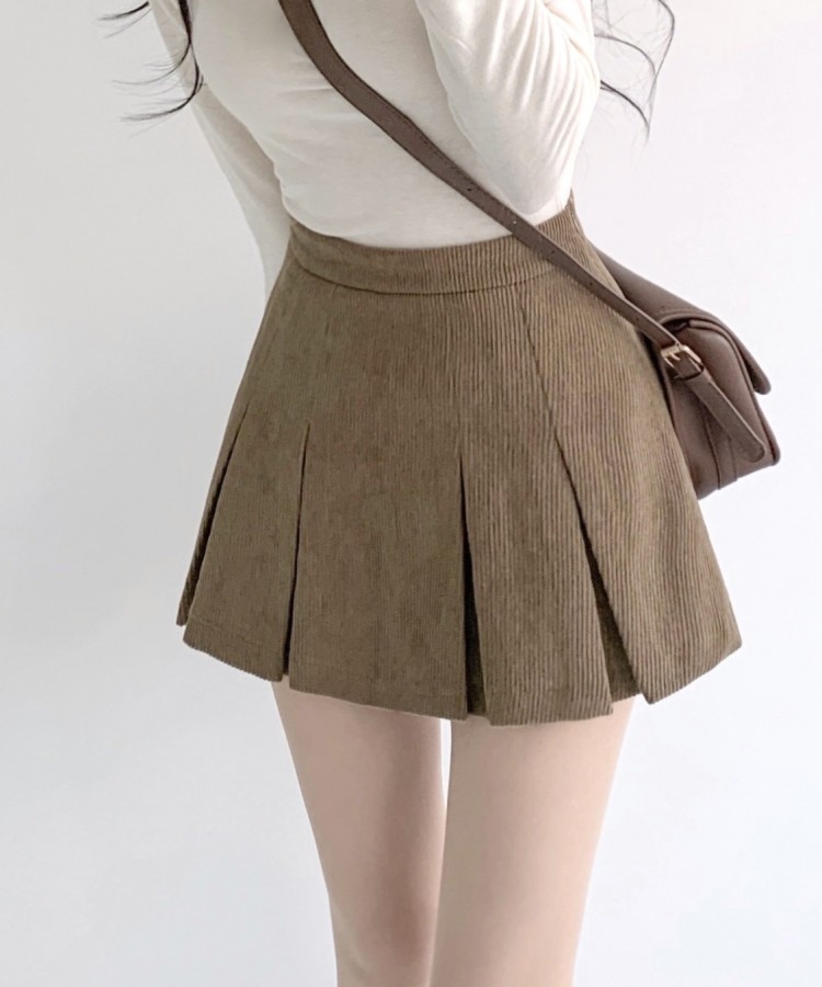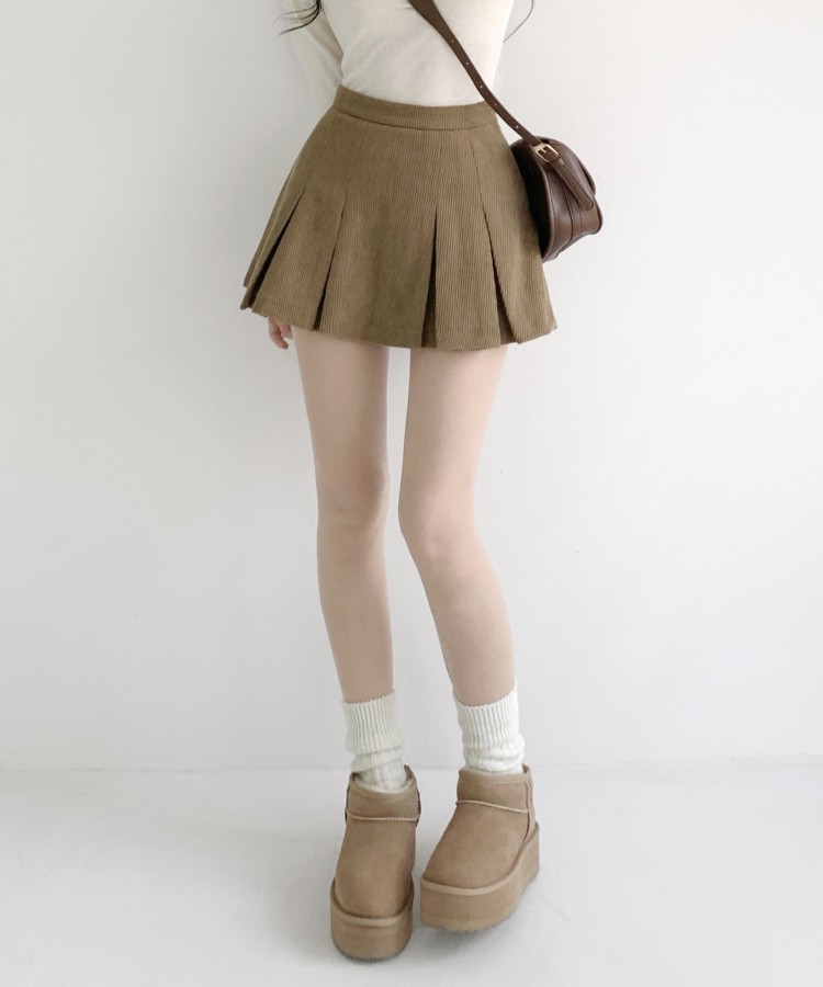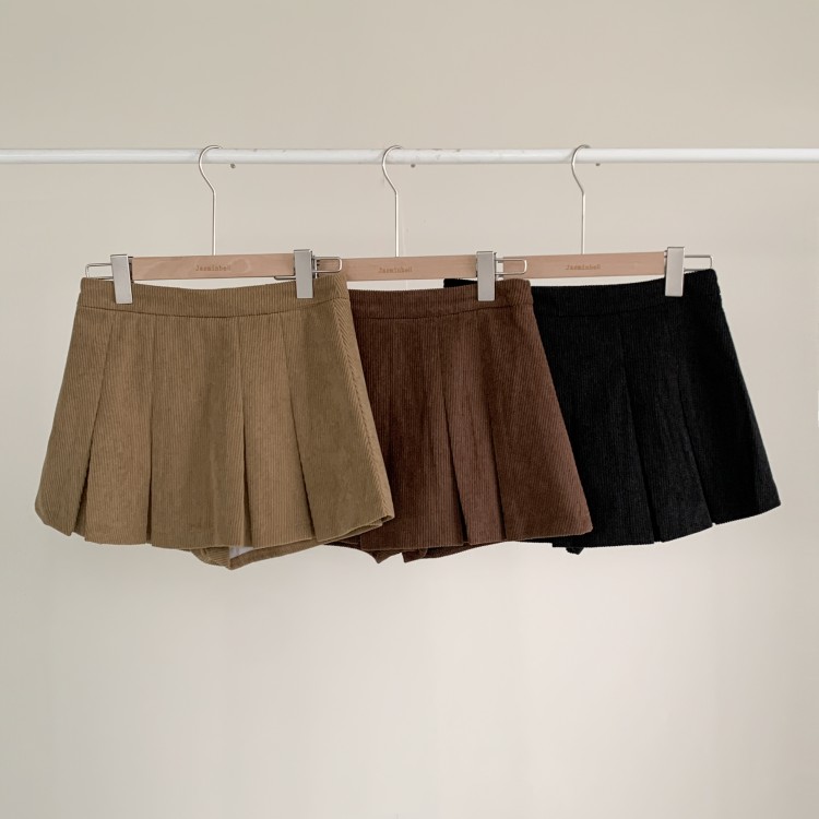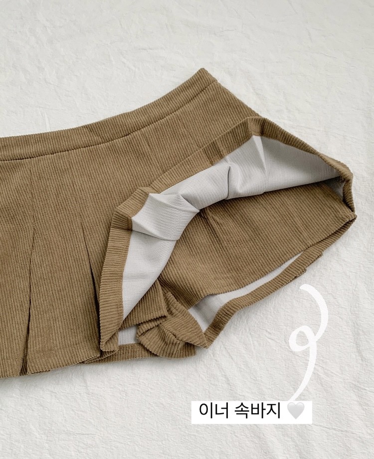 SSK15905 초콜릿 골덴 코듀로이 플리츠 A라인 미니 스커트 팬츠 3color