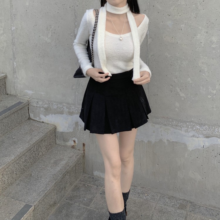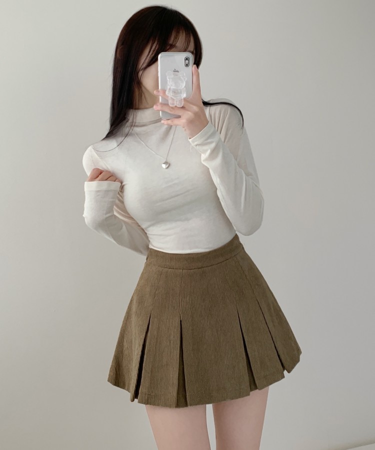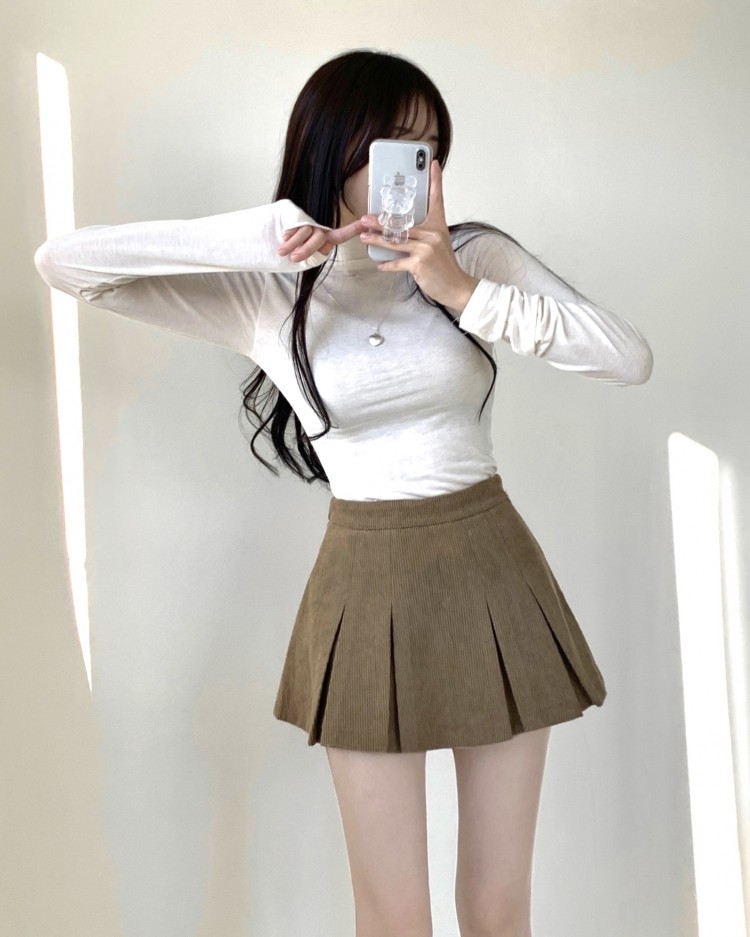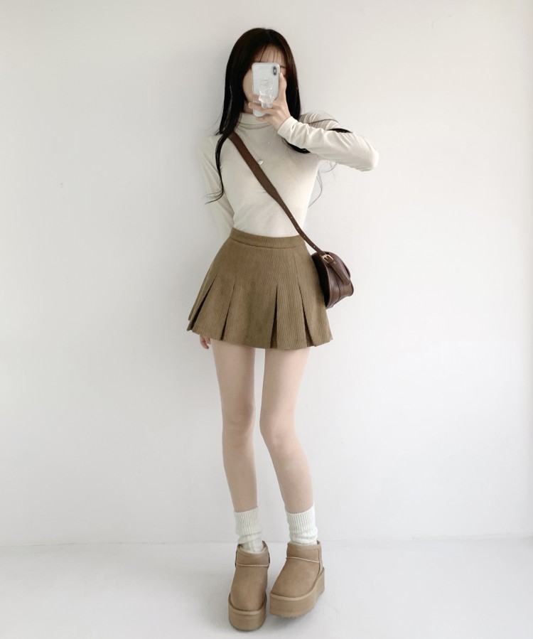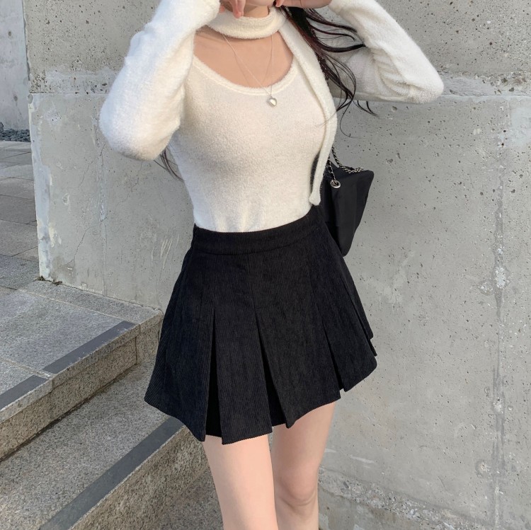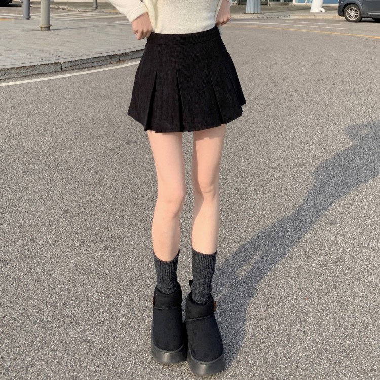 SSK15905 초콜릿 골덴 코듀로이 플리츠 A라인 미니 스커트 팬츠 3color