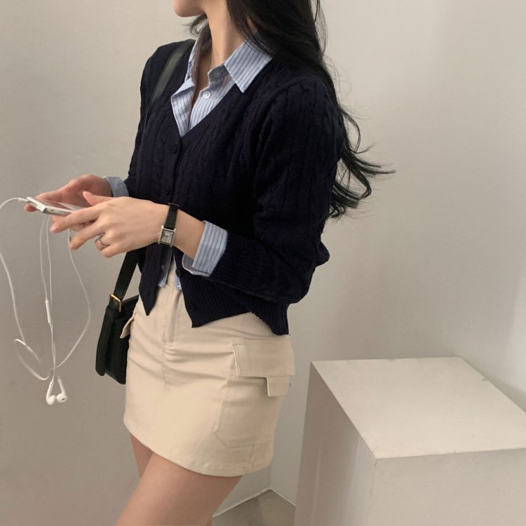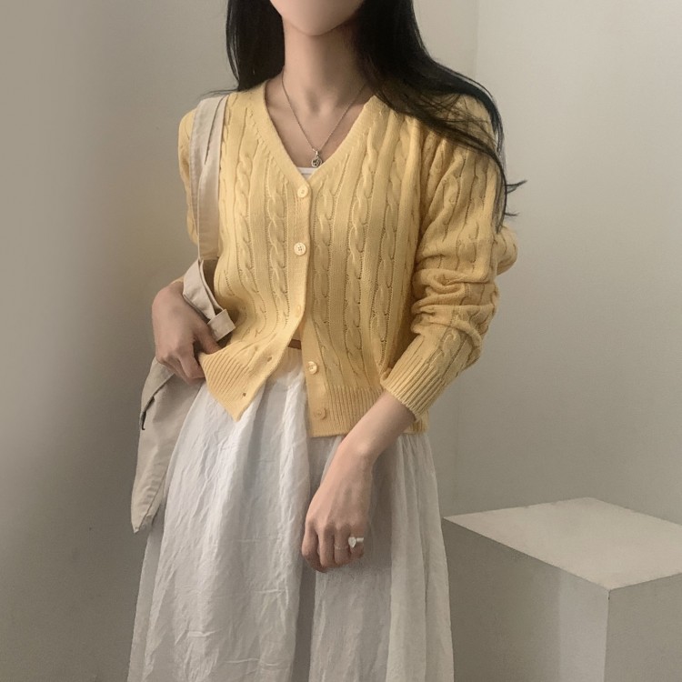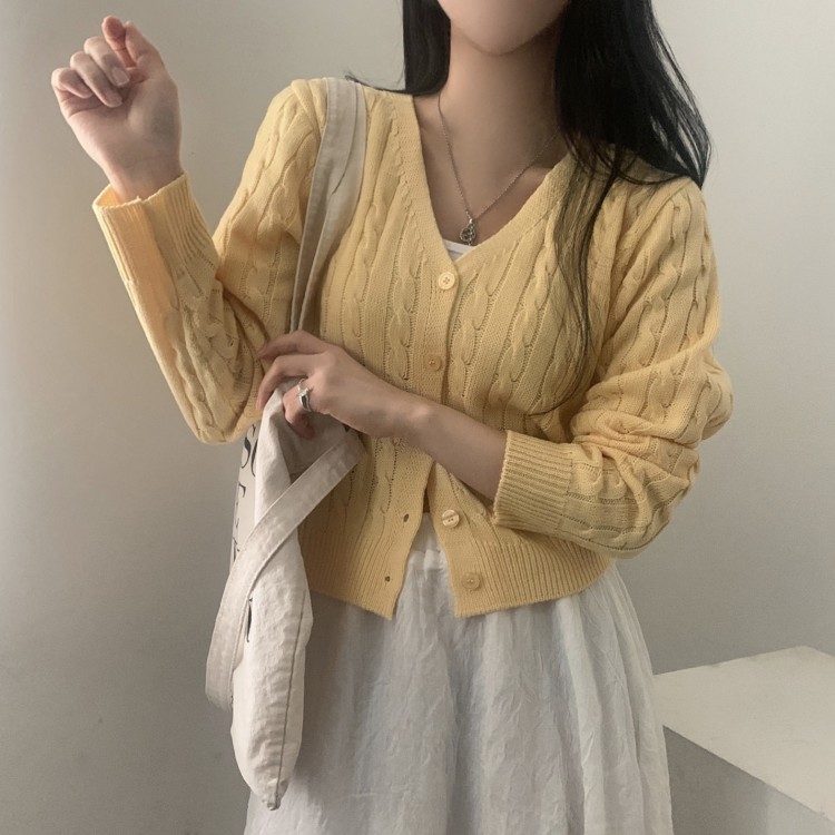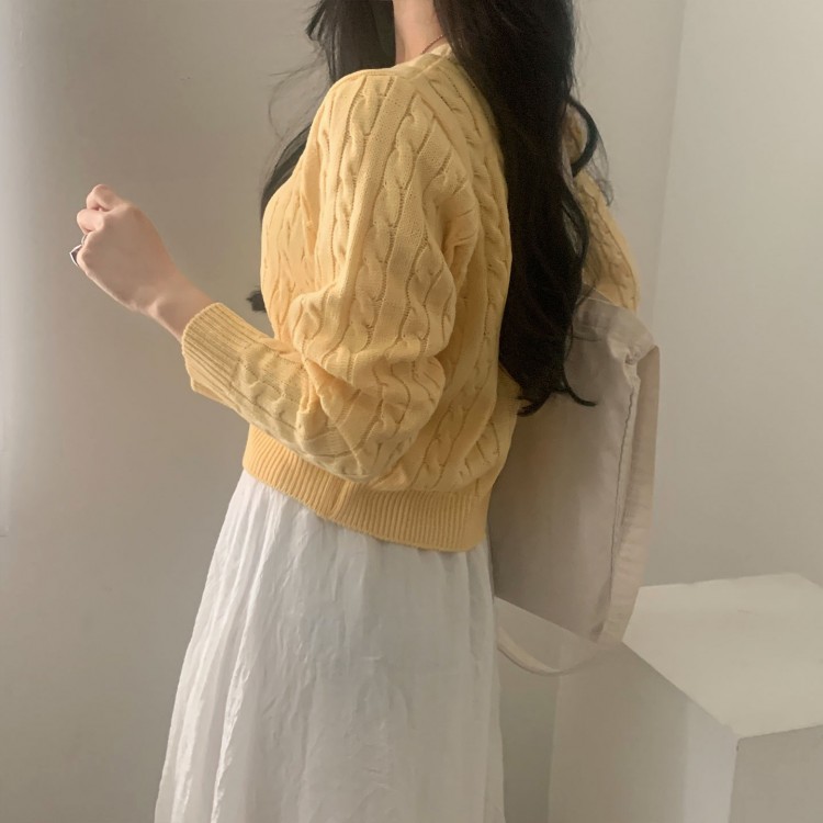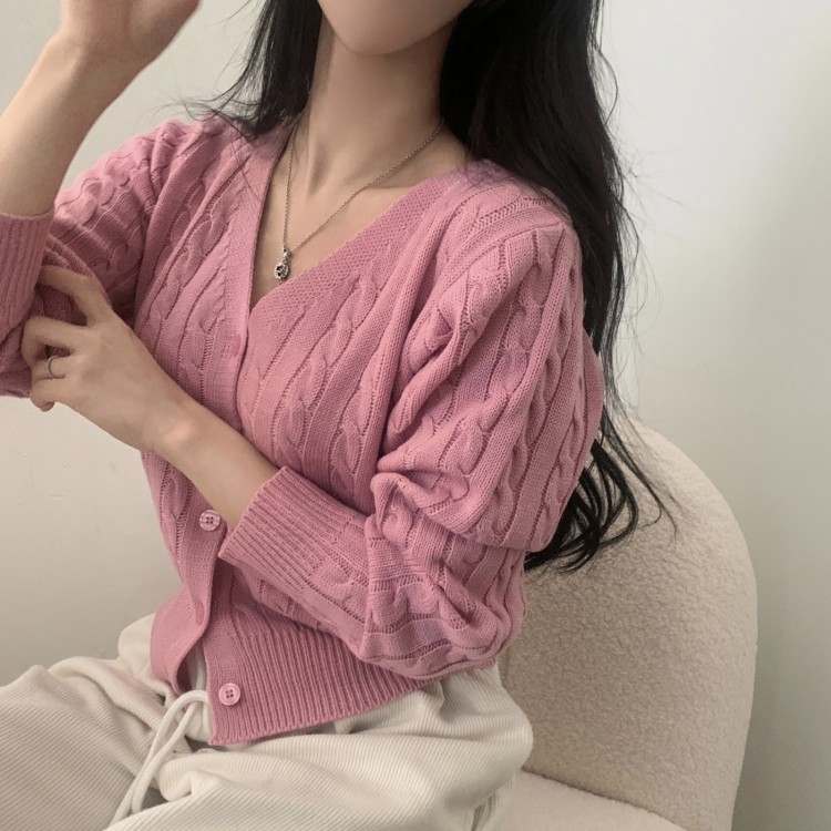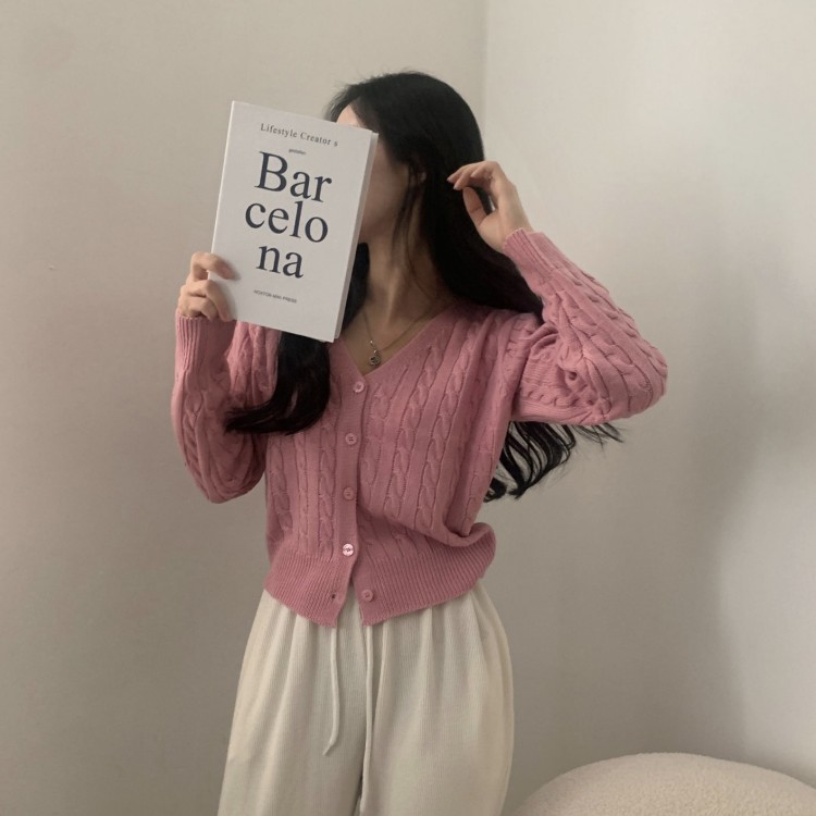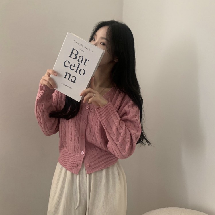 SGD19850 인텐셜 케이블 꽈배기 데일리 크롭 니트 가디건 6color