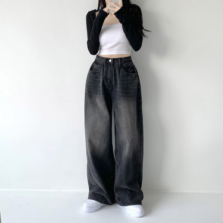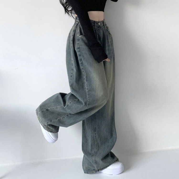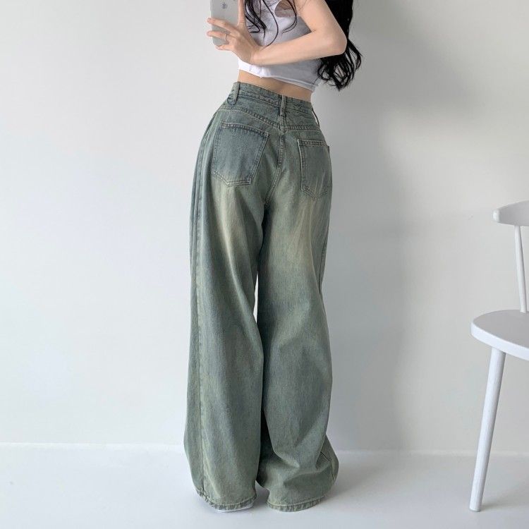 SJE7672 색감맛집 카시오 빈티지 워싱 사이드 핀턱 하이웨스트 롱 로우 와이드 데님 팬츠 바지 청바지 키작녀 키큰녀 빅사이즈