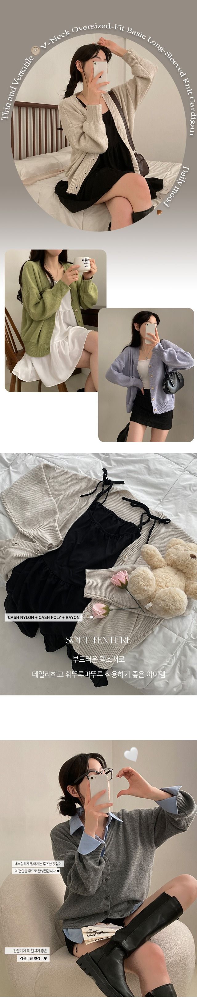 SGD20102 여리만능 브이넥 오버핏 베이직 긴팔 니트 가디건