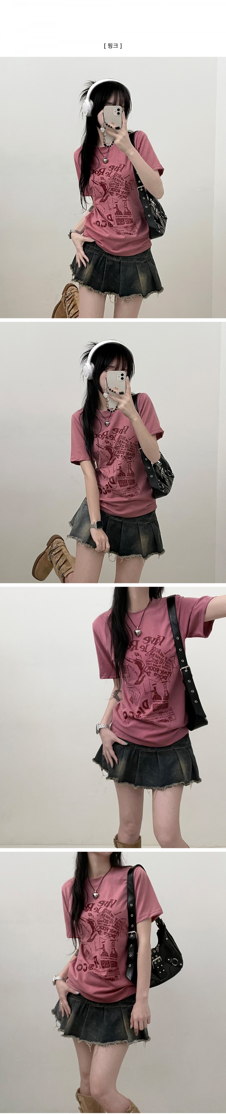 STS49421 바이브락레터링프린팅반팔티