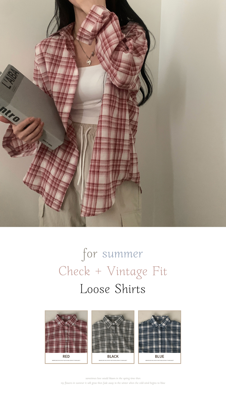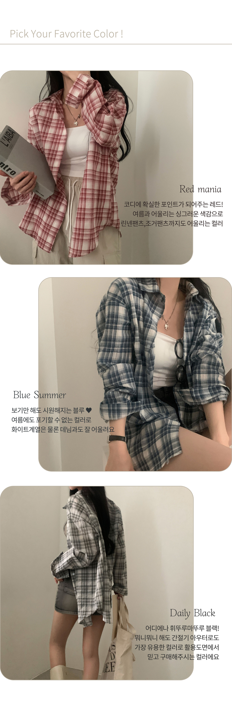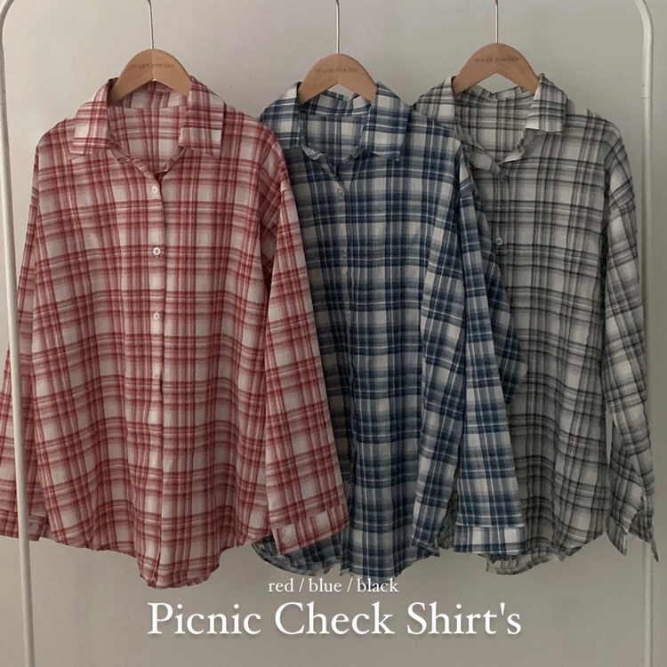 SBS18259 피크닉 루즈핏 체크 셔츠남방 3color
