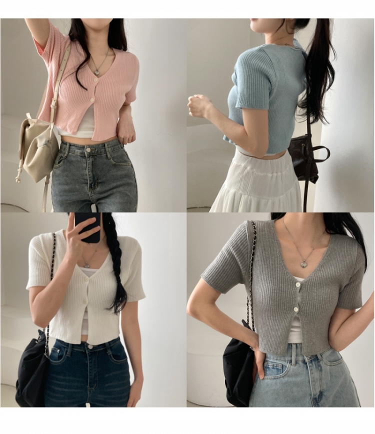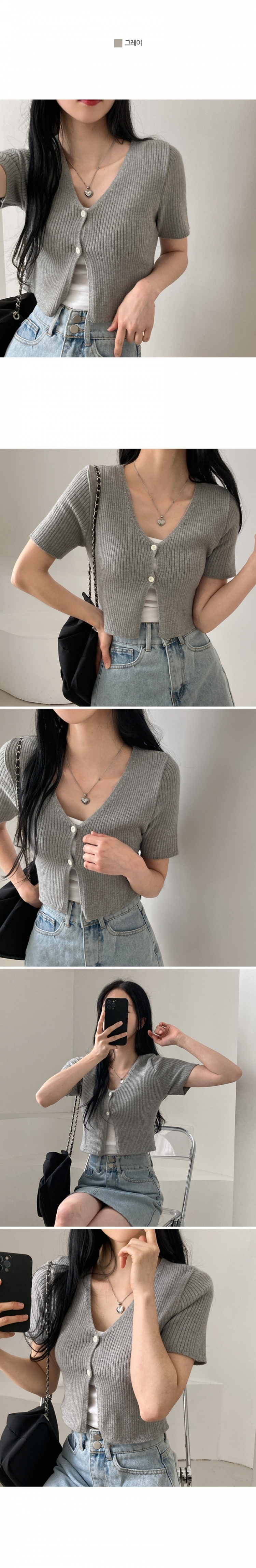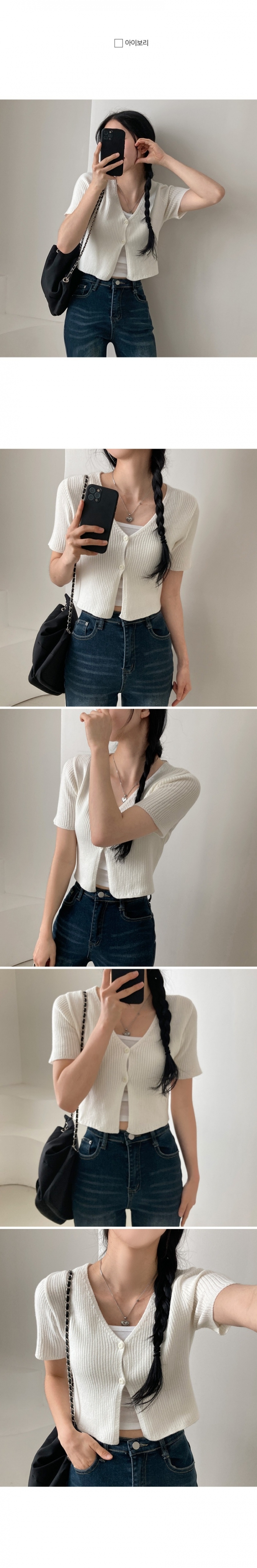 SGD20836 예쁨가득 데일리 트임 버튼 골지 크롭 반팔 가디건