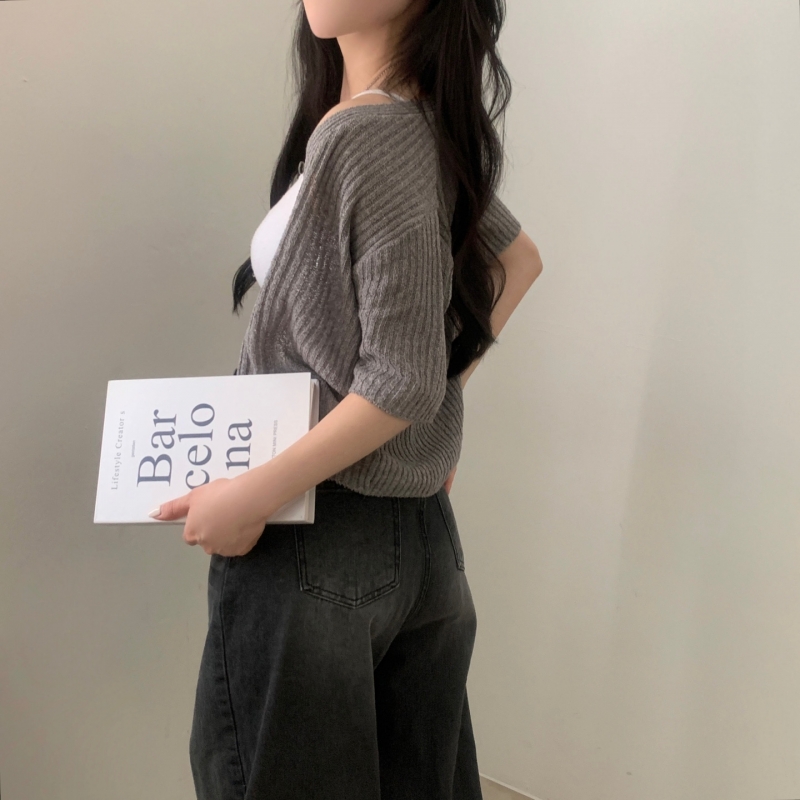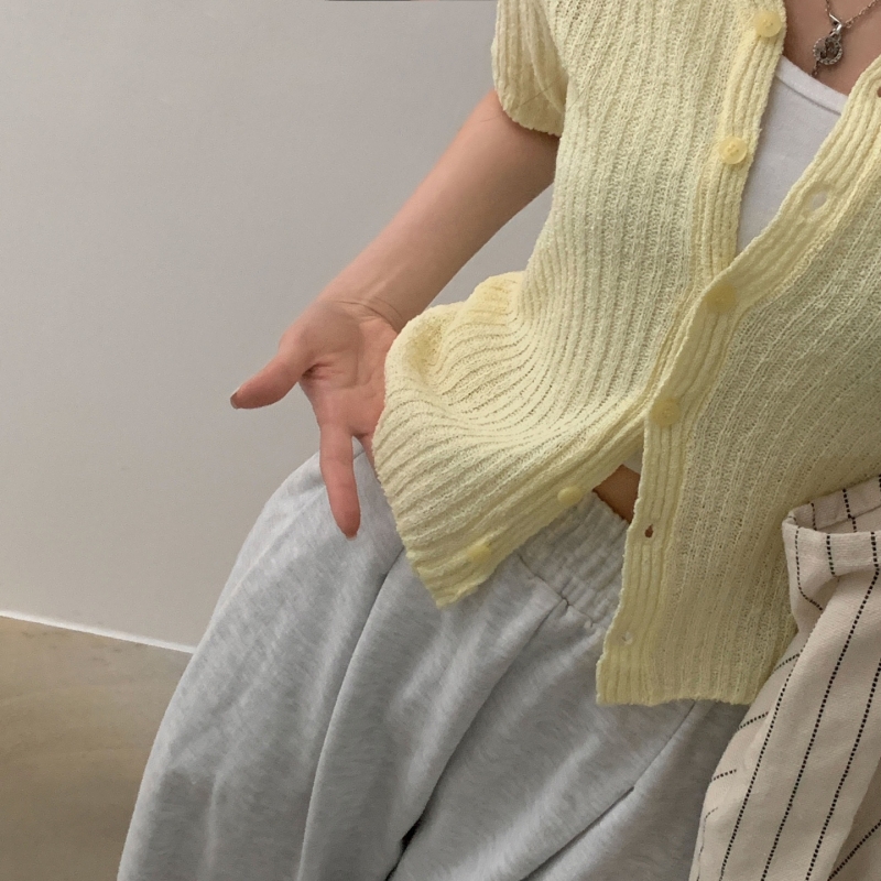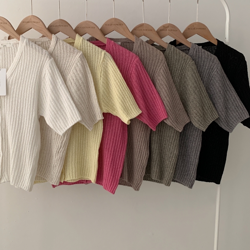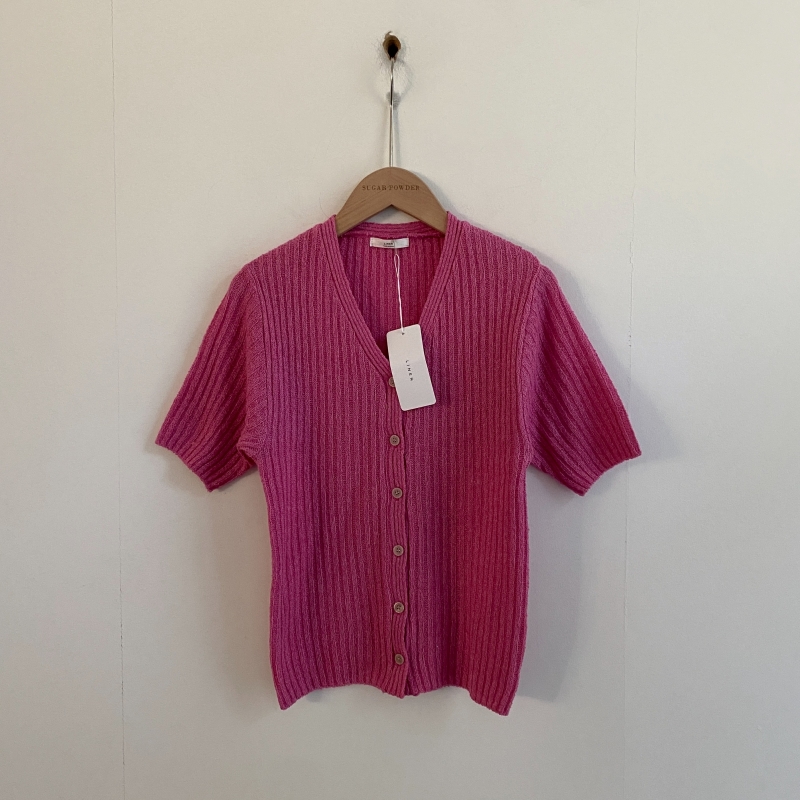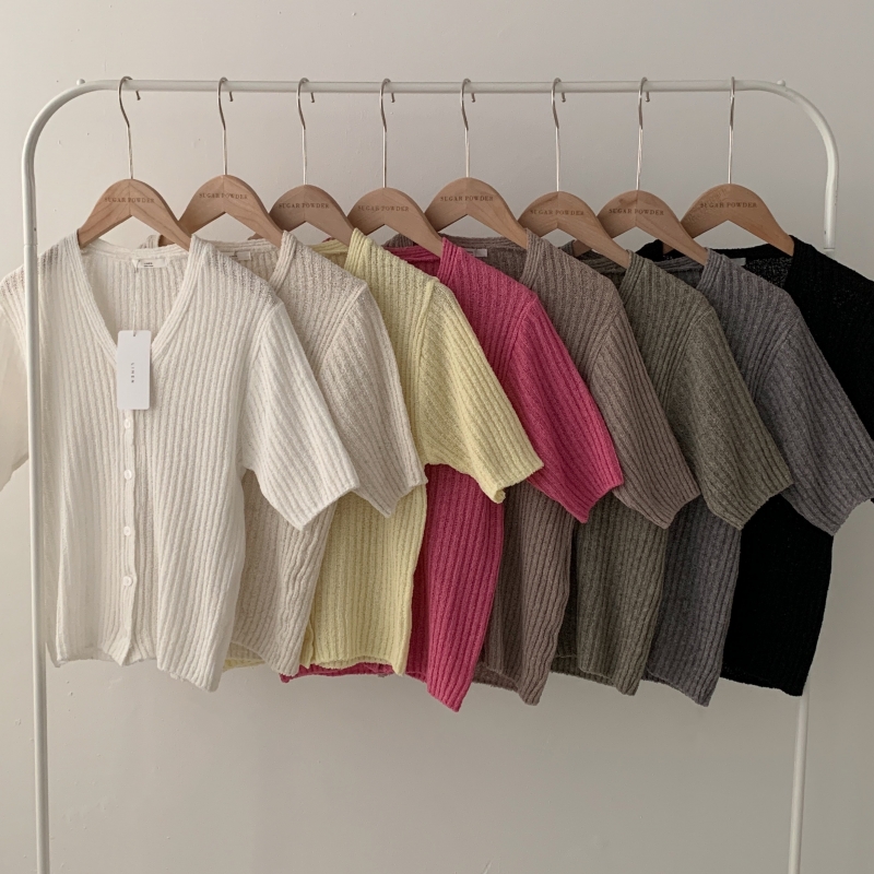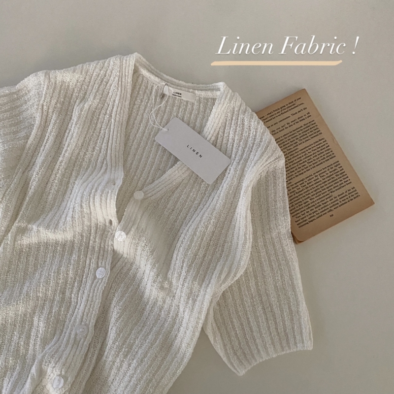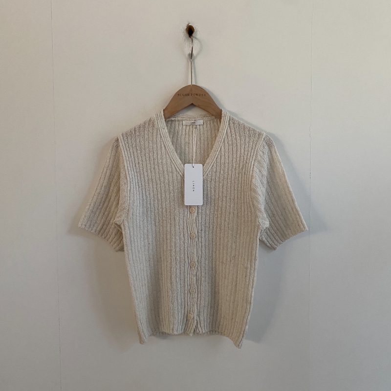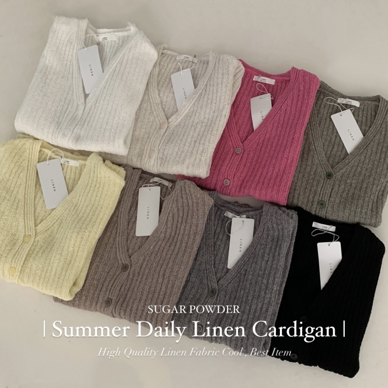 SGD21145 나잇 부클 린넨 세미크롭 반팔 니트가디건 9color
