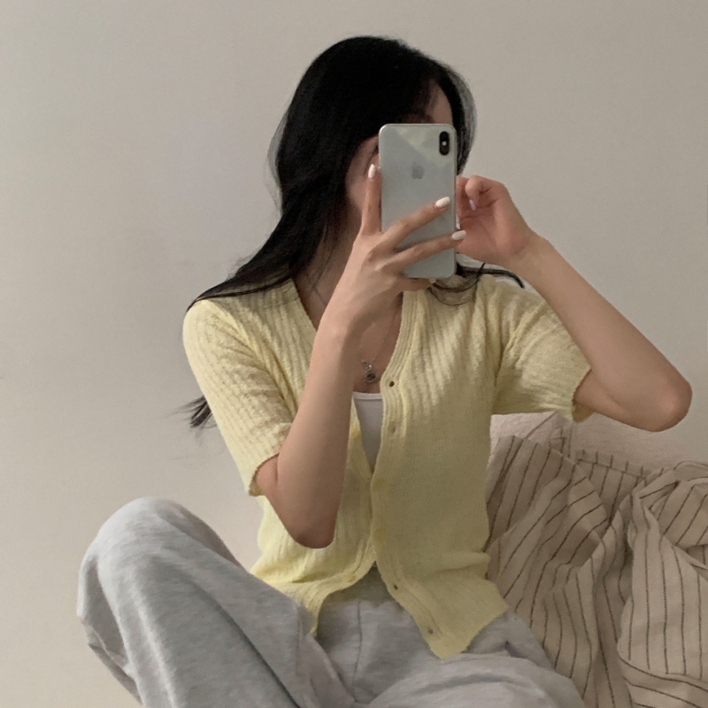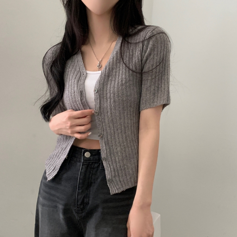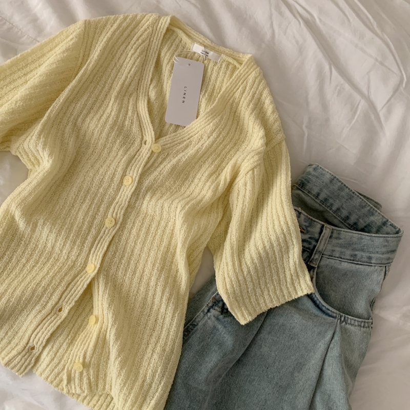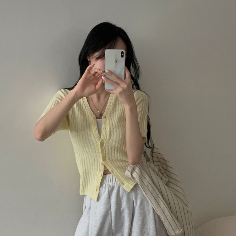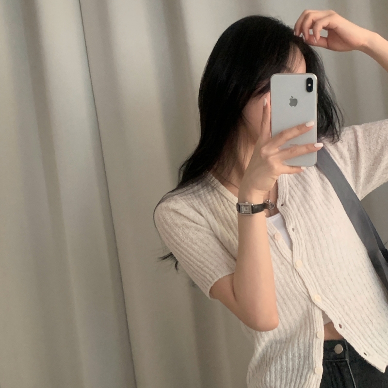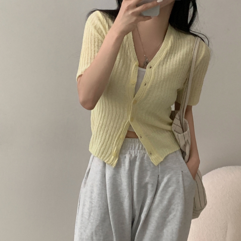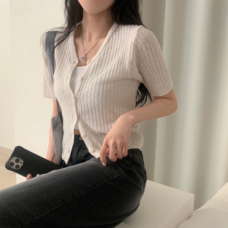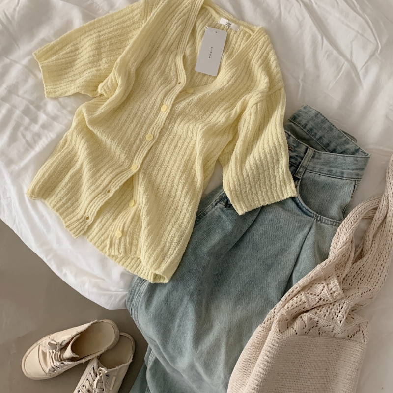 SGD21145 나잇 부클 린넨 세미크롭 반팔 니트가디건 9color